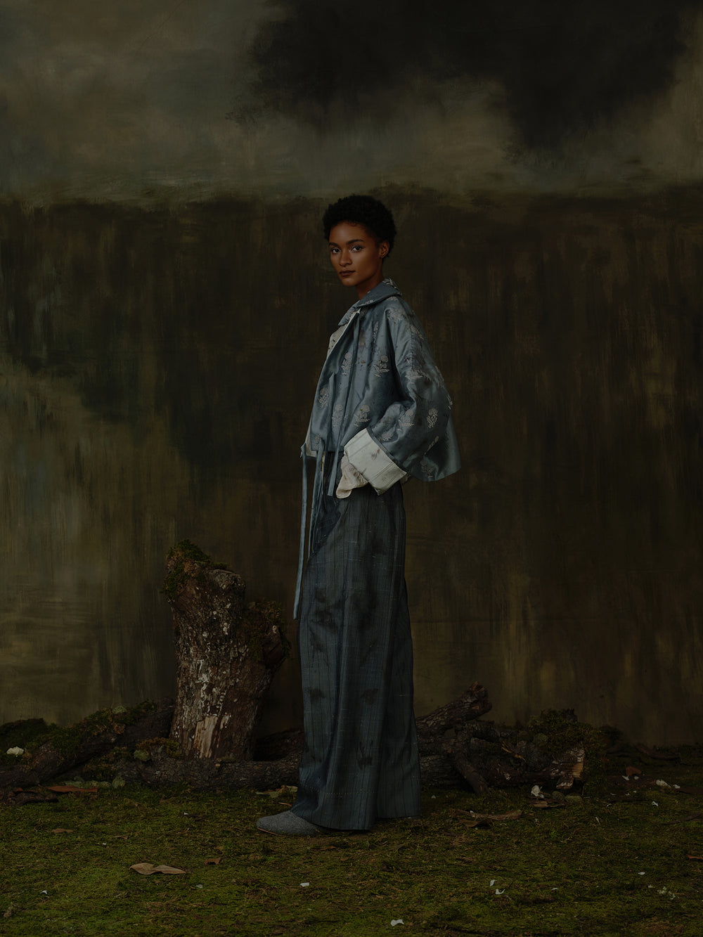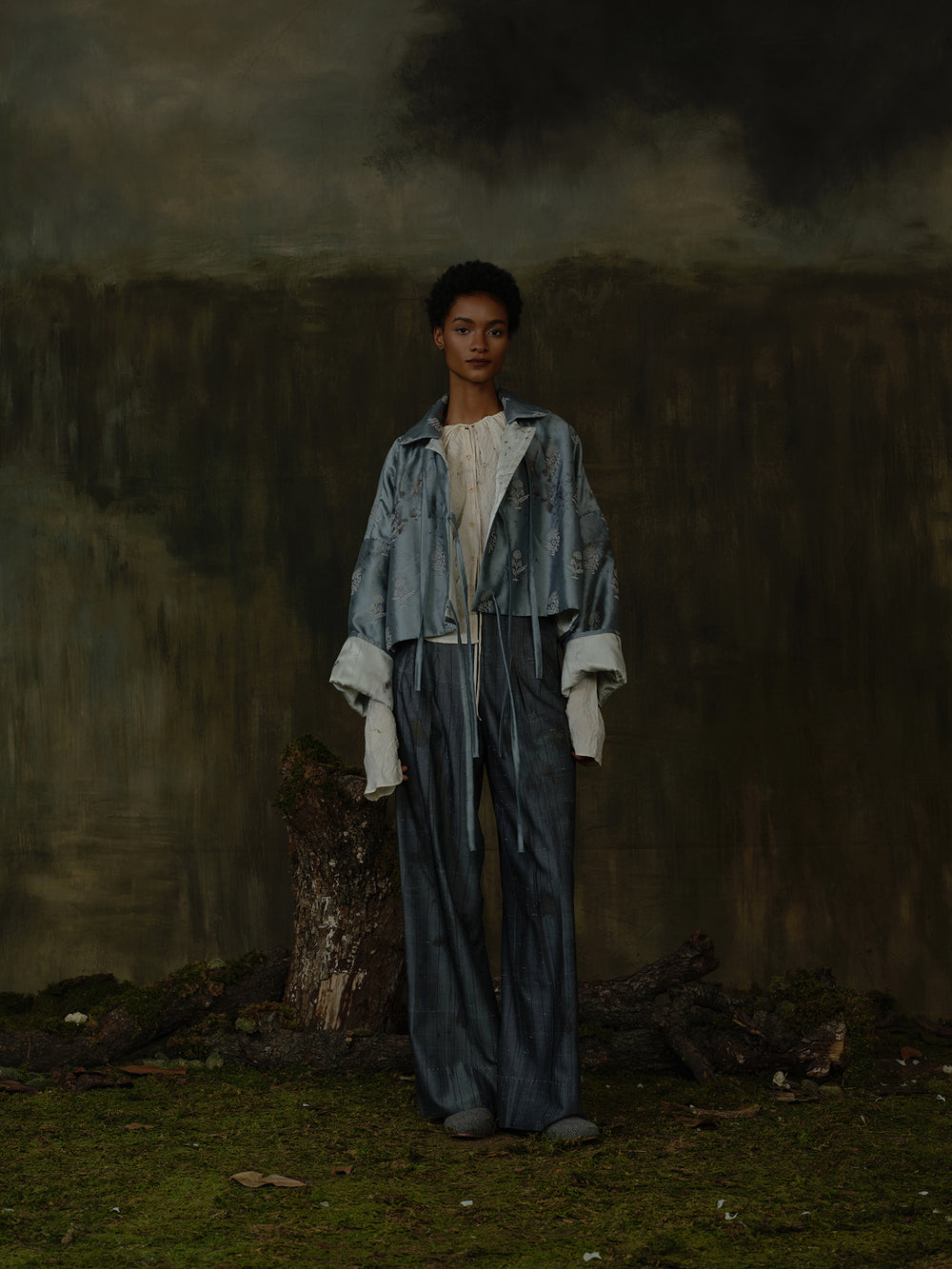 Mutedance Fall/Winter 2025 Floral Short Jacket, Plant Dye MD-MD25FW135-blue
