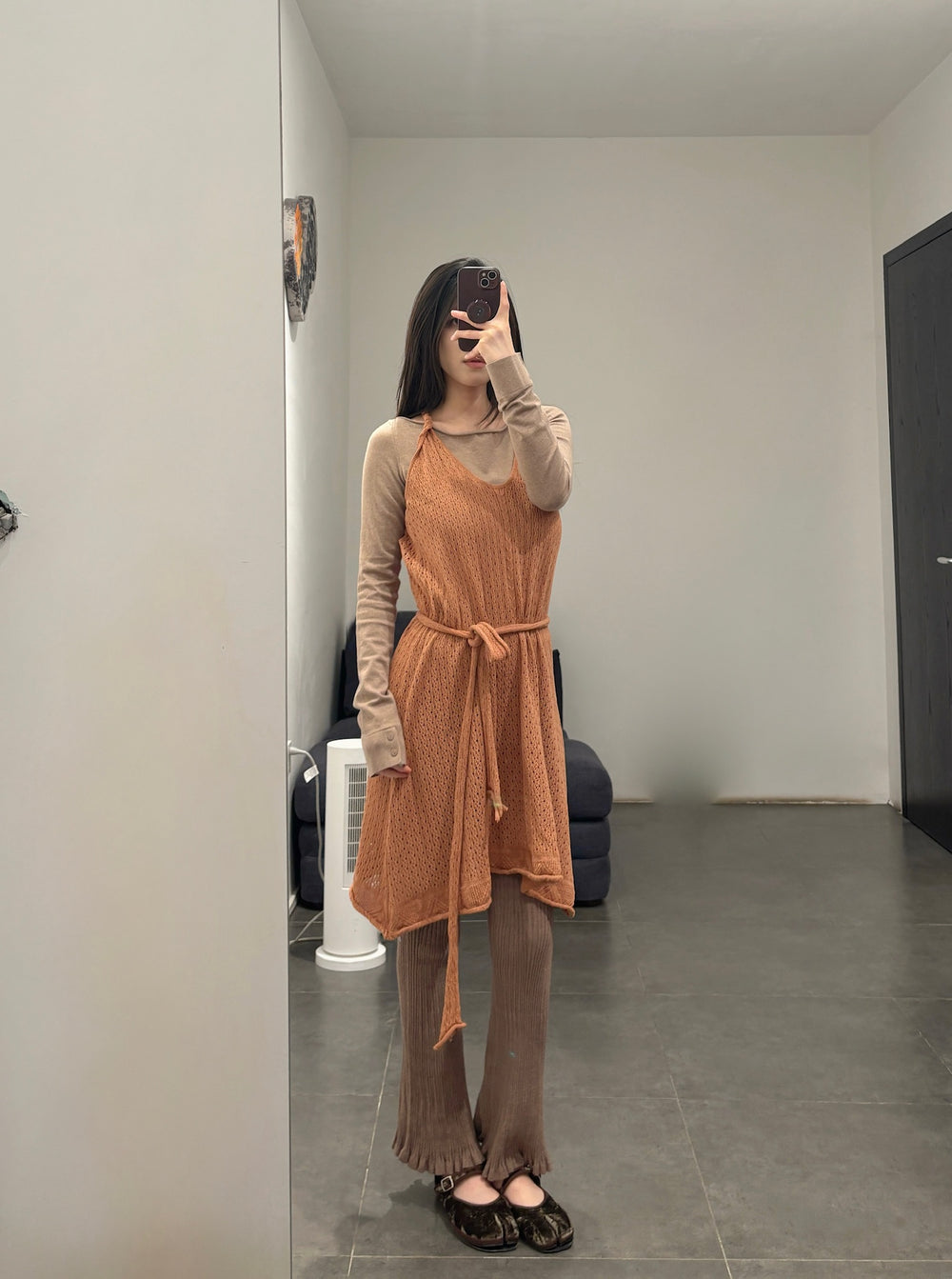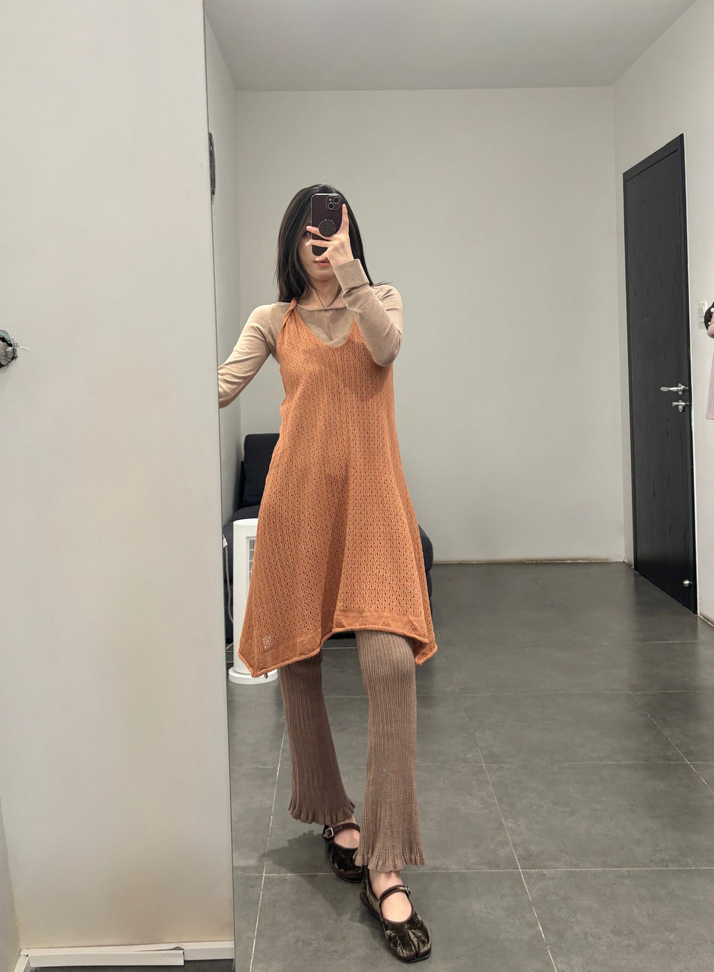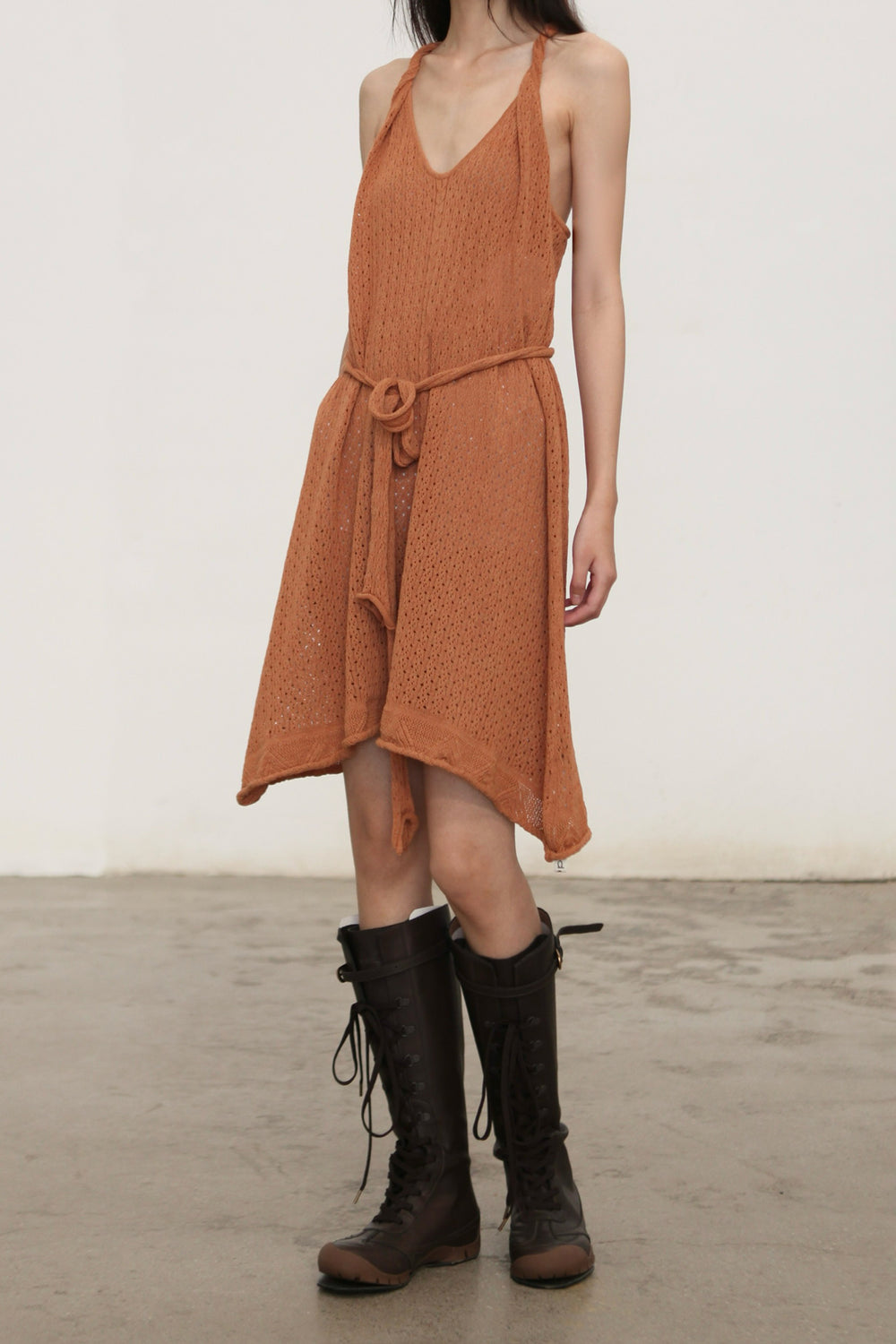 o cloche code cotton knit A-line dress OCC-OH01Q841-XQ Apricot Orange APRICOT