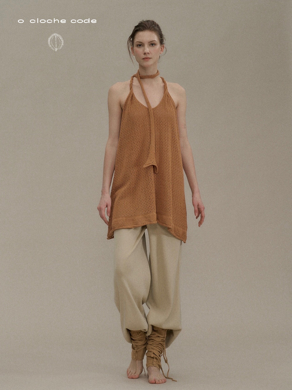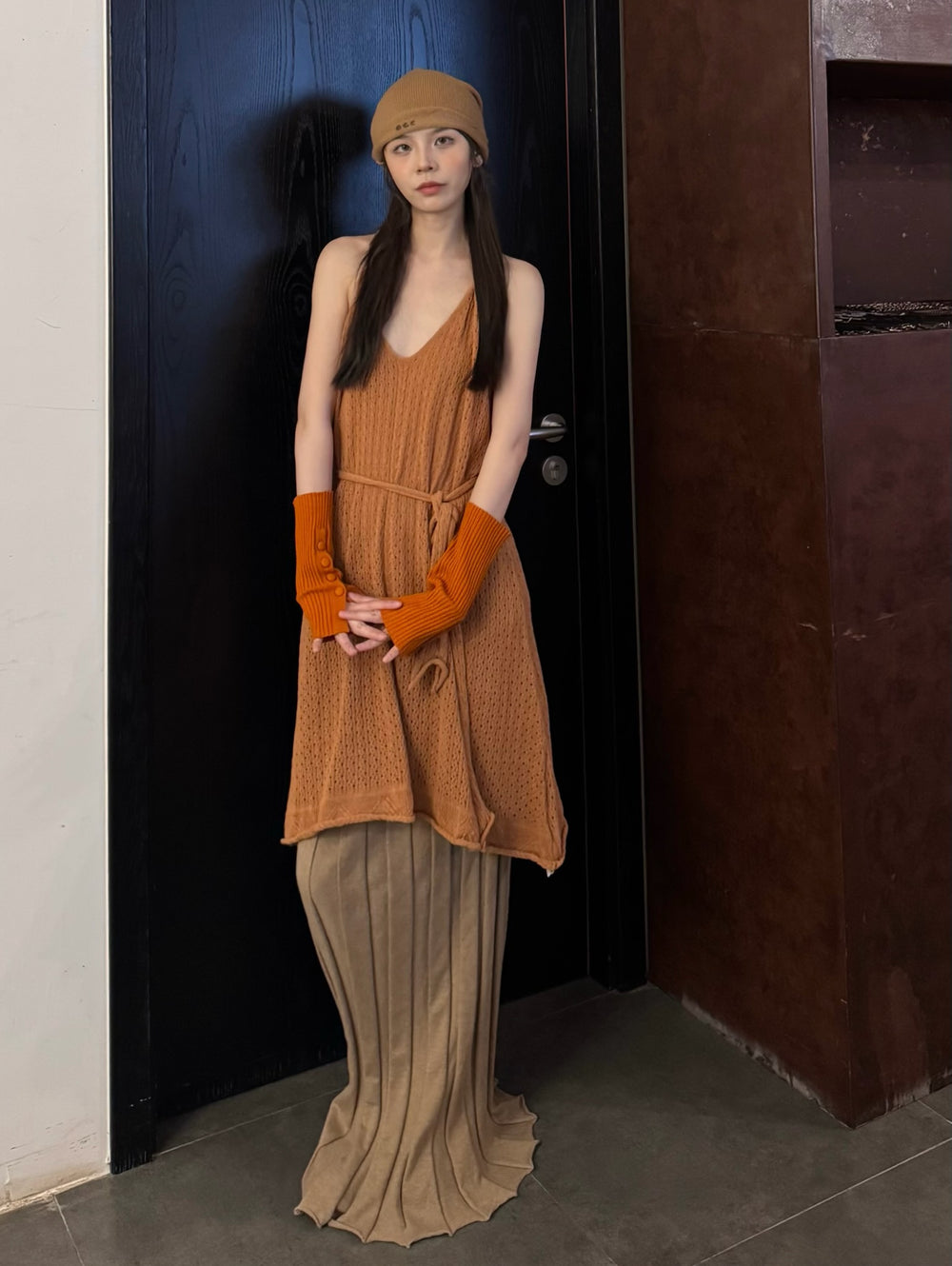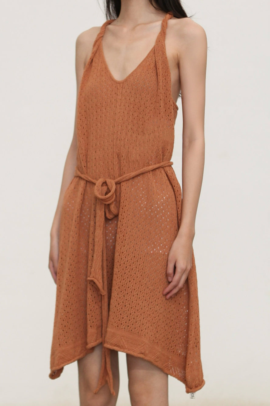 o cloche code cotton knit A-line dress OCC-OH01Q841-XQ Apricot Orange APRICOT