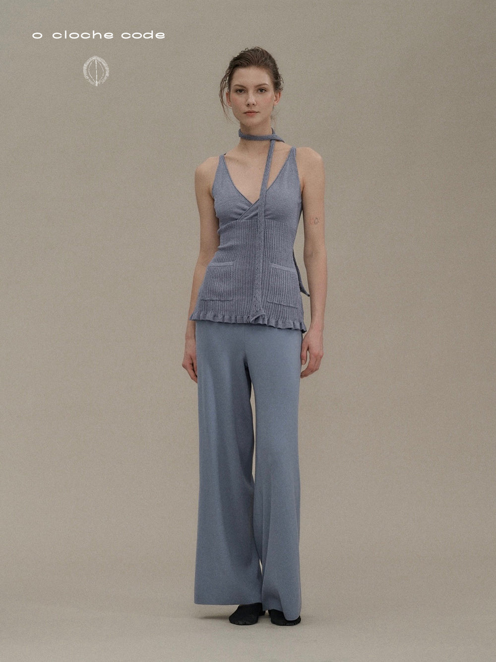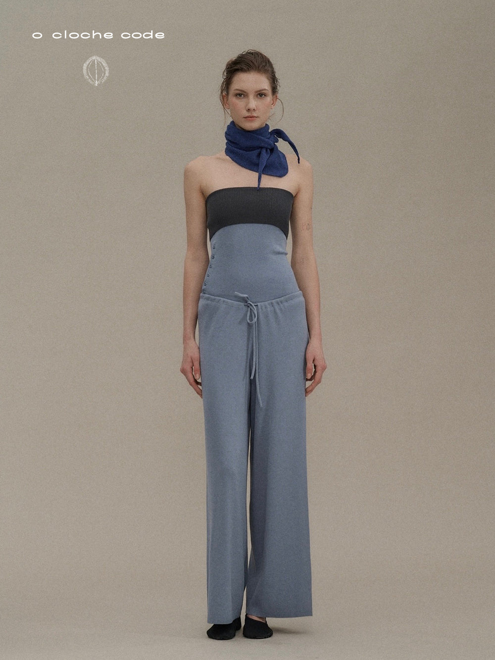 o cloche code low-rise straight leg pants OCC-OH01P849-HL grey-blue PASTEL