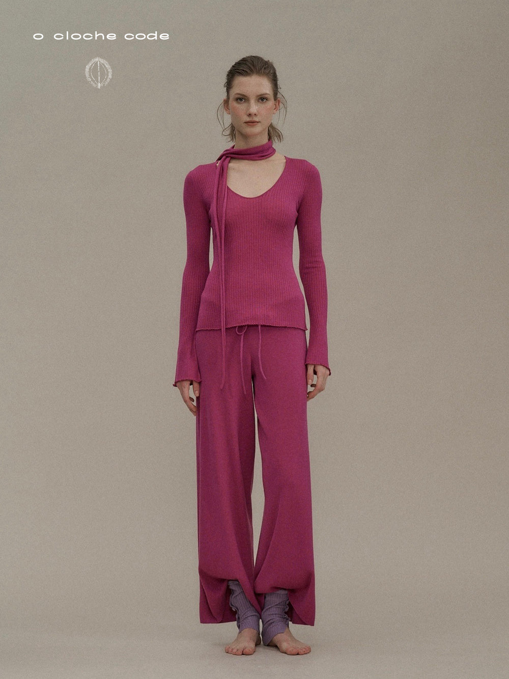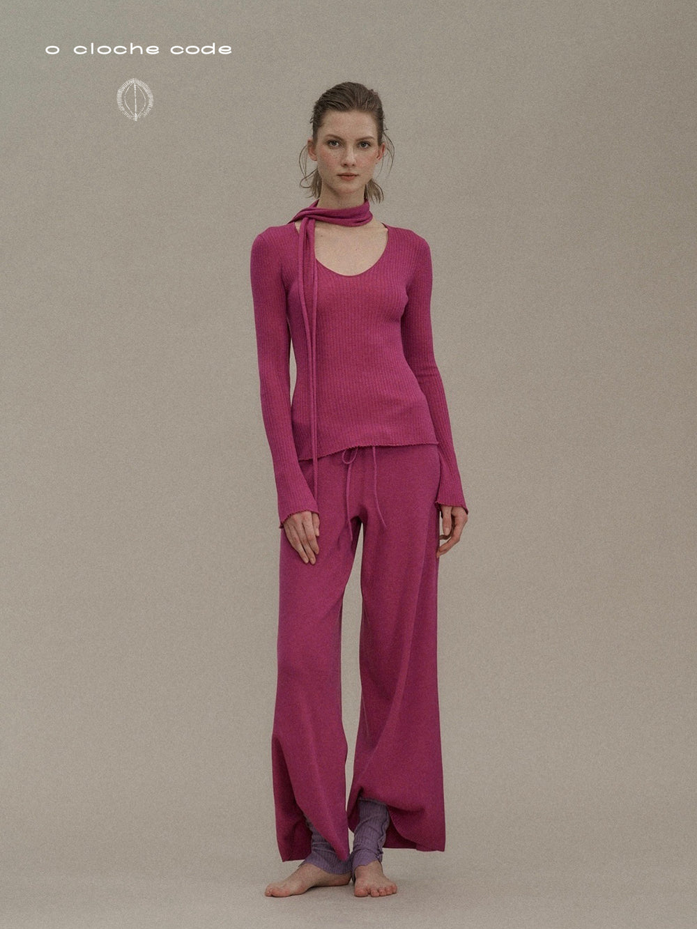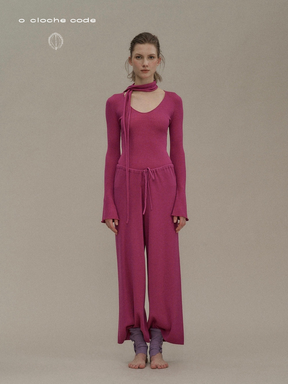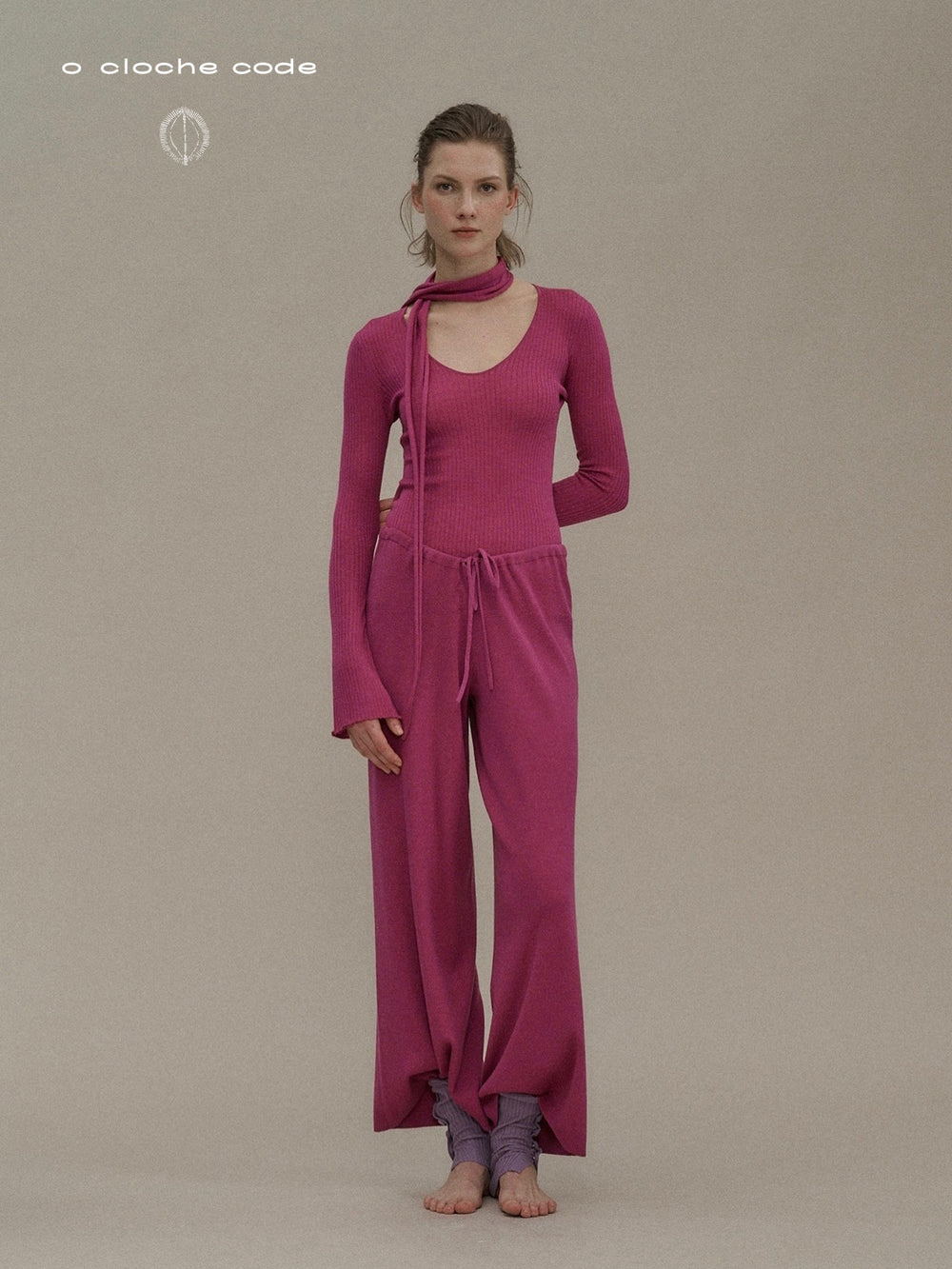 o cloche code low-rise straight leg pants OCC-OH01P849-ZH purplish-red FUCHSIA