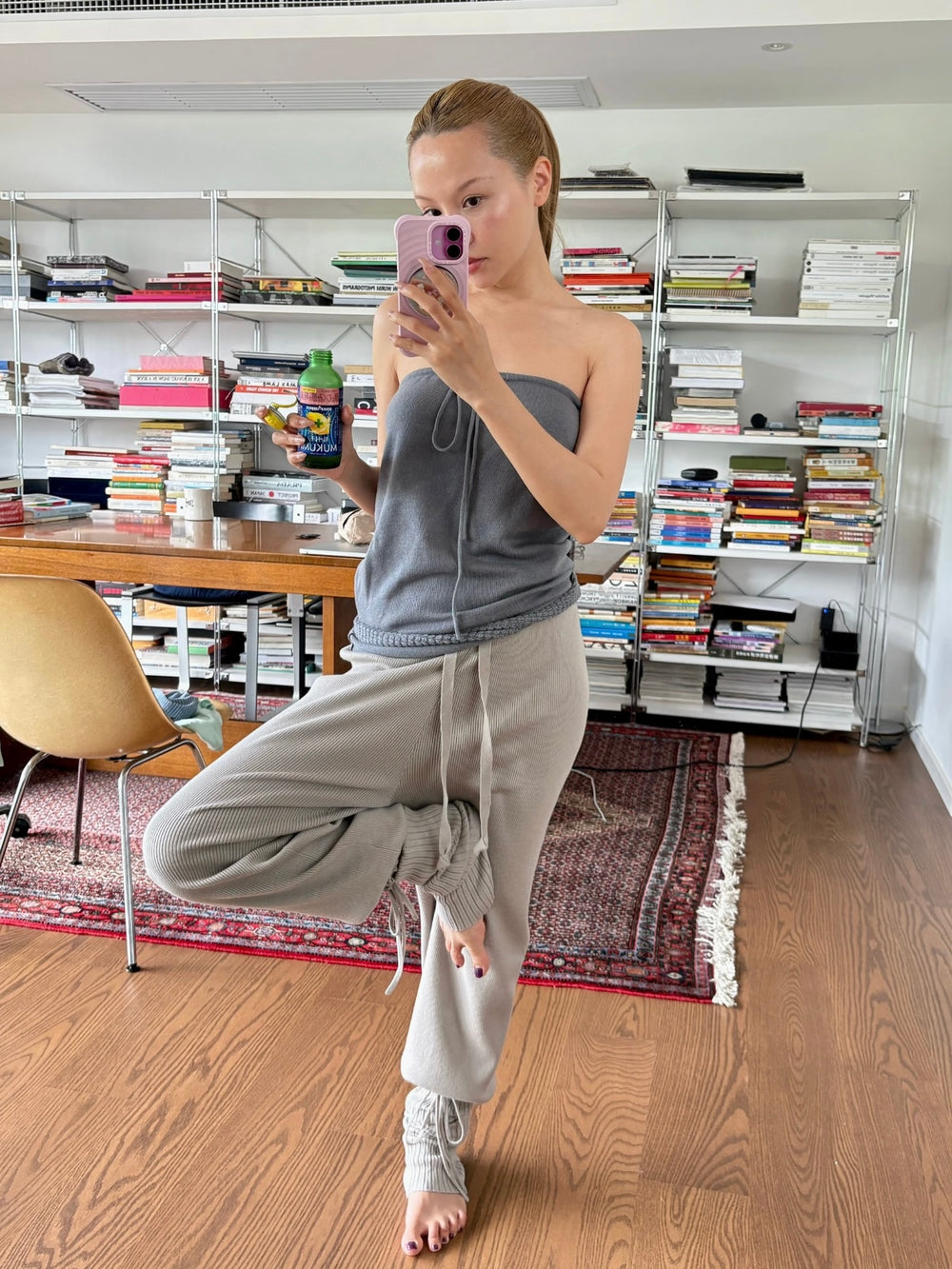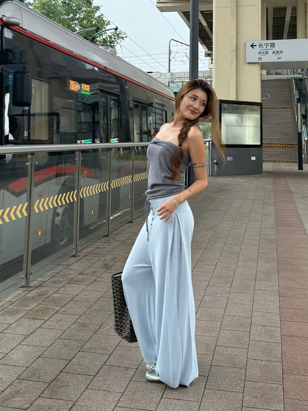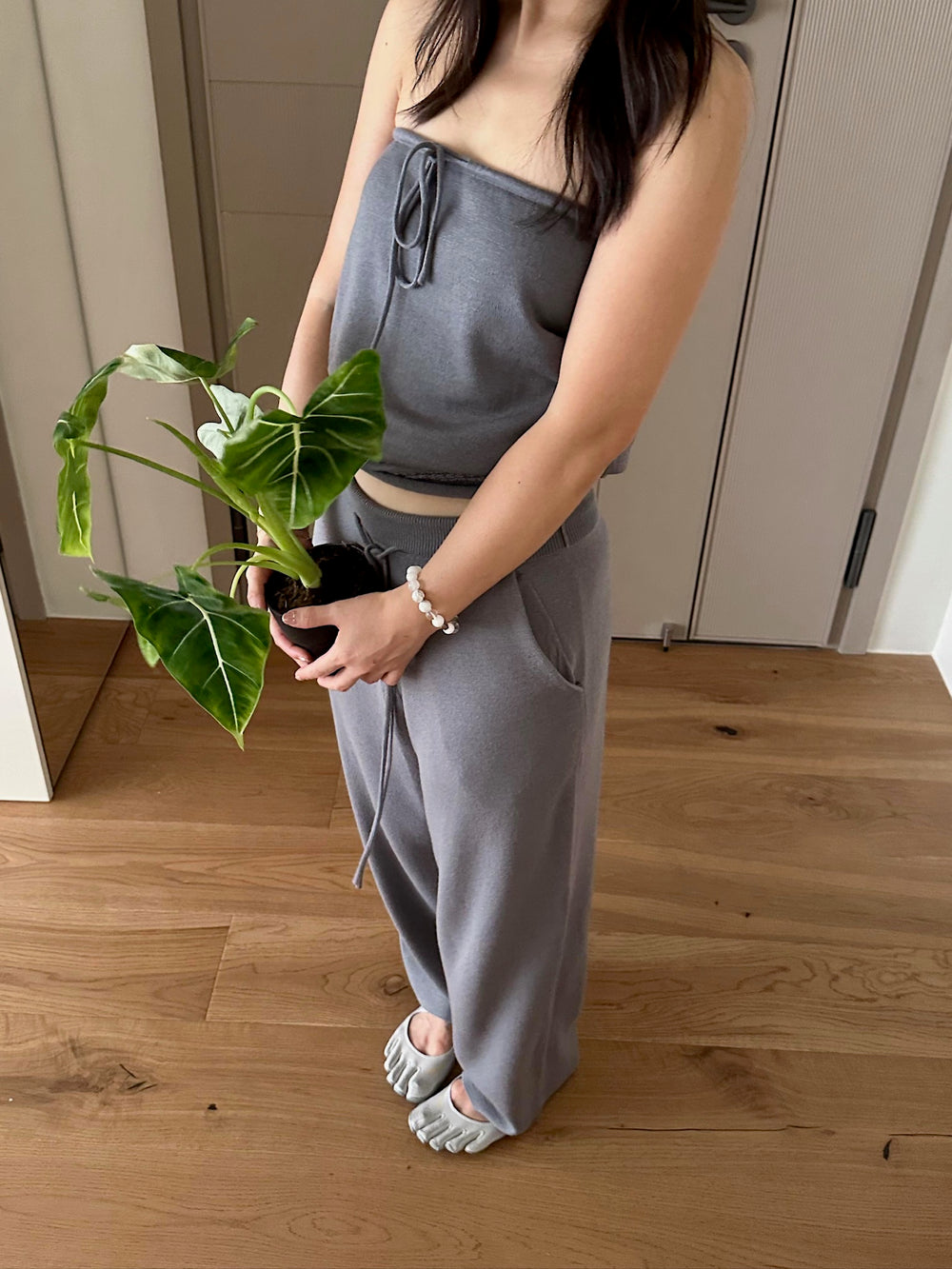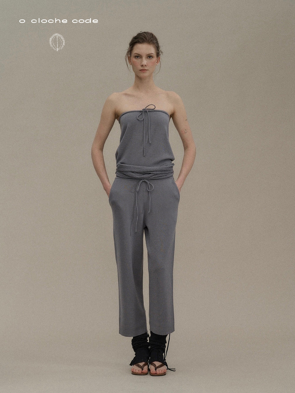 o cloche code tie-up strapless top OCC-OH01B840-MSH Mousse Grey