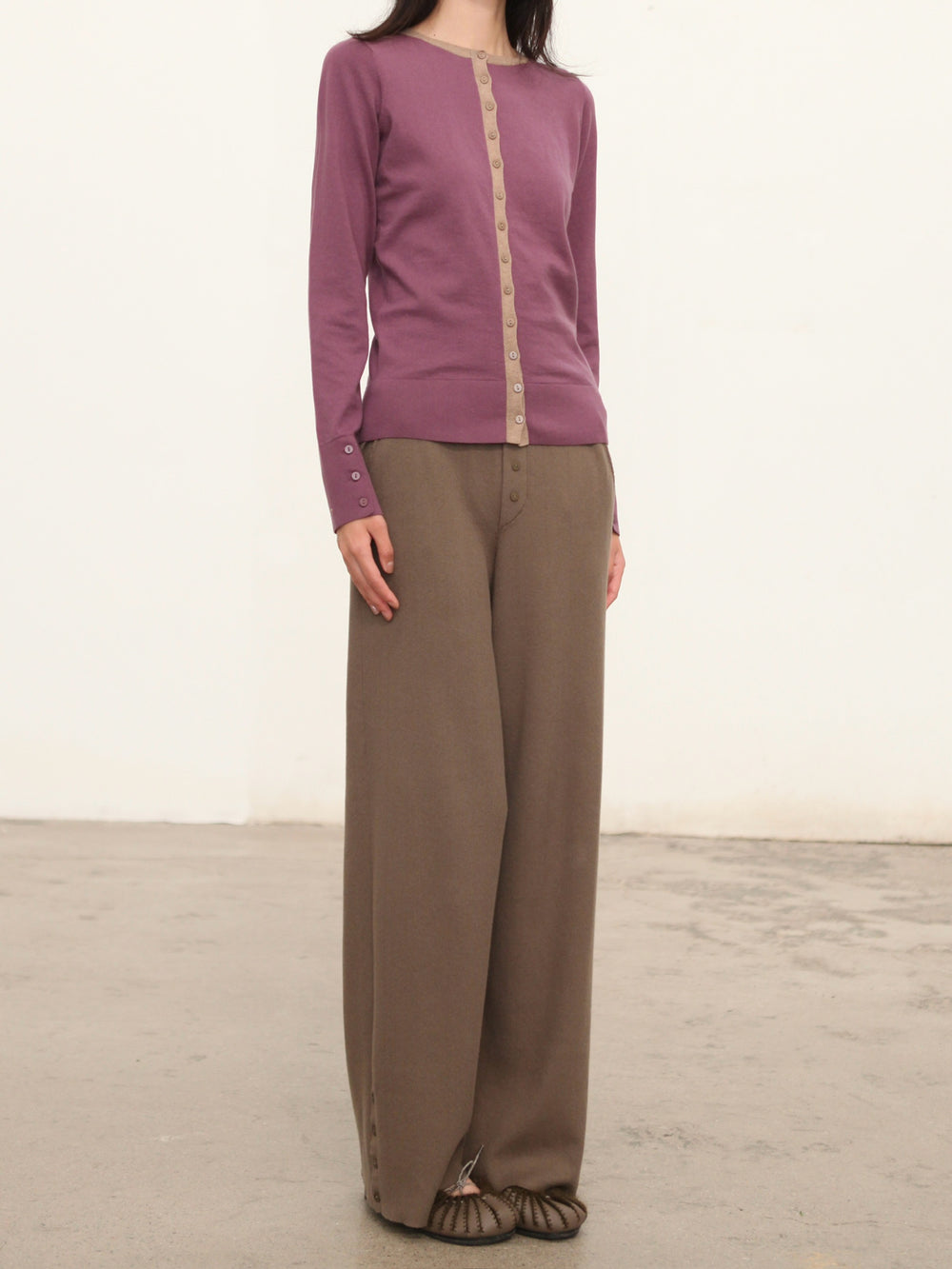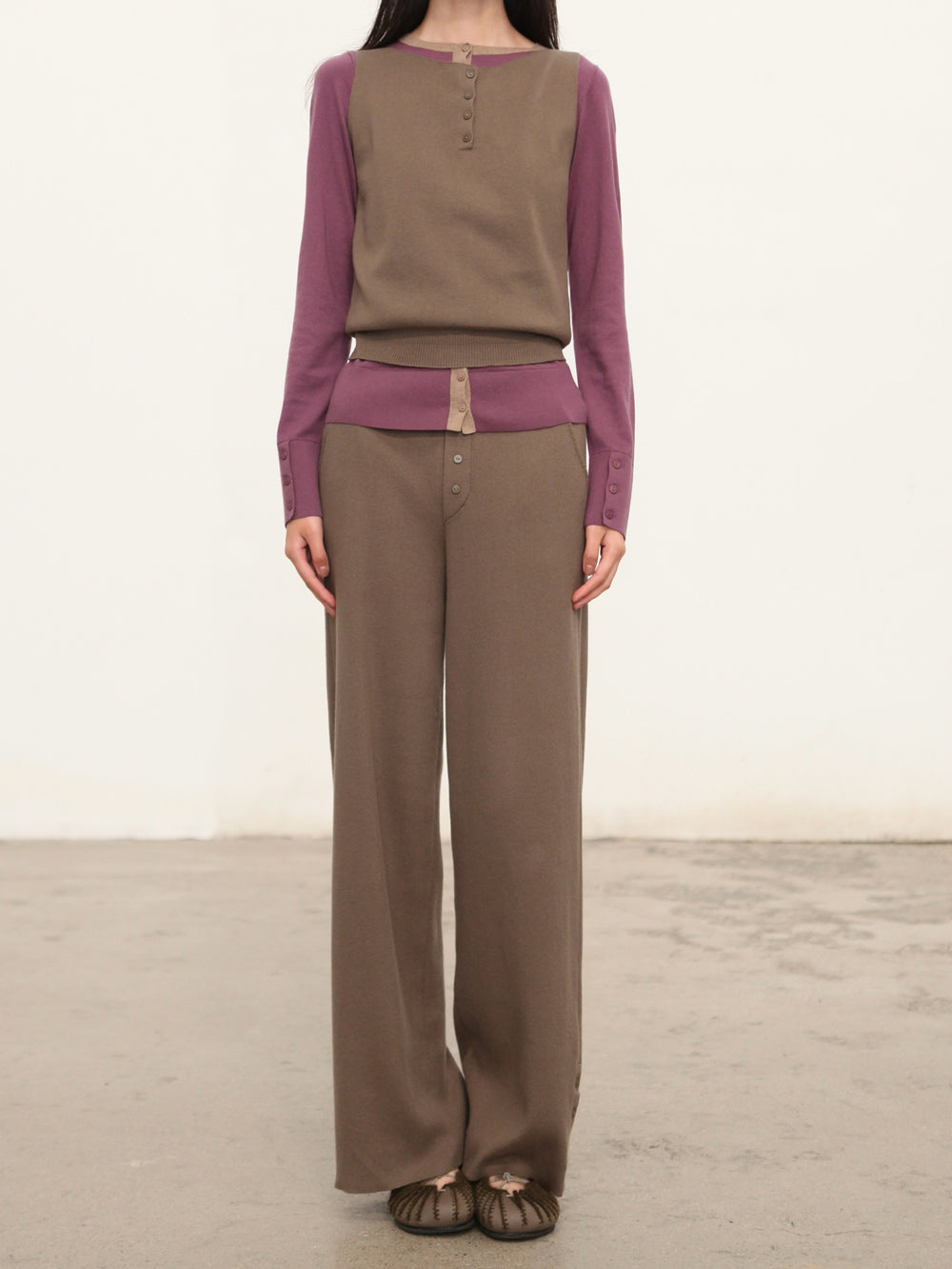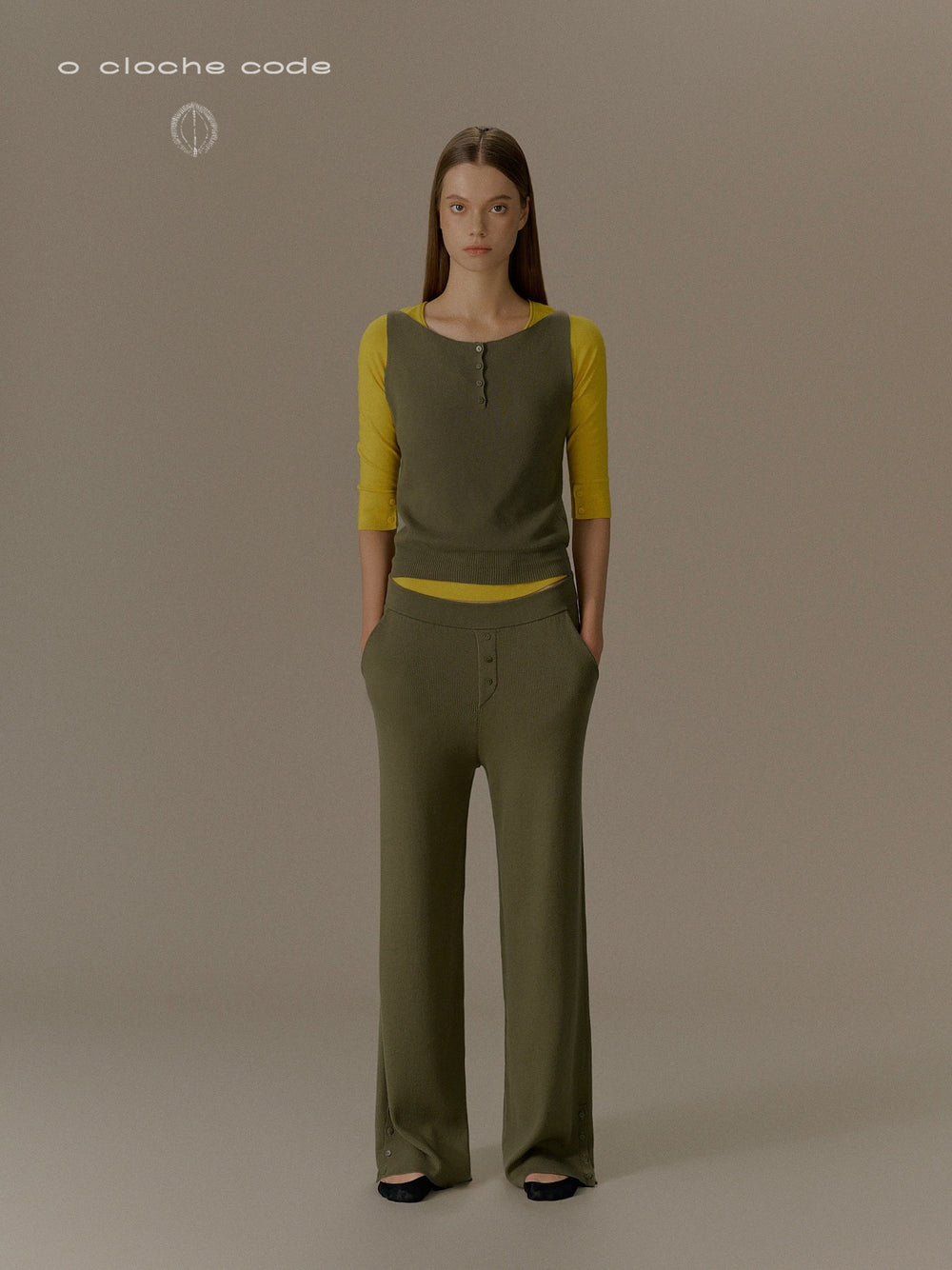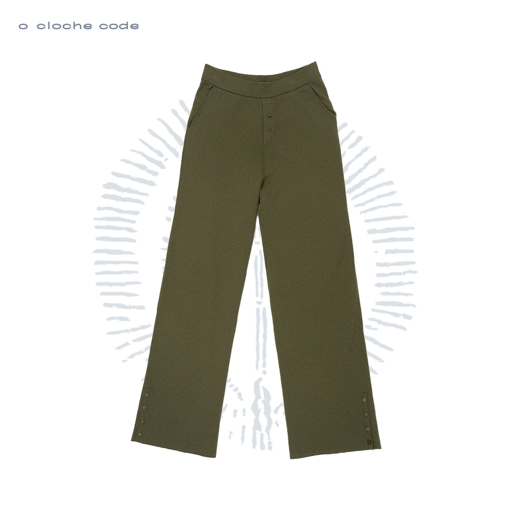 o cloche code 25 Fall/Winter Cotton Cashmere Button-Up Knit Trousers Women's OCC-OH01P877-NHL MUDDY Mud Grey Green