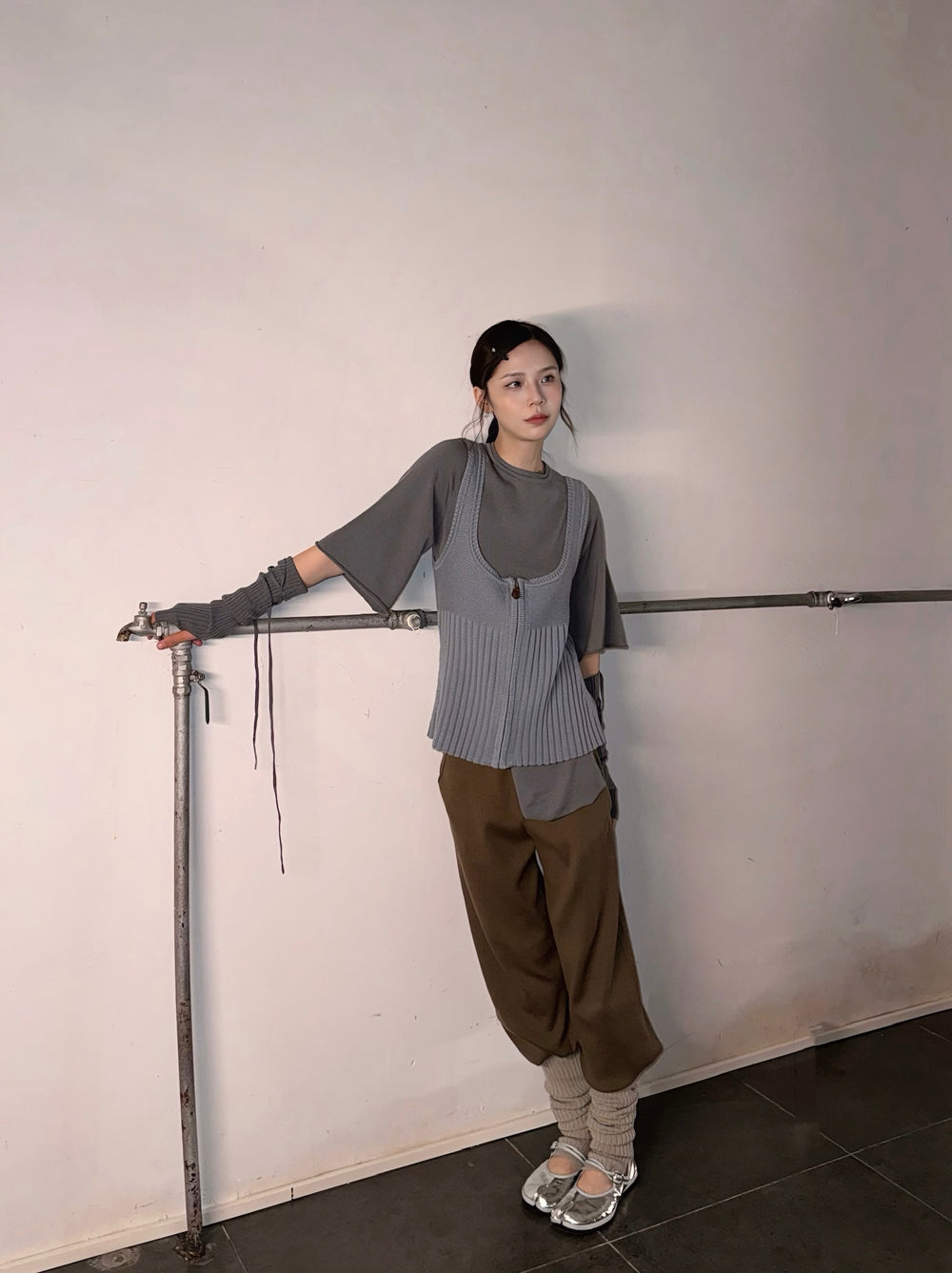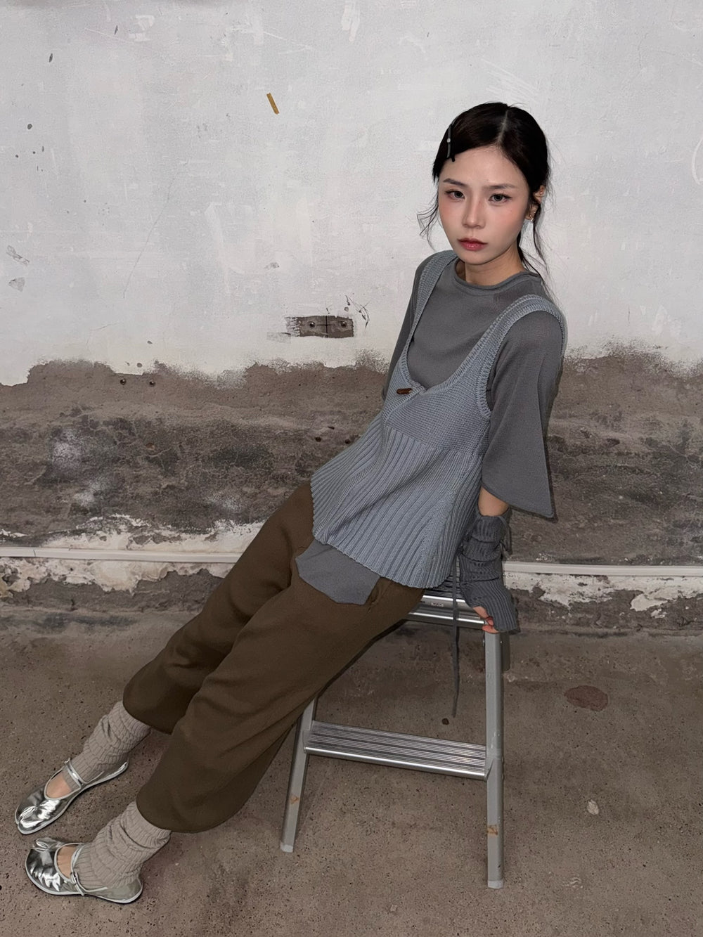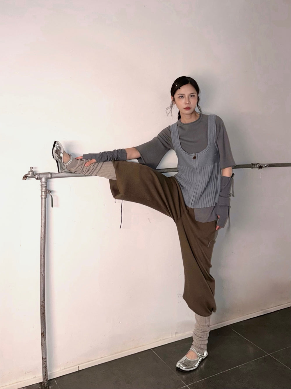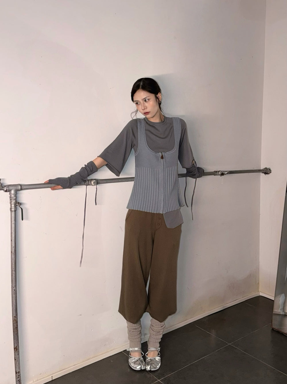o cloche code 25 Fall/Winter Cotton Cashmere Button-Up Knit Trousers Women's OCC-OH01P877-NHL MUDDY Mud Grey Green