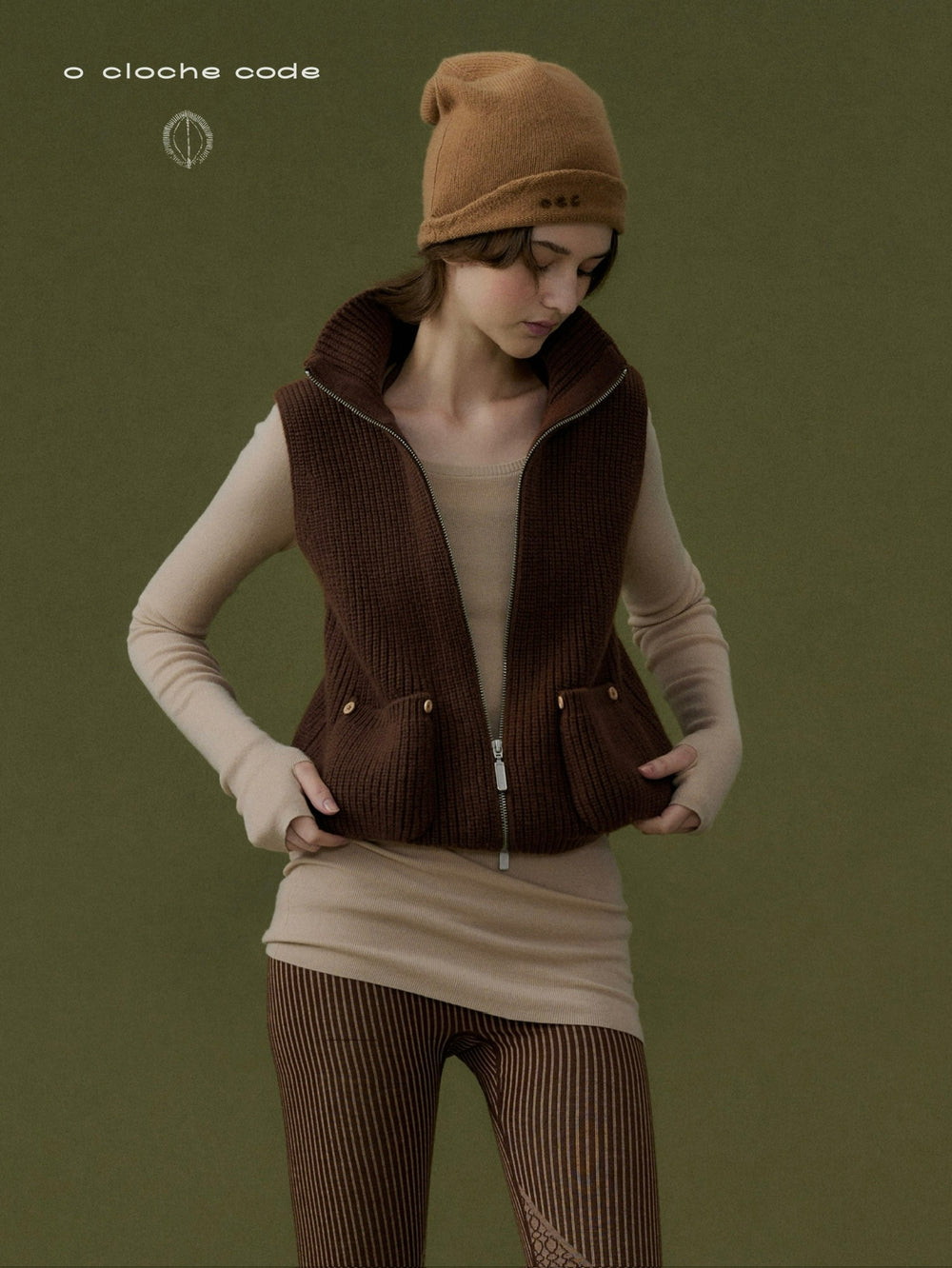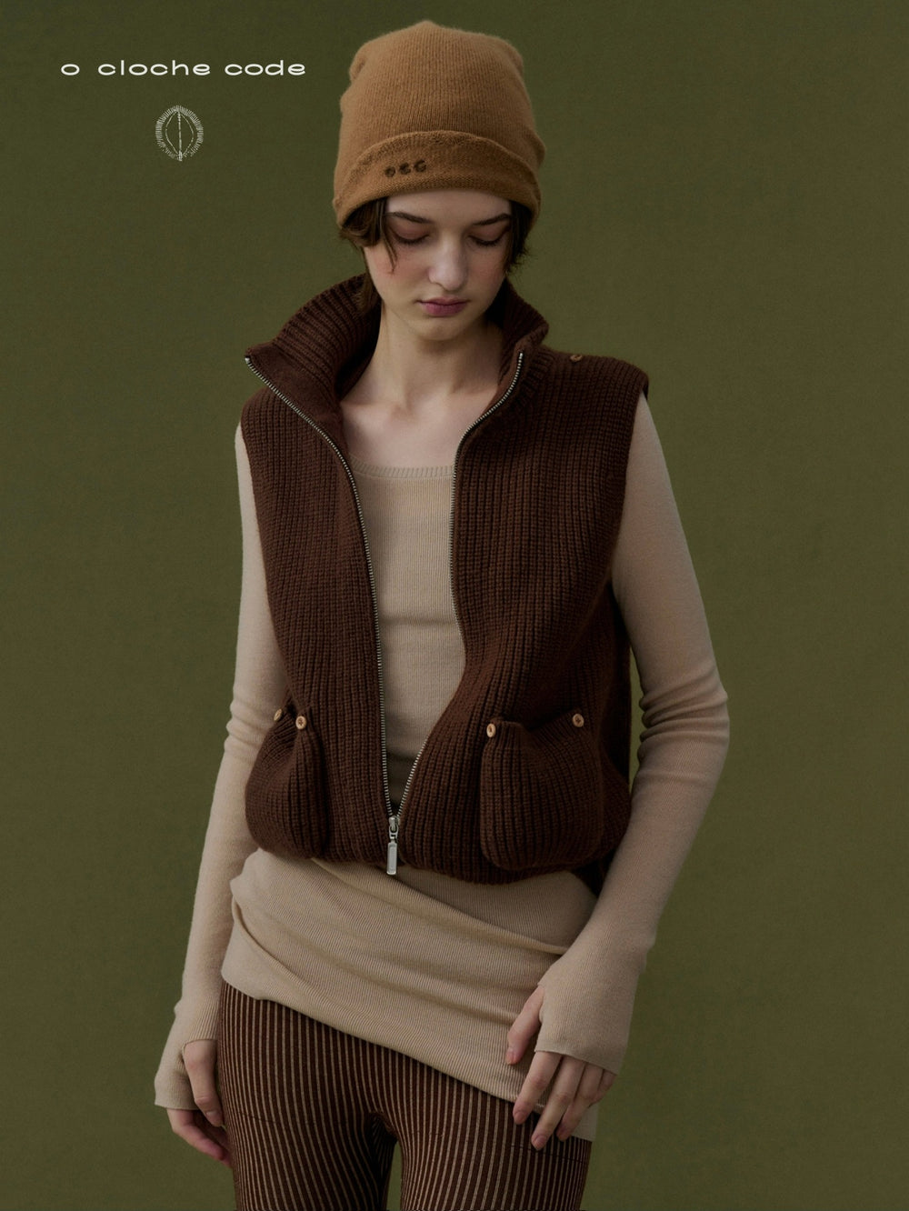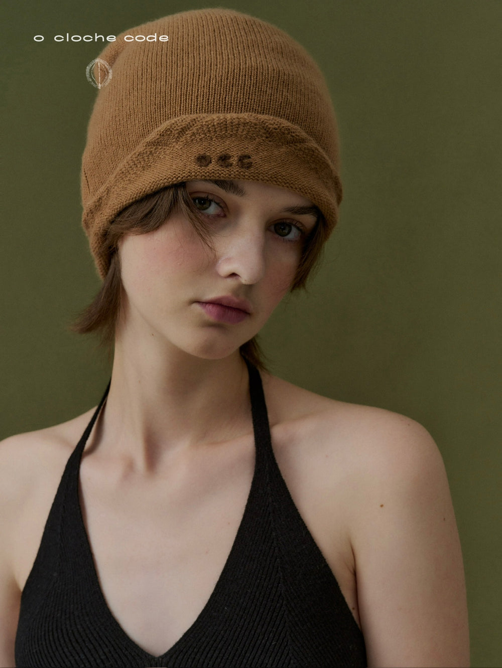o cloche code cashmere folded brim beanie OCC-OH01S818-QT light camel color LIGHT CAMEL