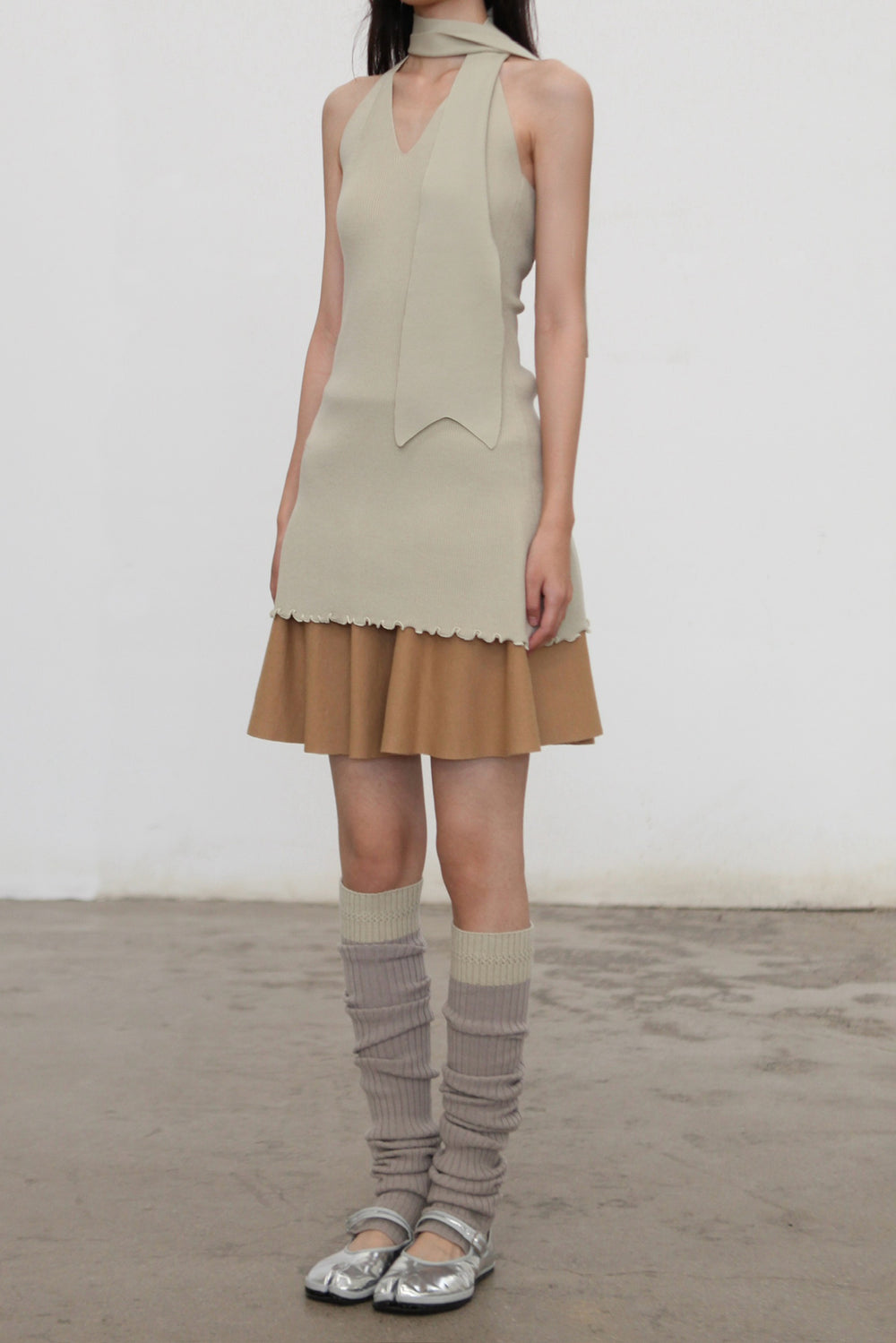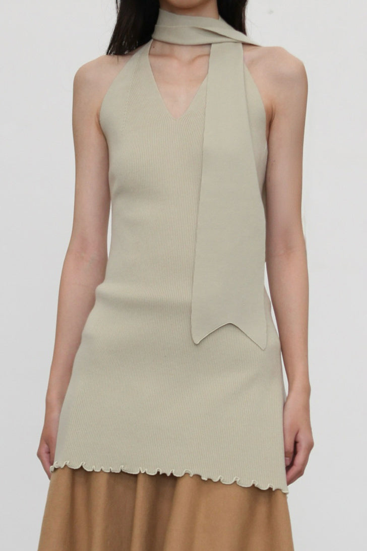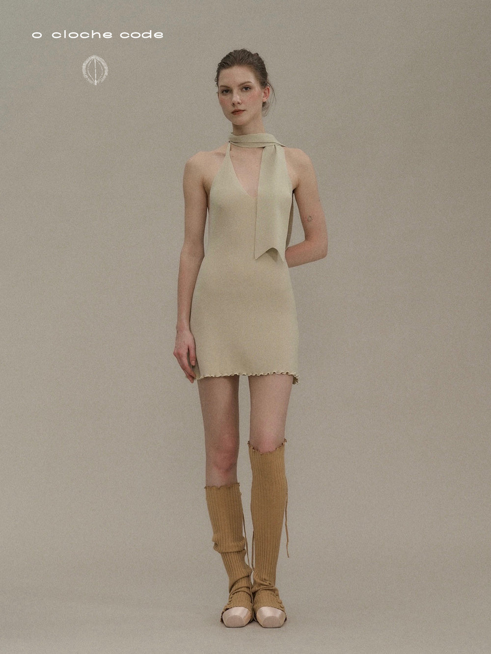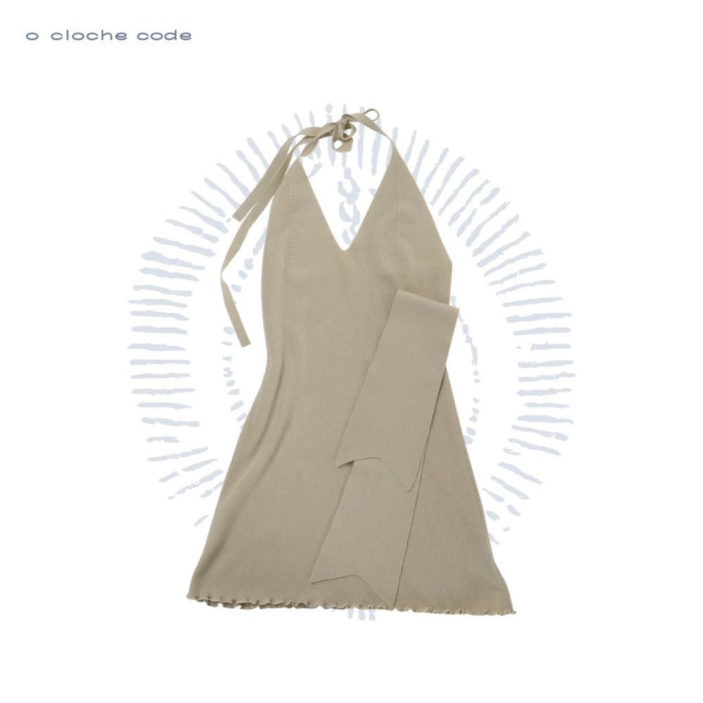 o cloche code halter neck dress OCC-OH01Q855-DLH pea green/grey PEA