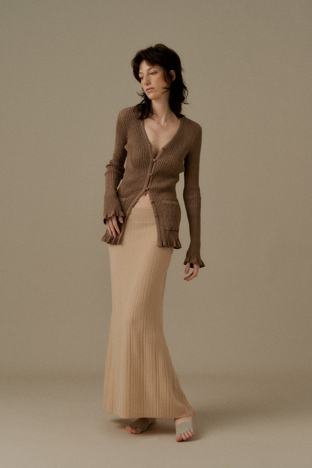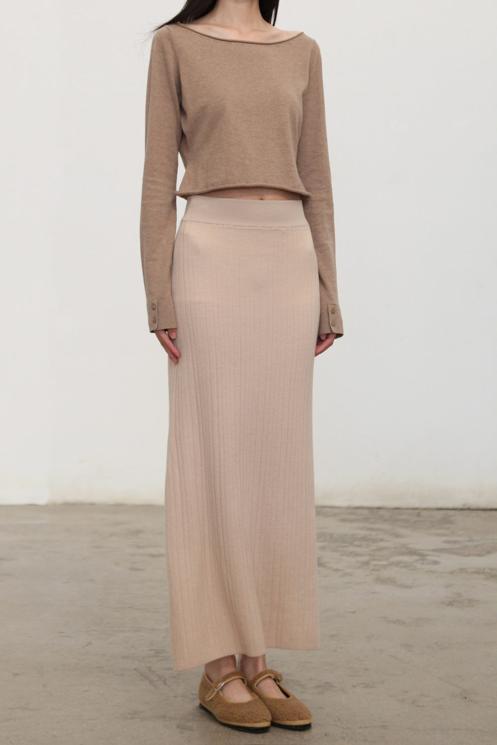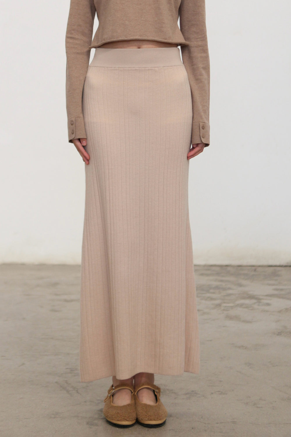 o cloche code wool knit curved midi skirt OCC-OH01Q801-LSM lace beige LACE