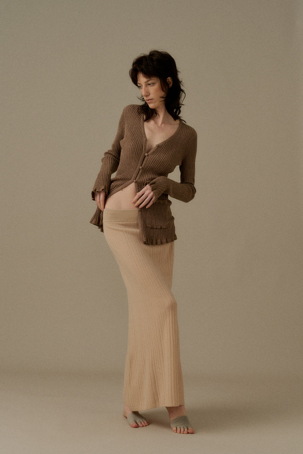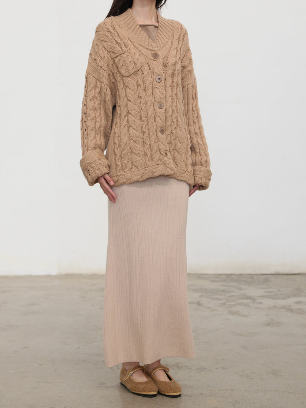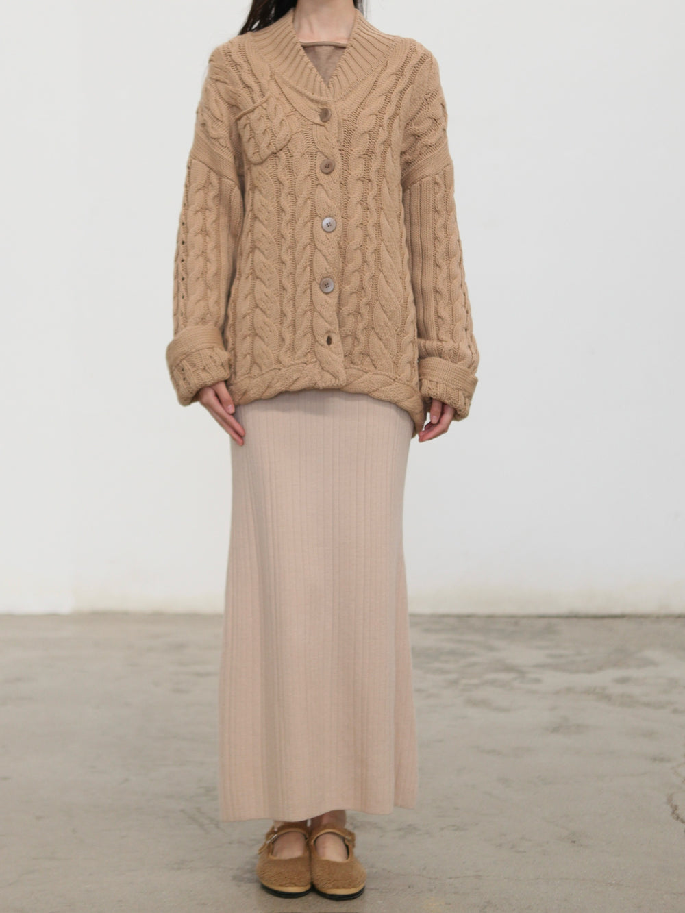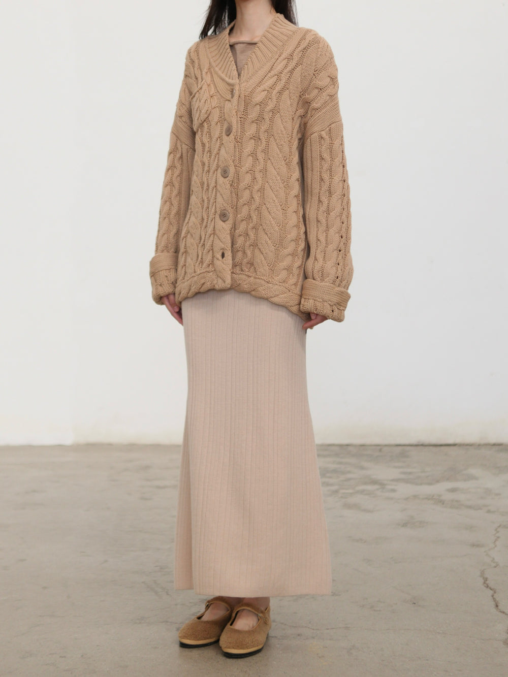 o cloche code wool knit curved midi skirt OCC-OH01Q801-LSM lace beige LACE