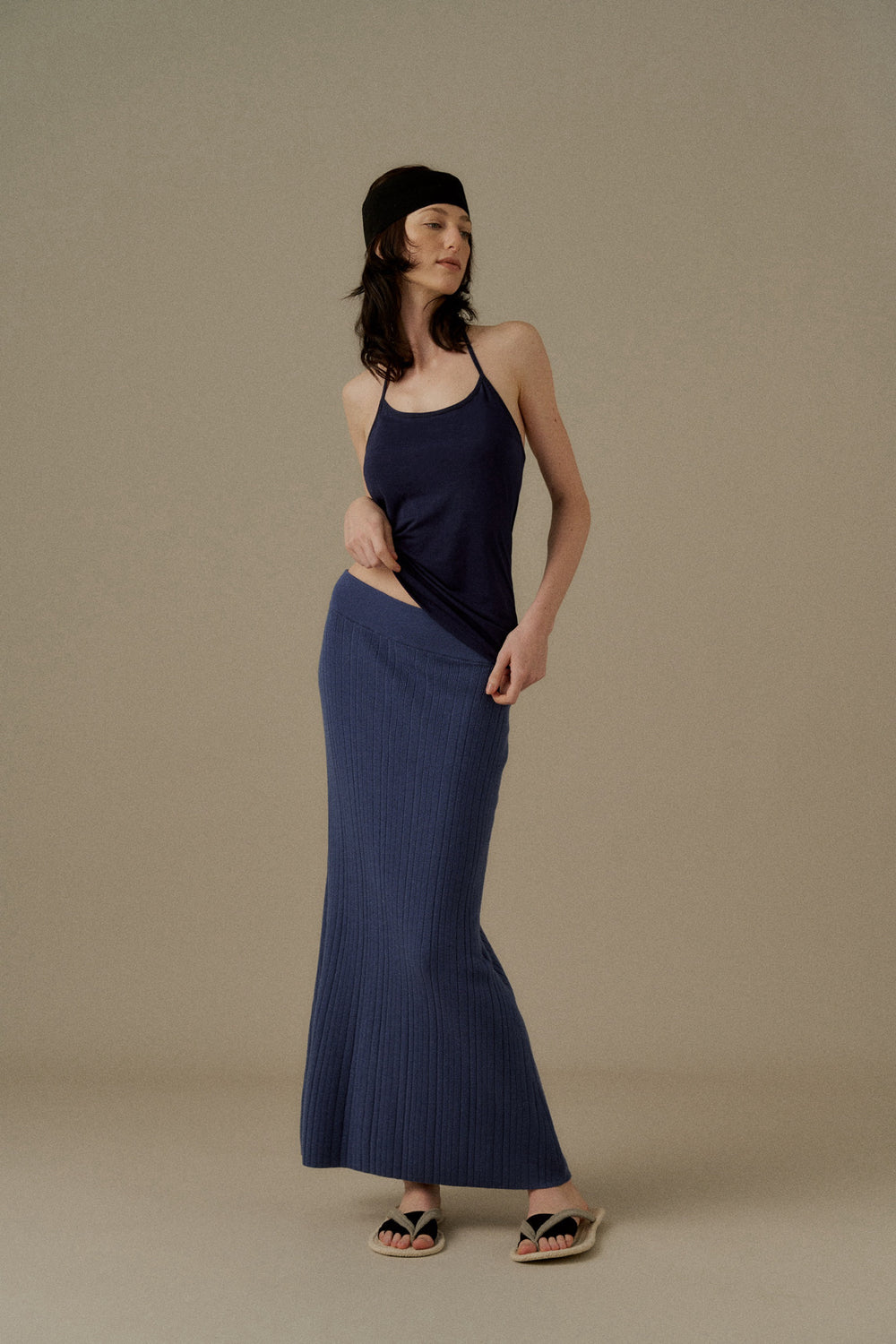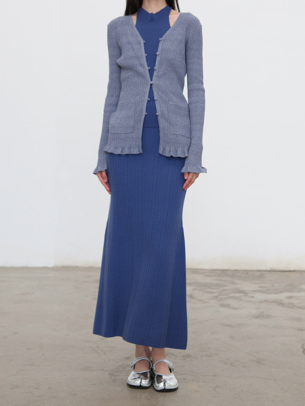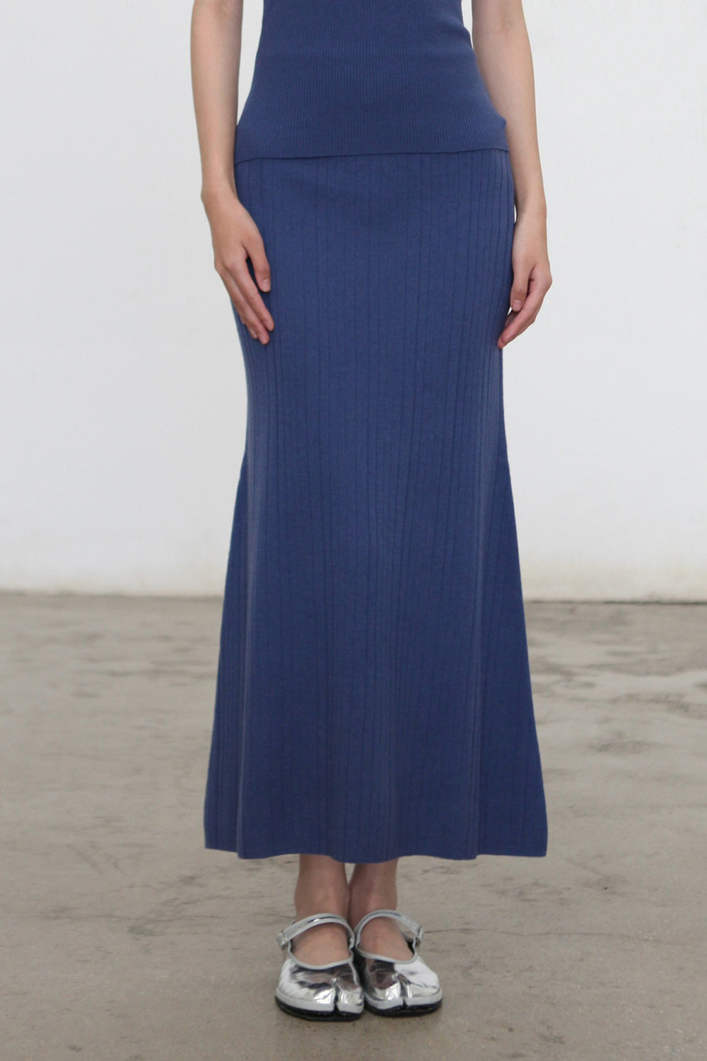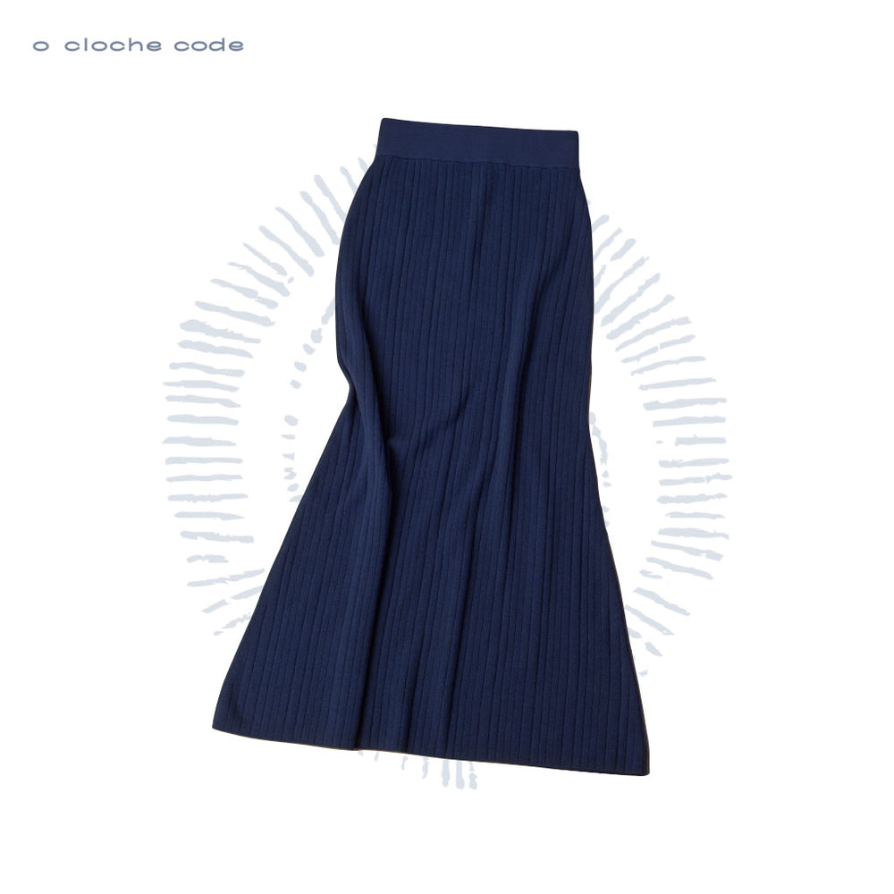 o cloche code wool knit curved midi skirt OCC-OH01Q801-WL misty blue OCEANA