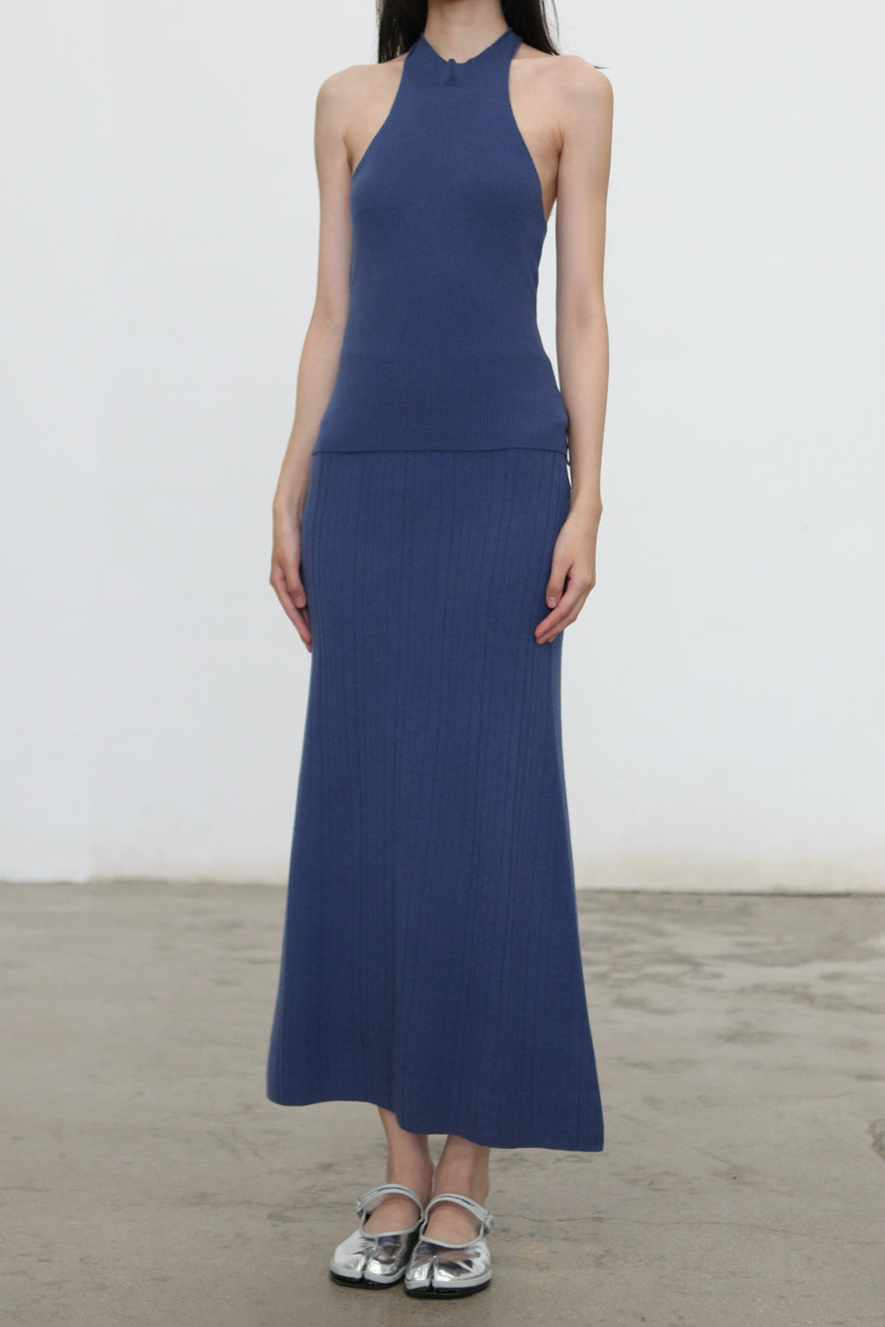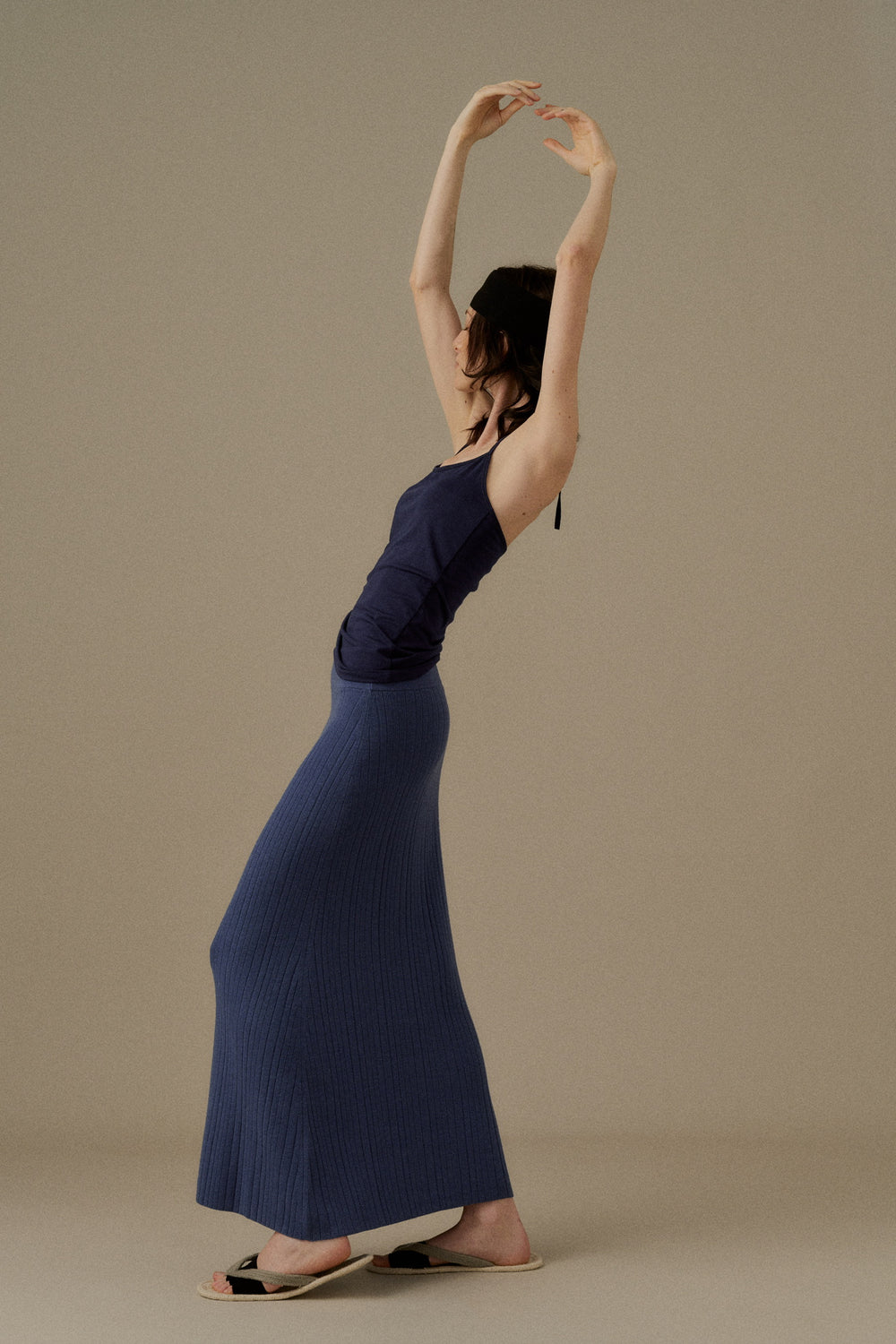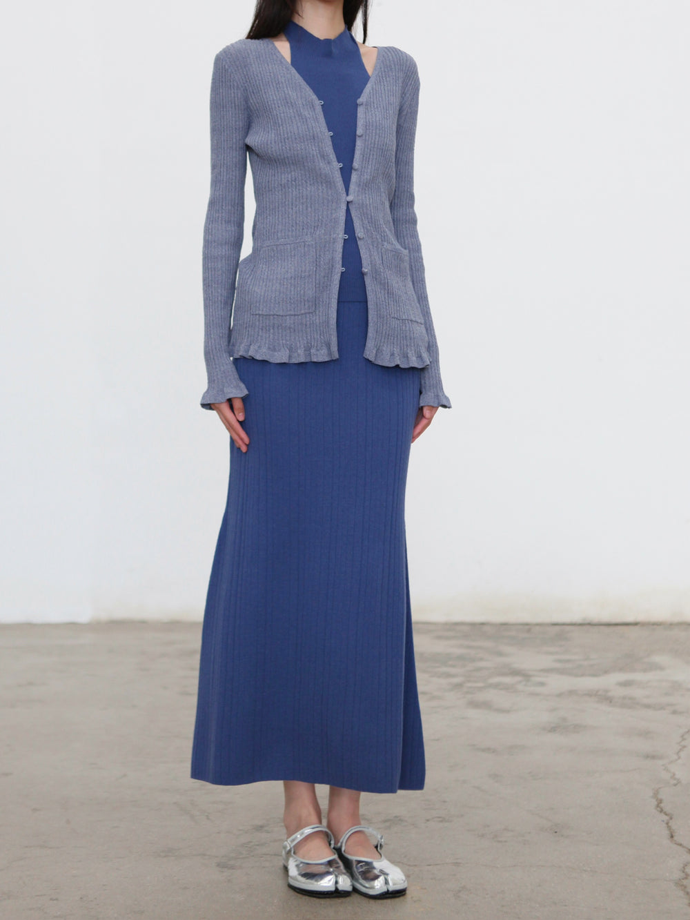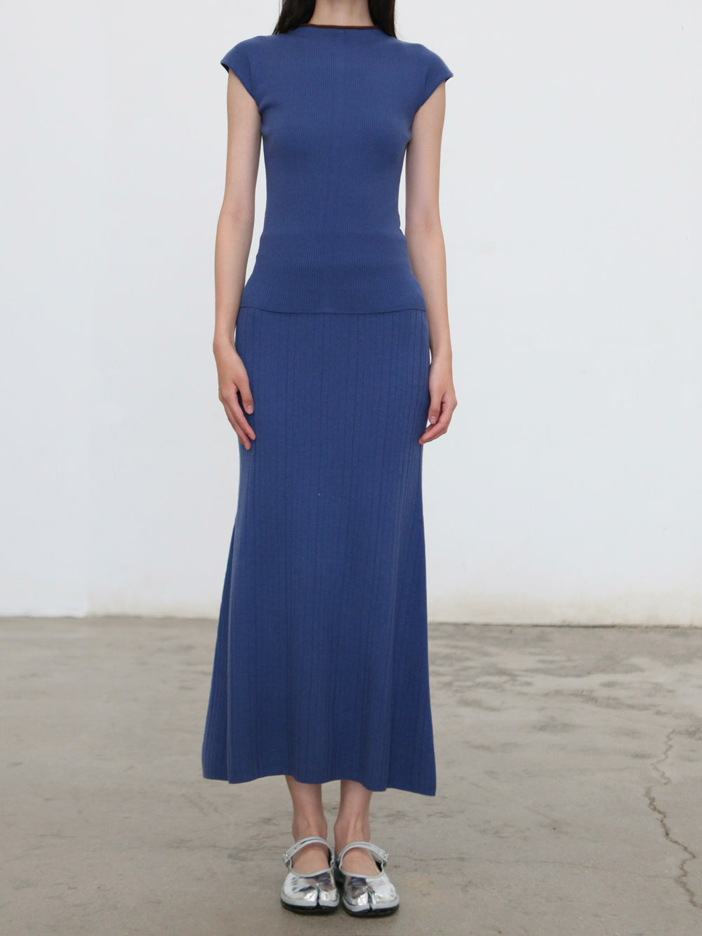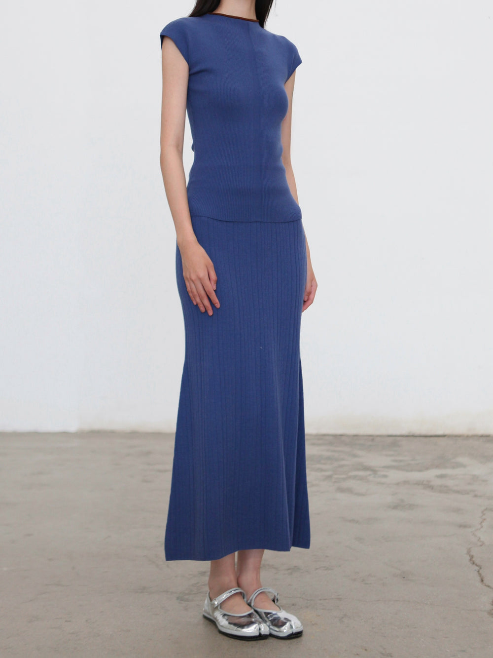 o cloche code wool knit curved midi skirt OCC-OH01Q801-WL misty blue OCEANA