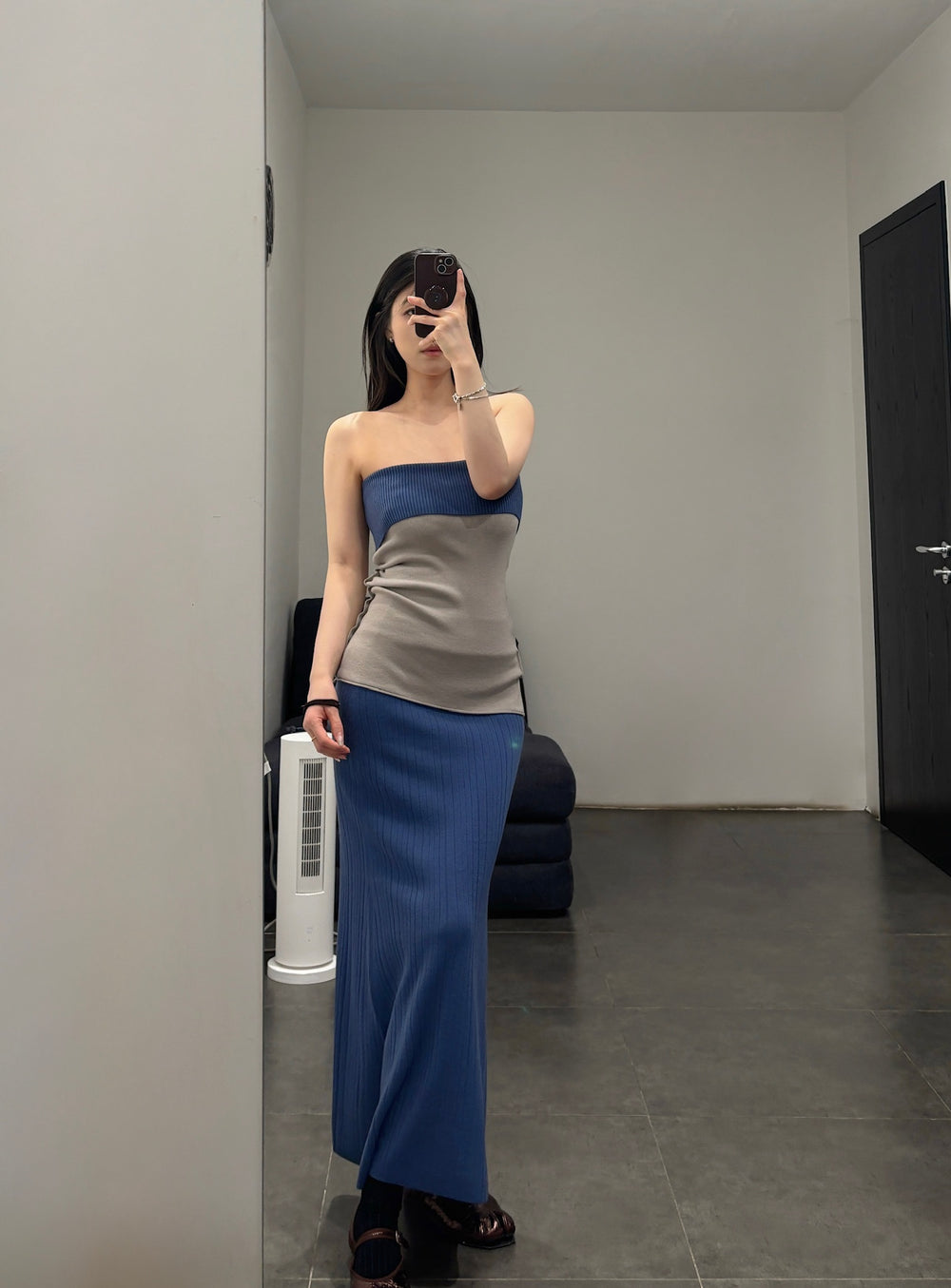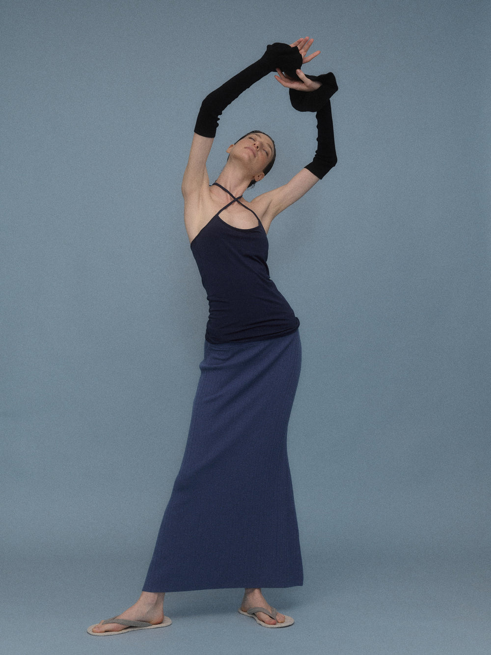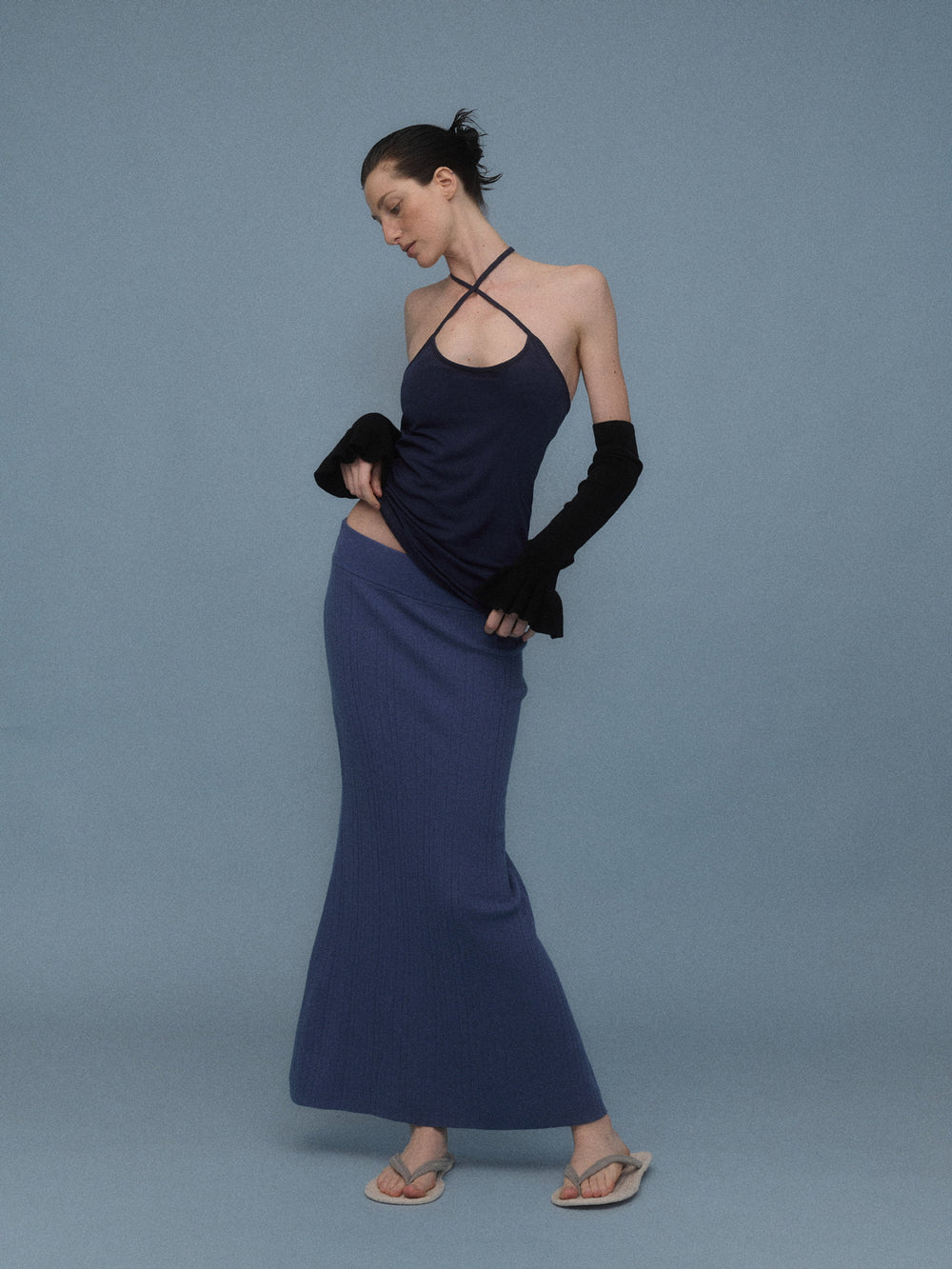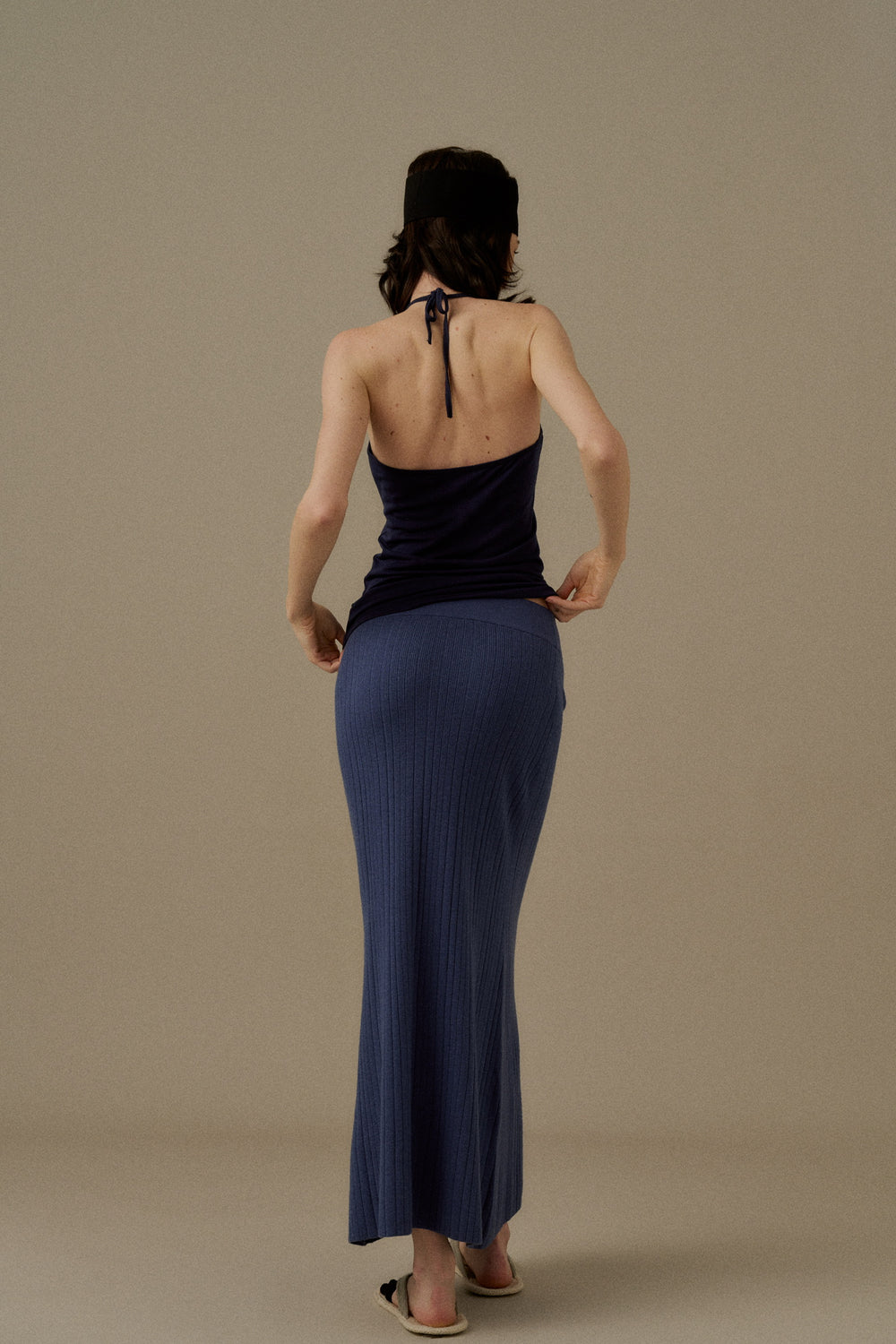 o cloche code wool knit curved midi skirt OCC-OH01Q801-WL misty blue OCEANA