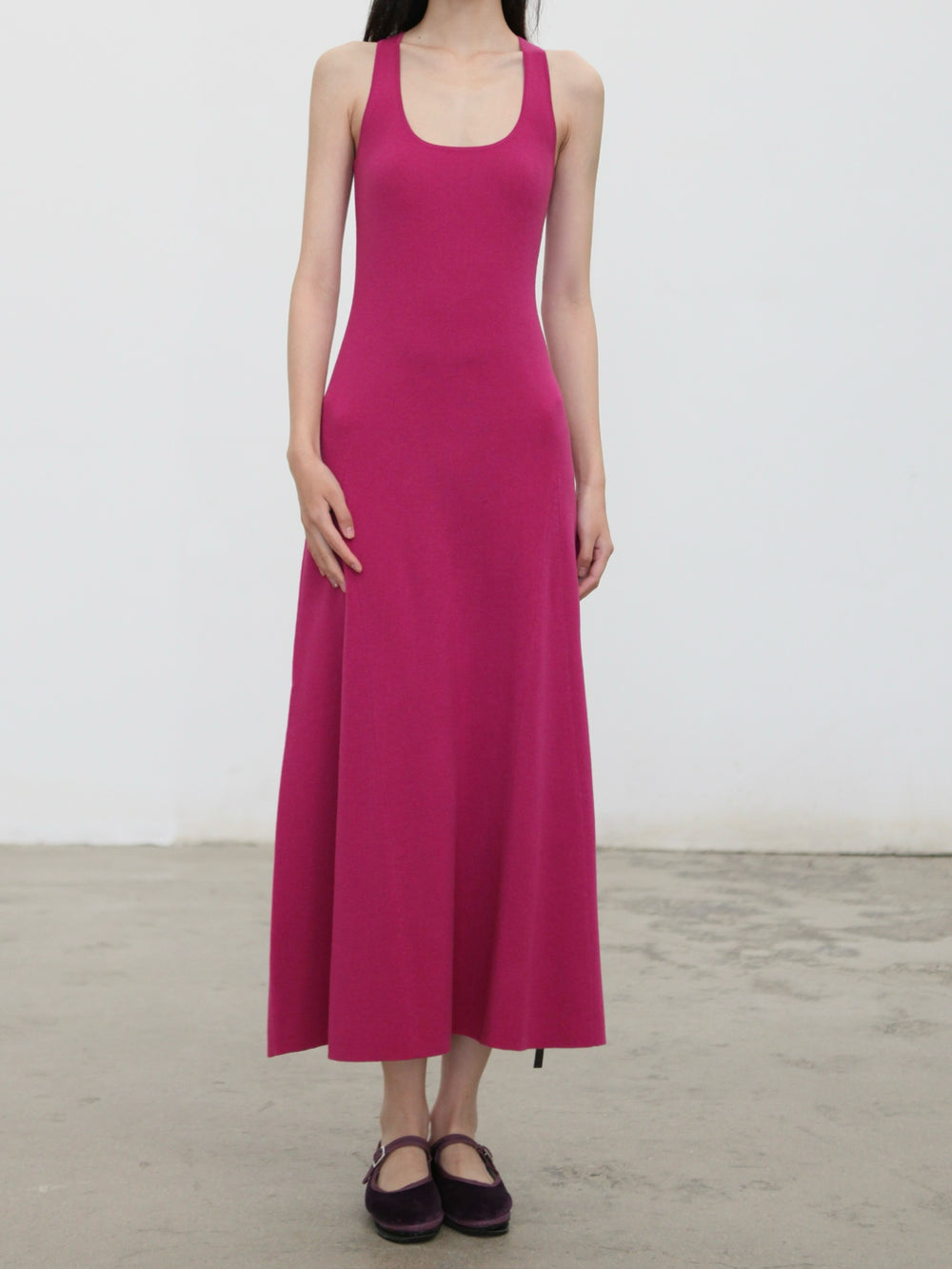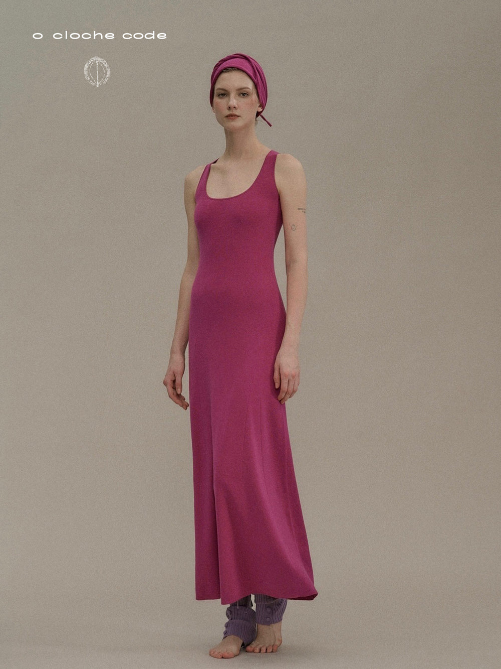 o cloche code wool knit maxi dress OCC-OH01Q816-ZH purplish-red FUCHSIA