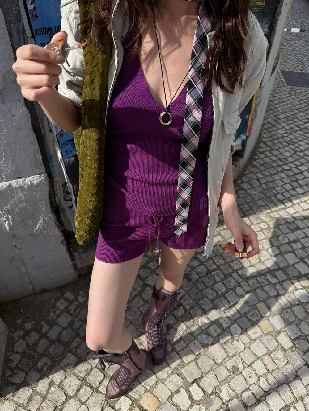 o cloche code wool knit shorts OCC-OH01P806-GDZ classic purple FIALA