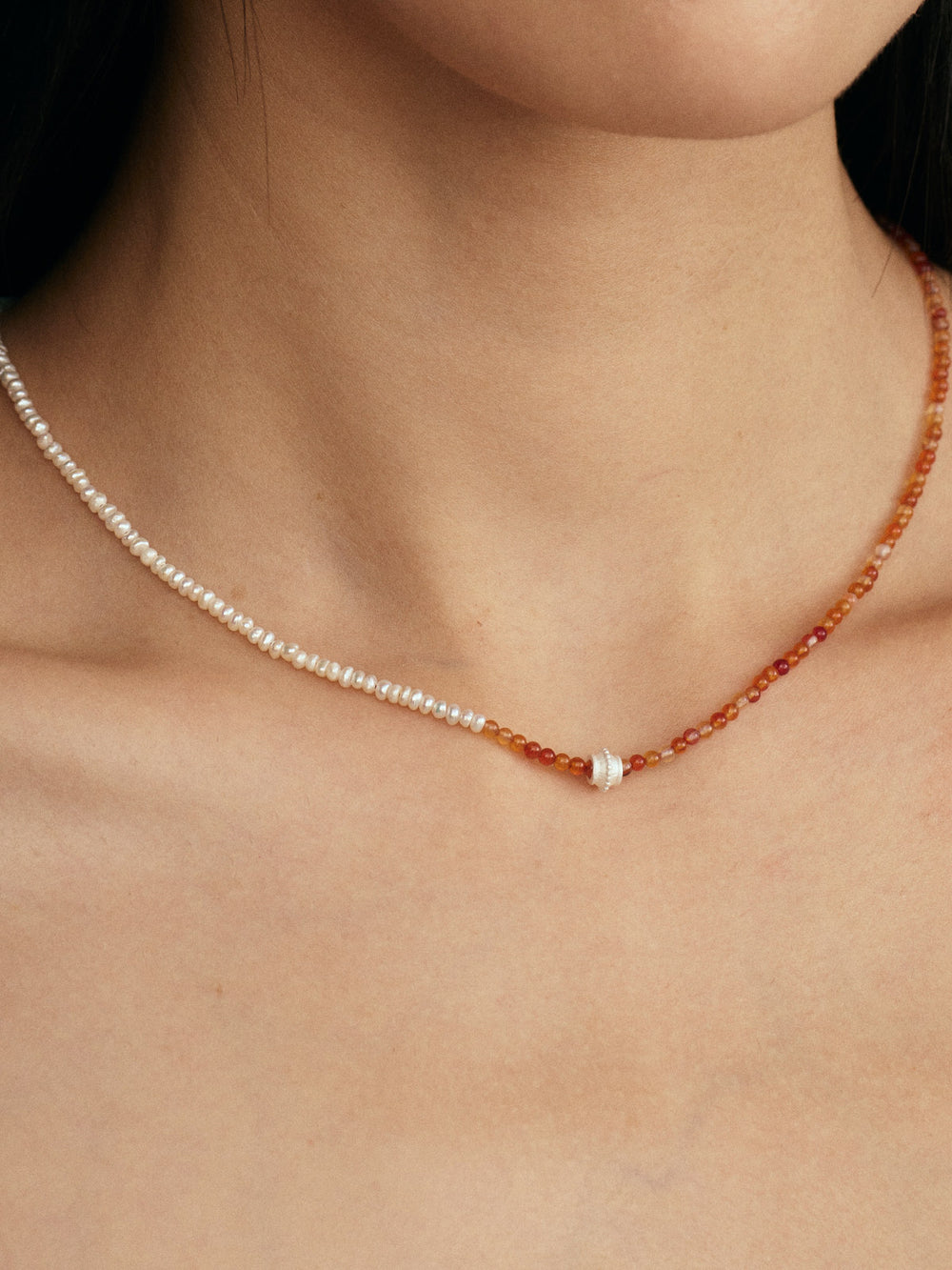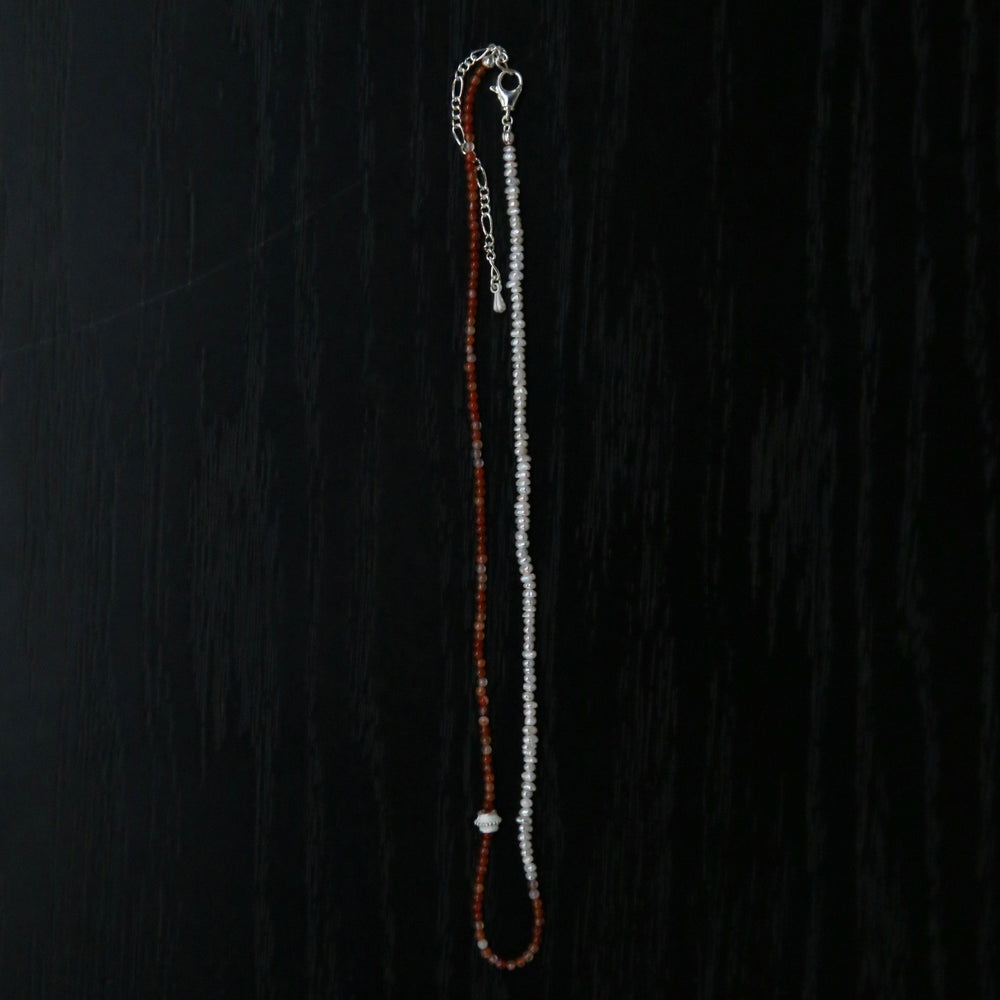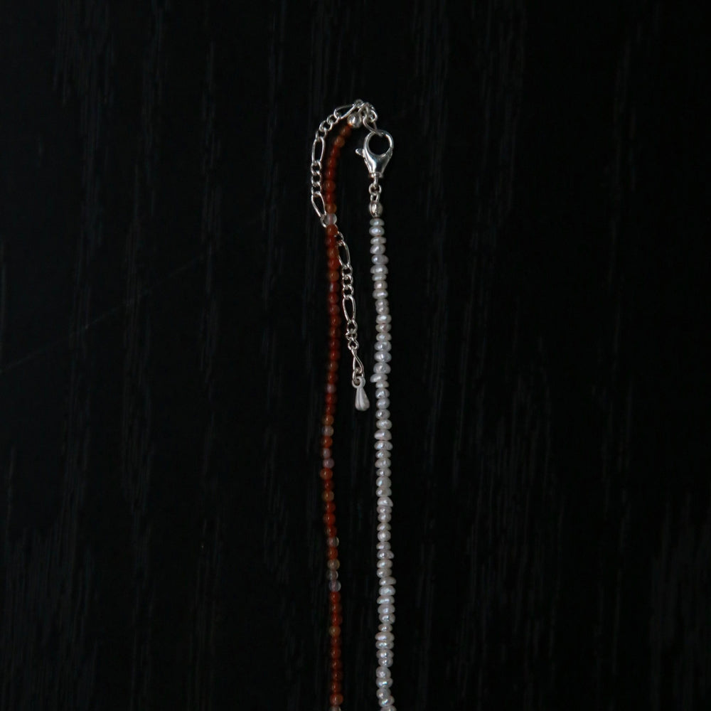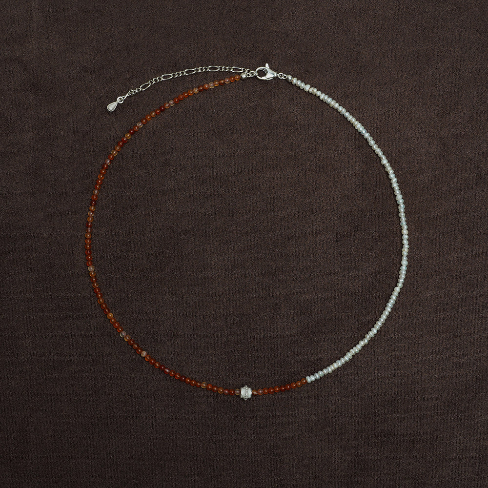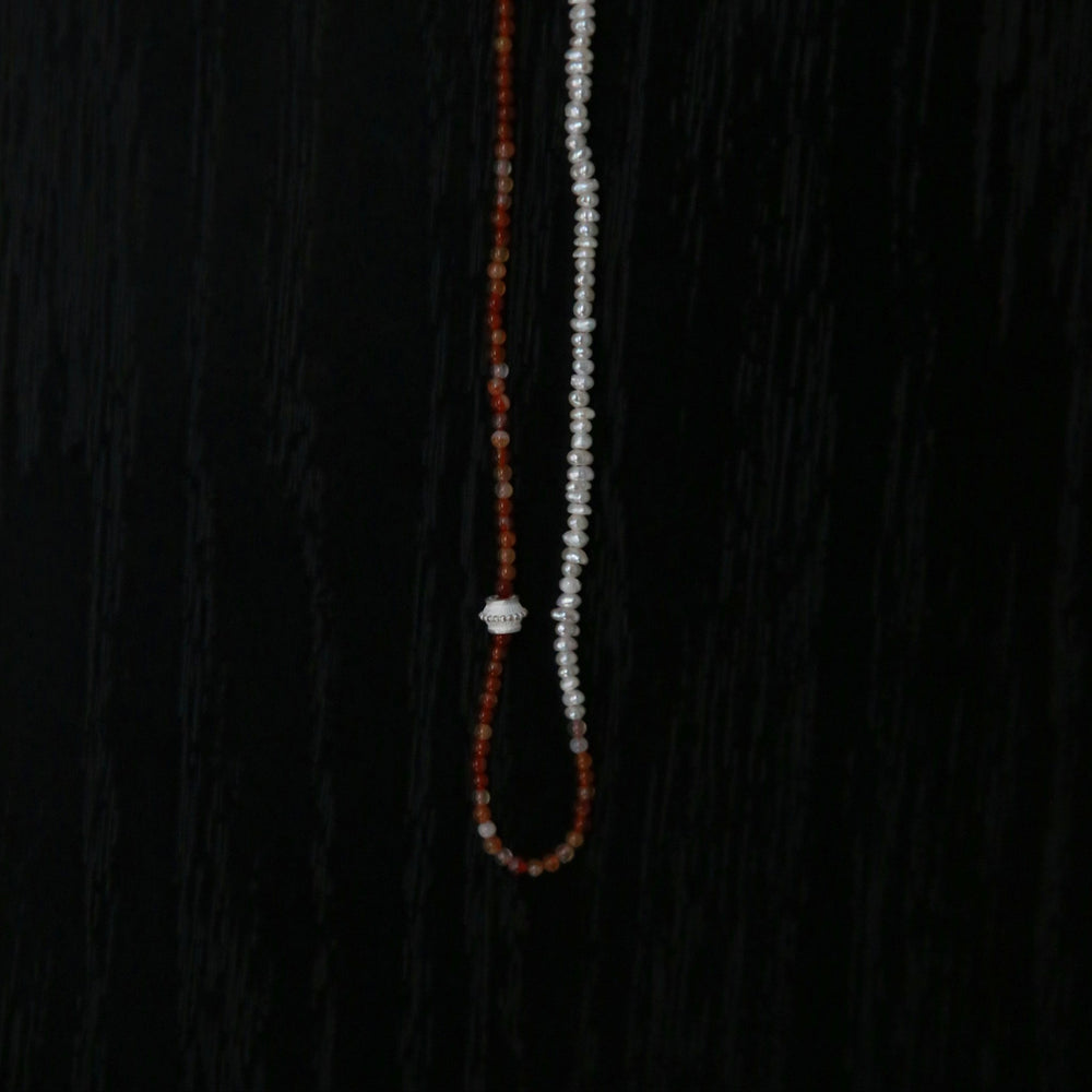 OLIO E ACETO New Year Collection Red Agate and Pearl Patchwork Necklace OLIO-OA13N42-JHZZBY Orange-red/Pearl White/Silver