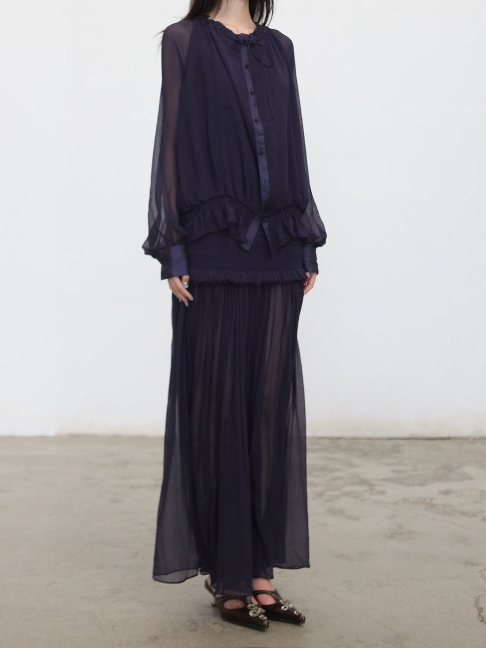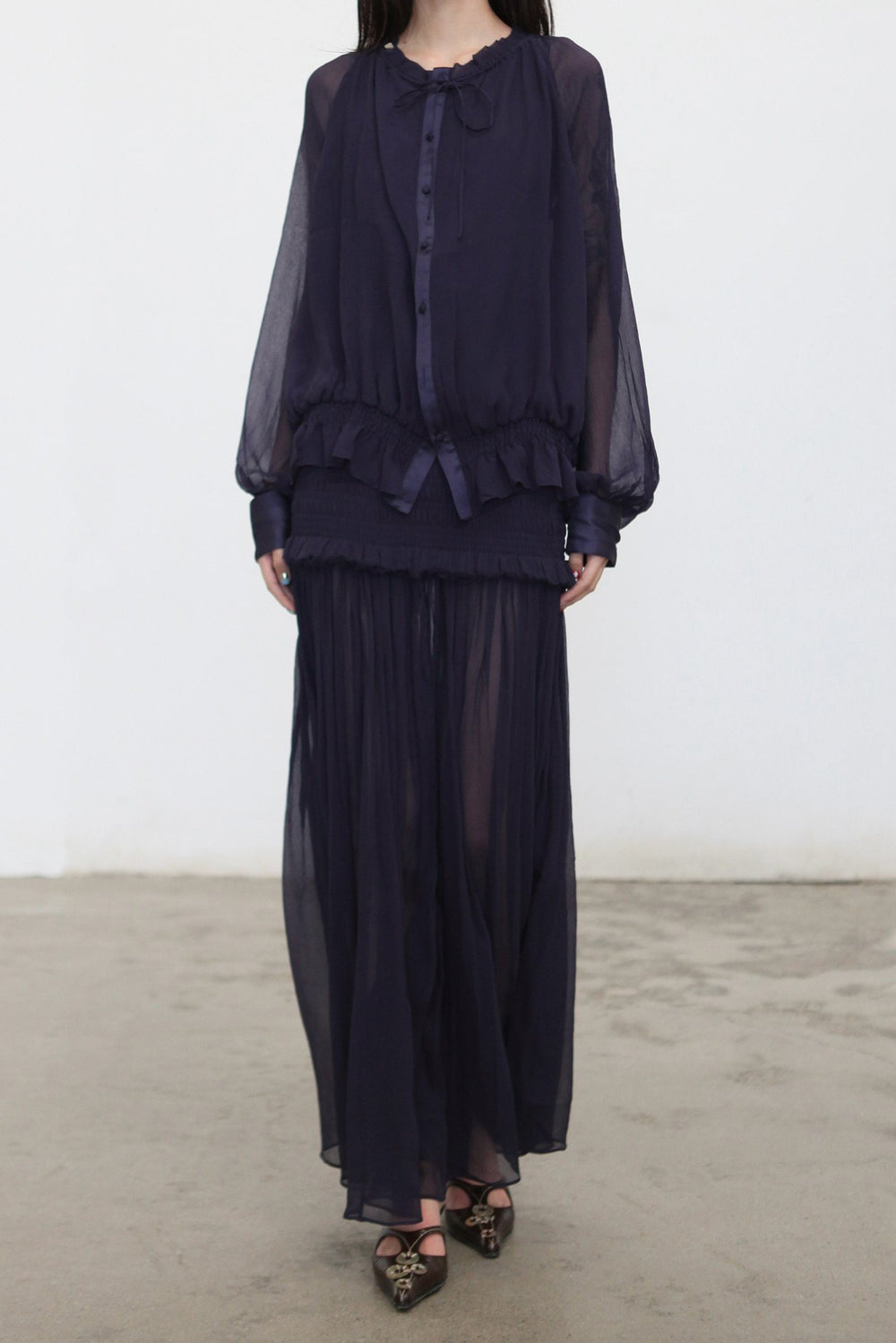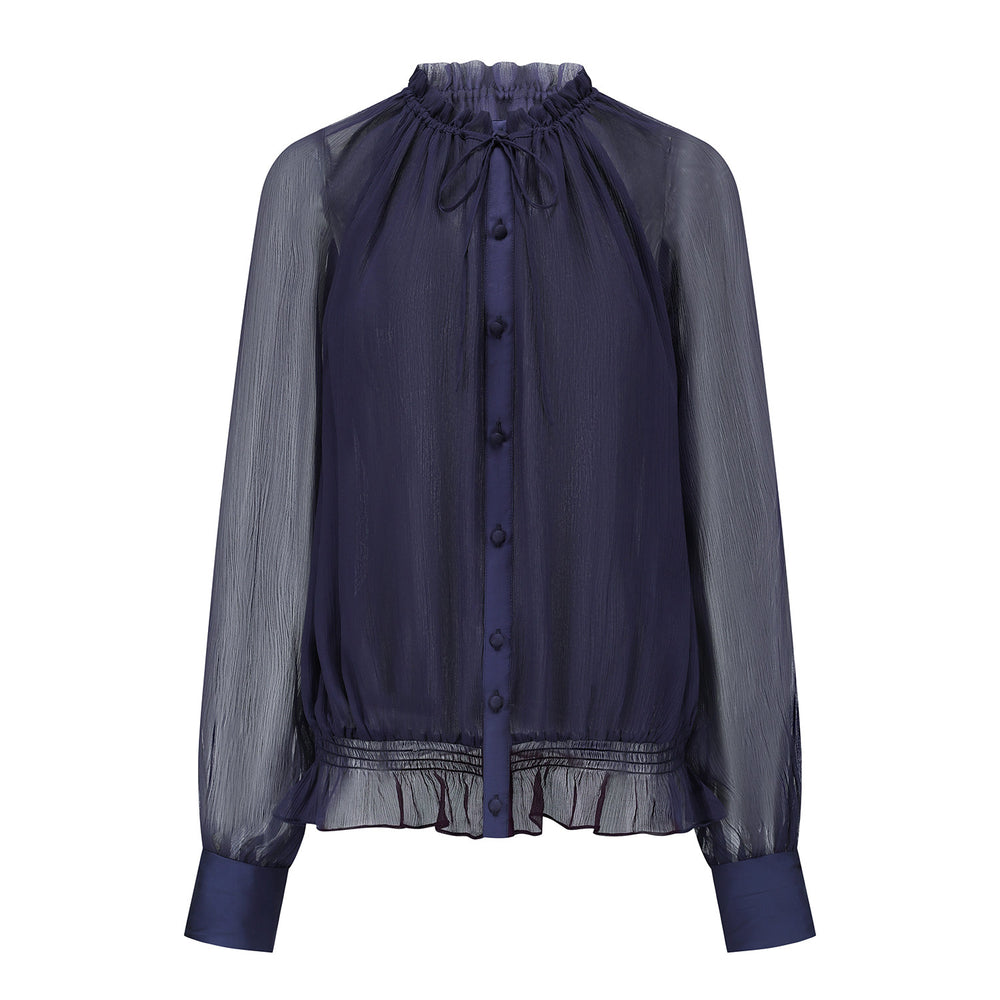 OUDE WAAG 26RS Ripple Silk Shirt OW-OW-26RS-ST03-ML BU690 Dark Blue