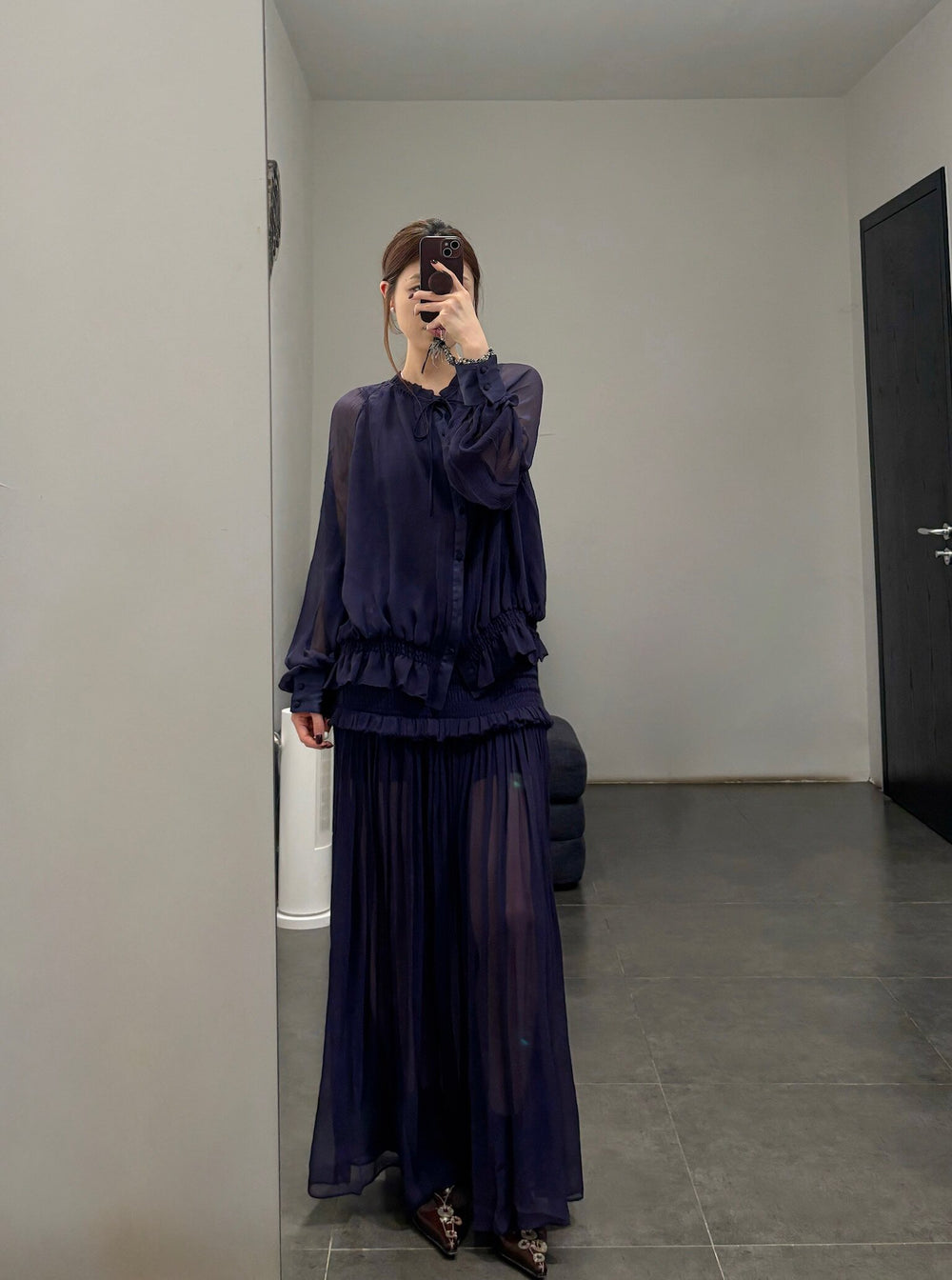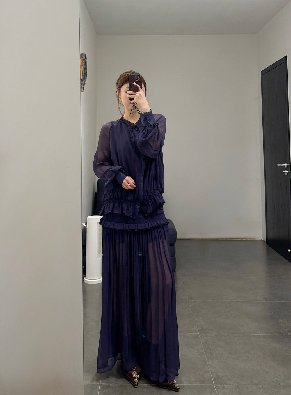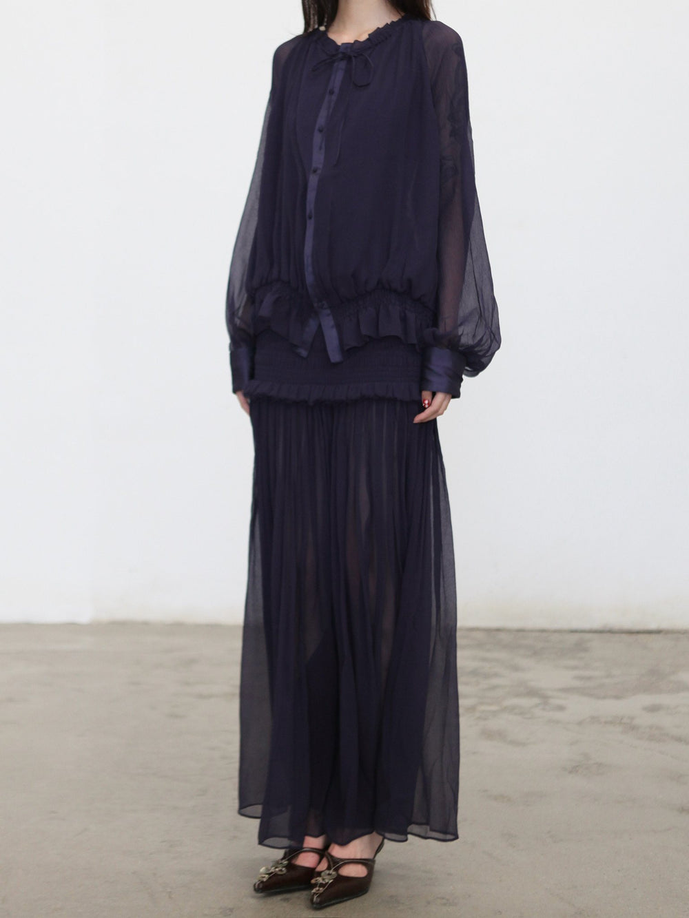 OUDE WAAG 26RS Ripple Silk Shirt OW-OW-26RS-ST03-ML BU690 Dark Blue
