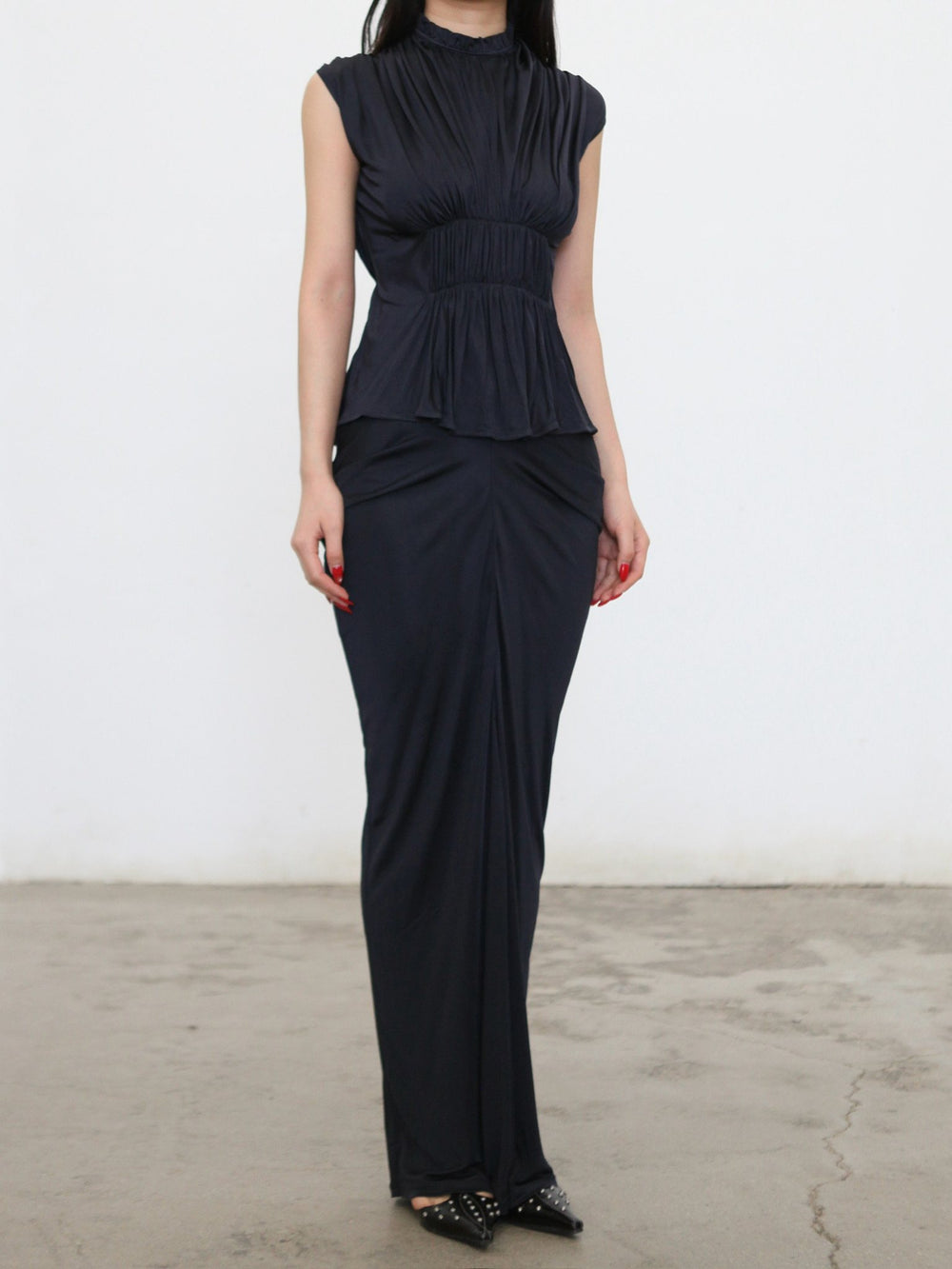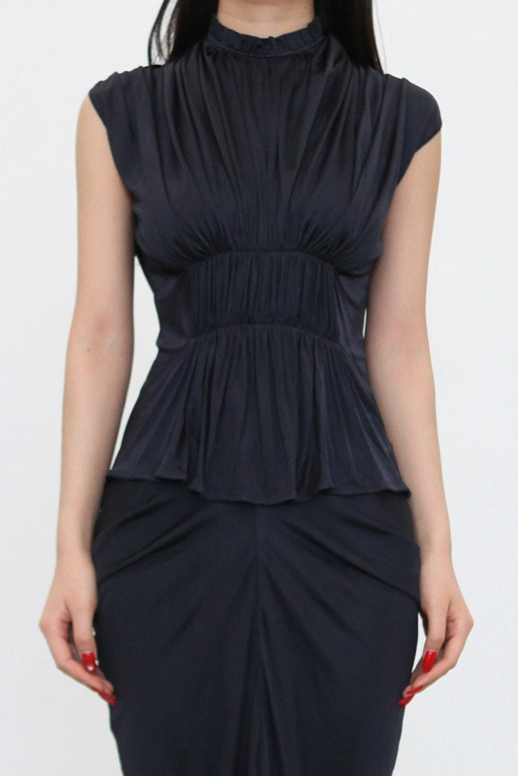 OUDE WAAG Spring/Summer 2026 Ruffled Draped Top/Vest OW-OW-26SS-TP23-MO BU690 INK