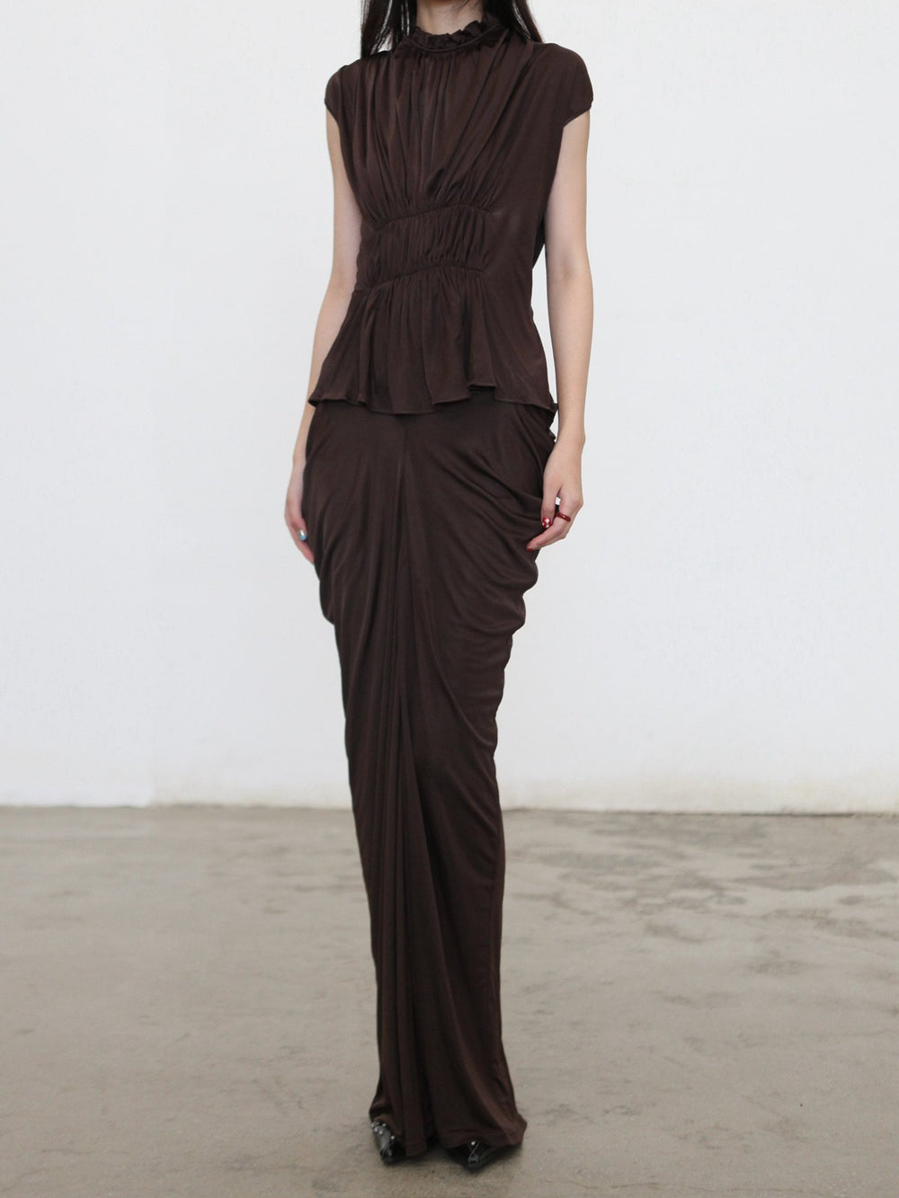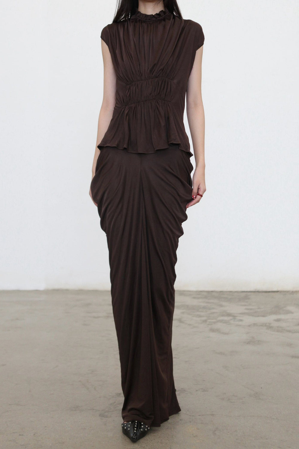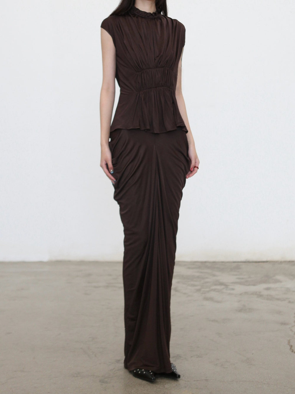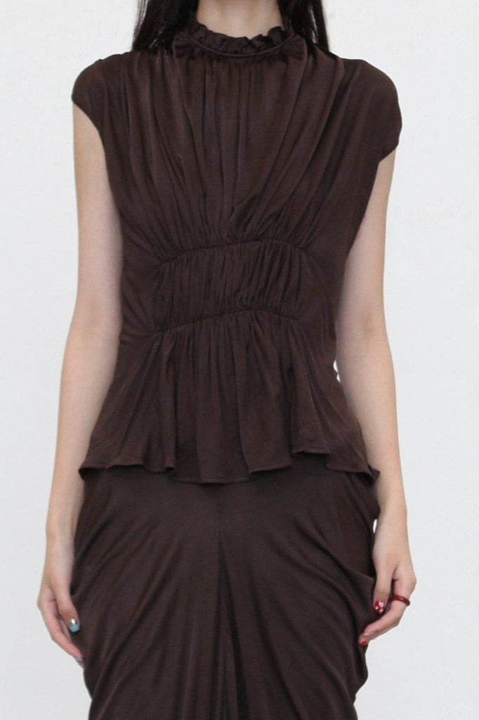 OUDE WAAG Spring/Summer 2026 Ruffled Draped Vest Top OW-OW-26SS-TP23-KF BR440 COFFEE