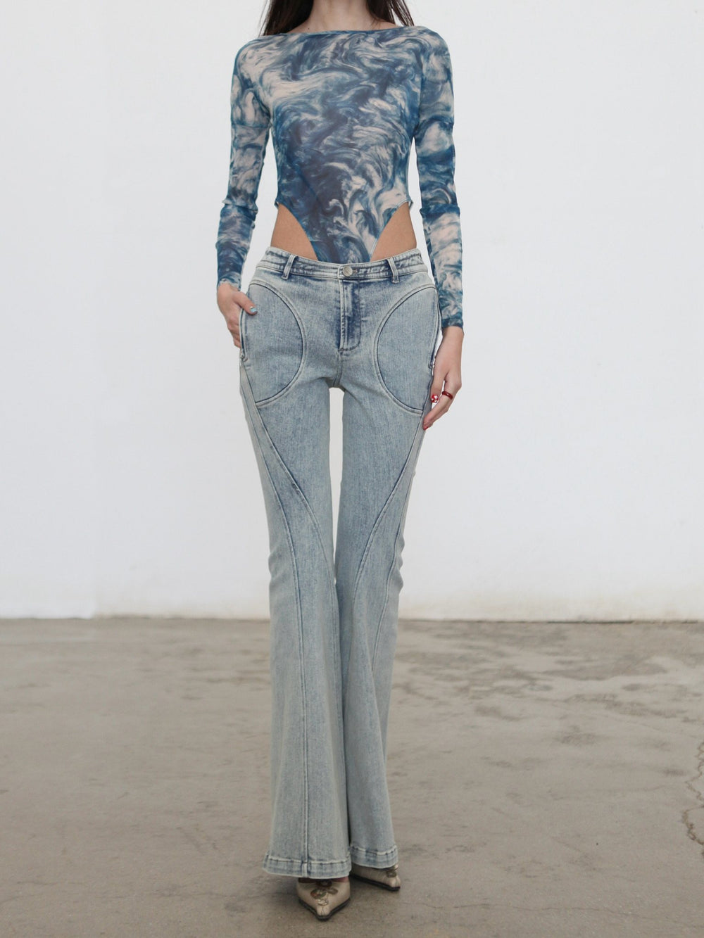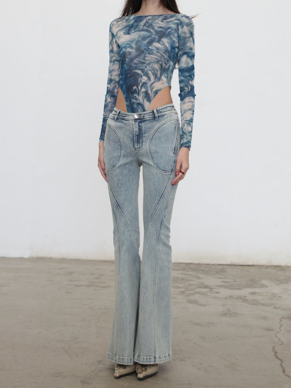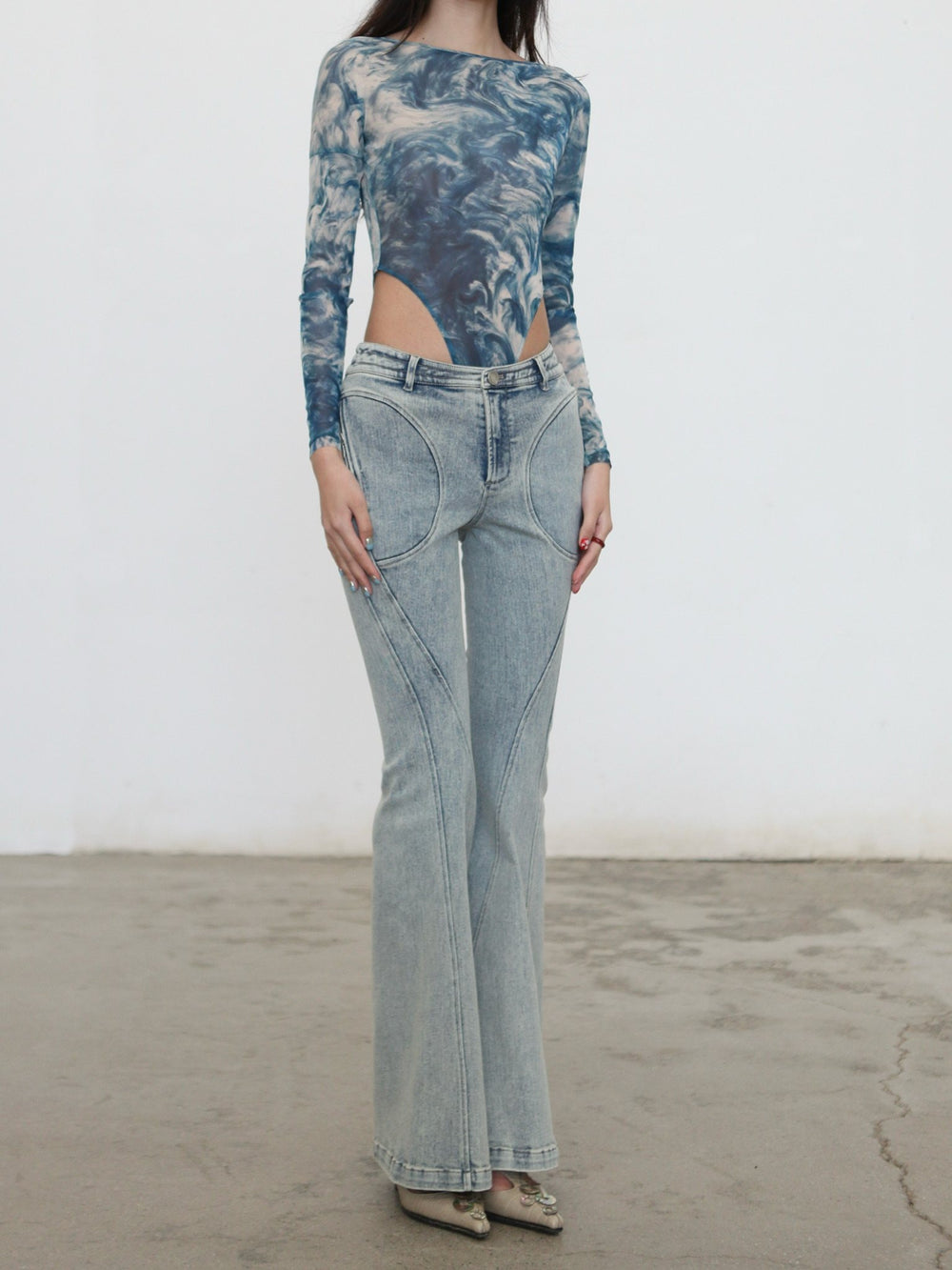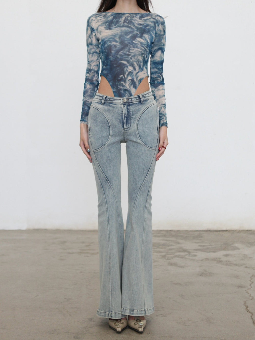 OUDE WAAG Spring/Summer 2026 Washed Stretch Flare Jeans OW-OW-26SS-PT07-LB BU061 BLUE/WHITE