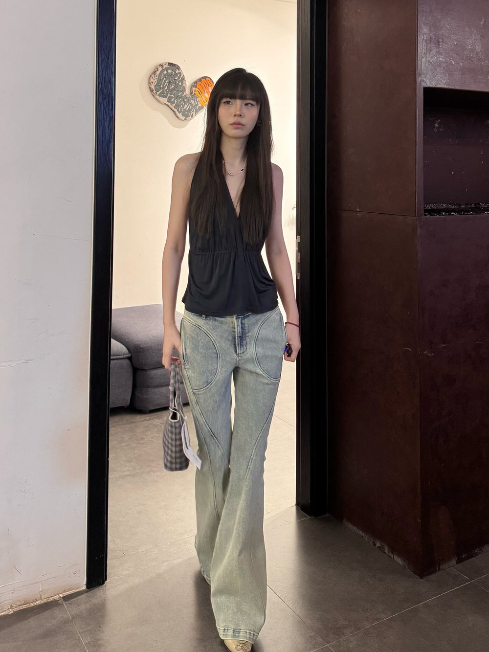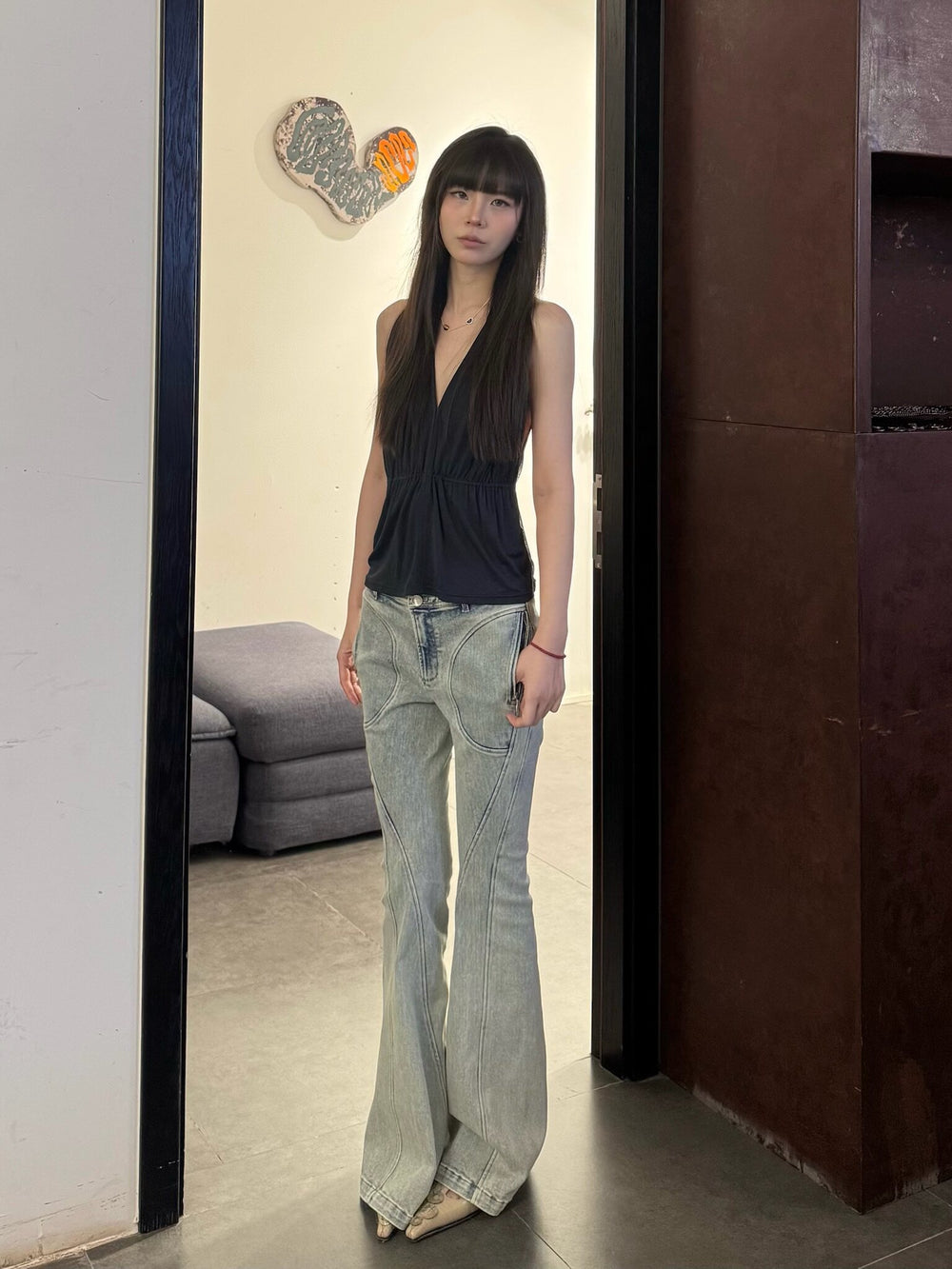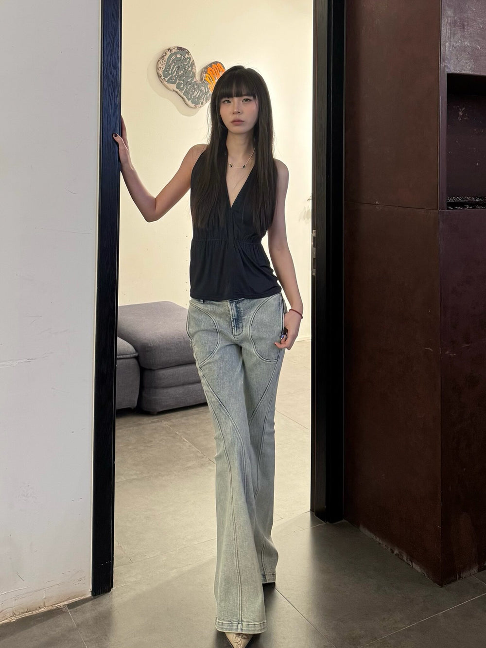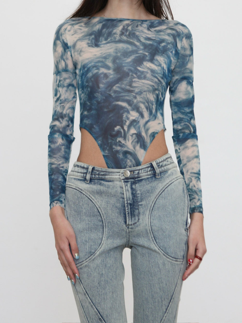 OUDE WAAG Spring/Summer 2026 Washed Stretch Flare Jeans OW-OW-26SS-PT07-LB BU061 BLUE/WHITE