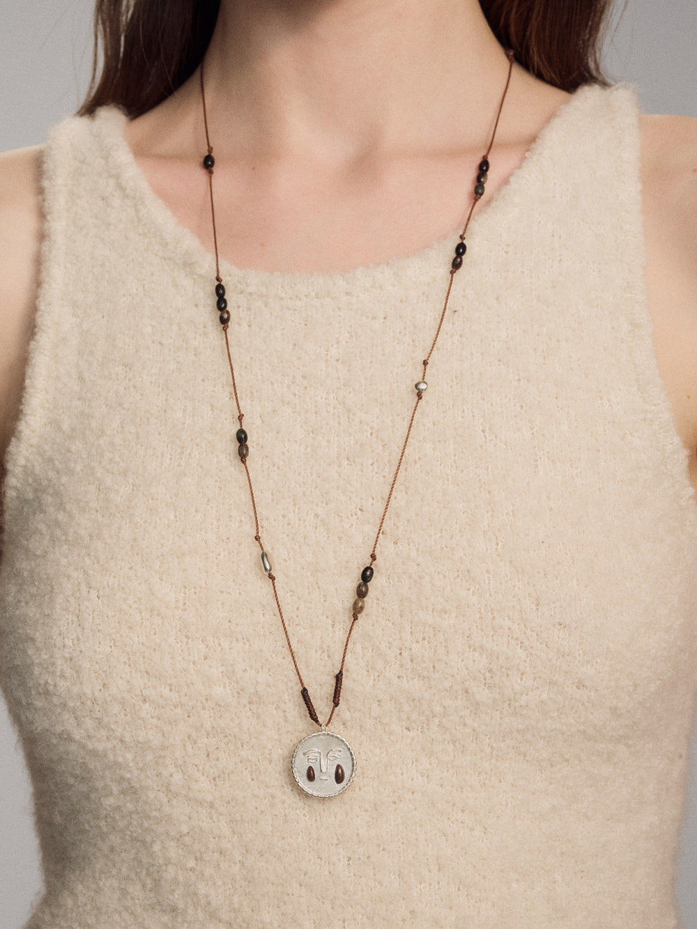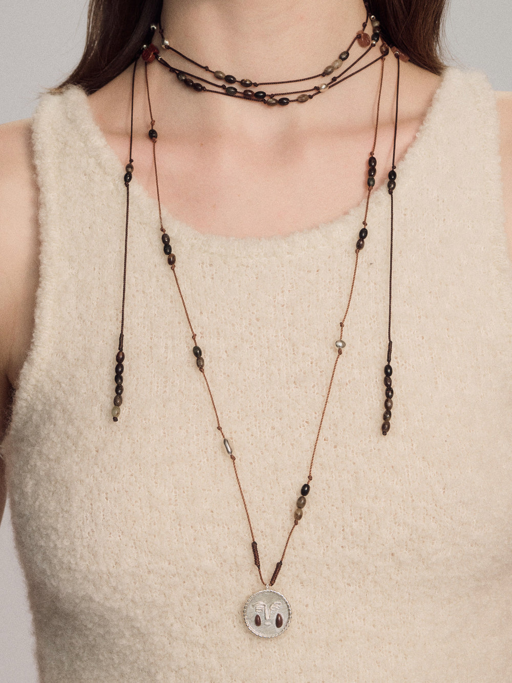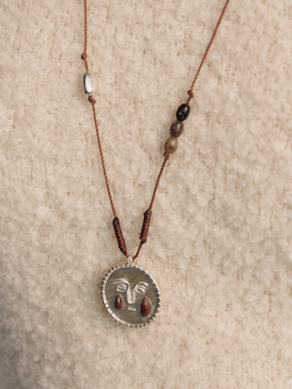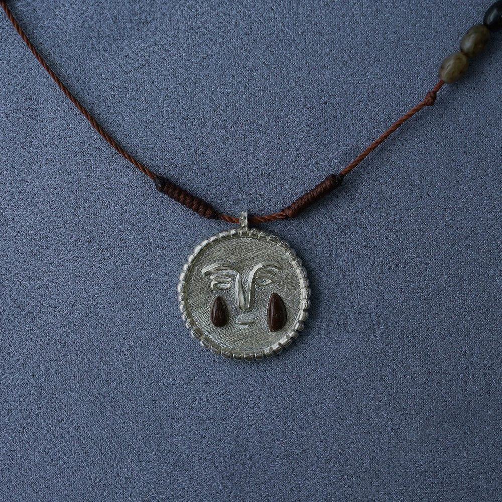 SALE E PEPE Sterling Silver Pebble Red Wine Teardrop Braided Long Necklace SEP-SP05N14-HHY Black/Red/Silver