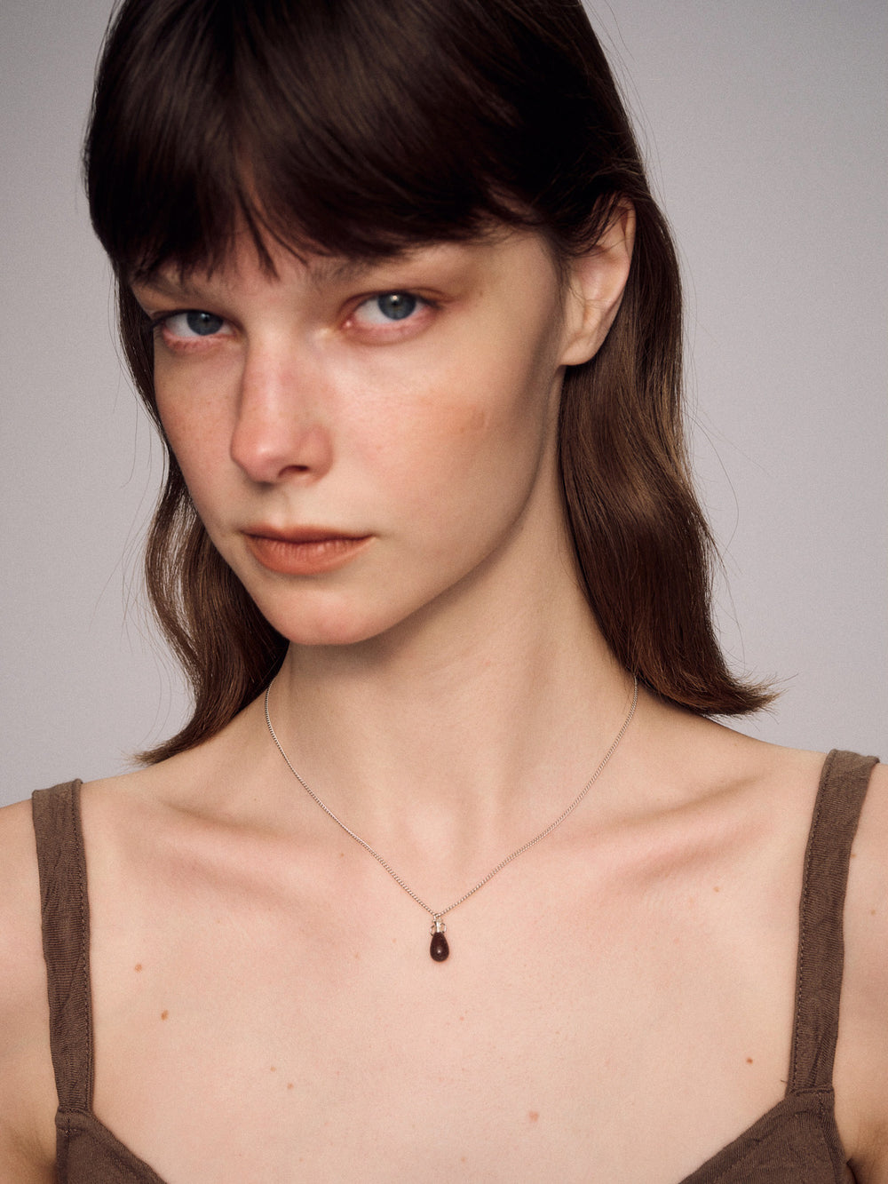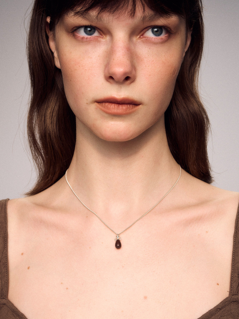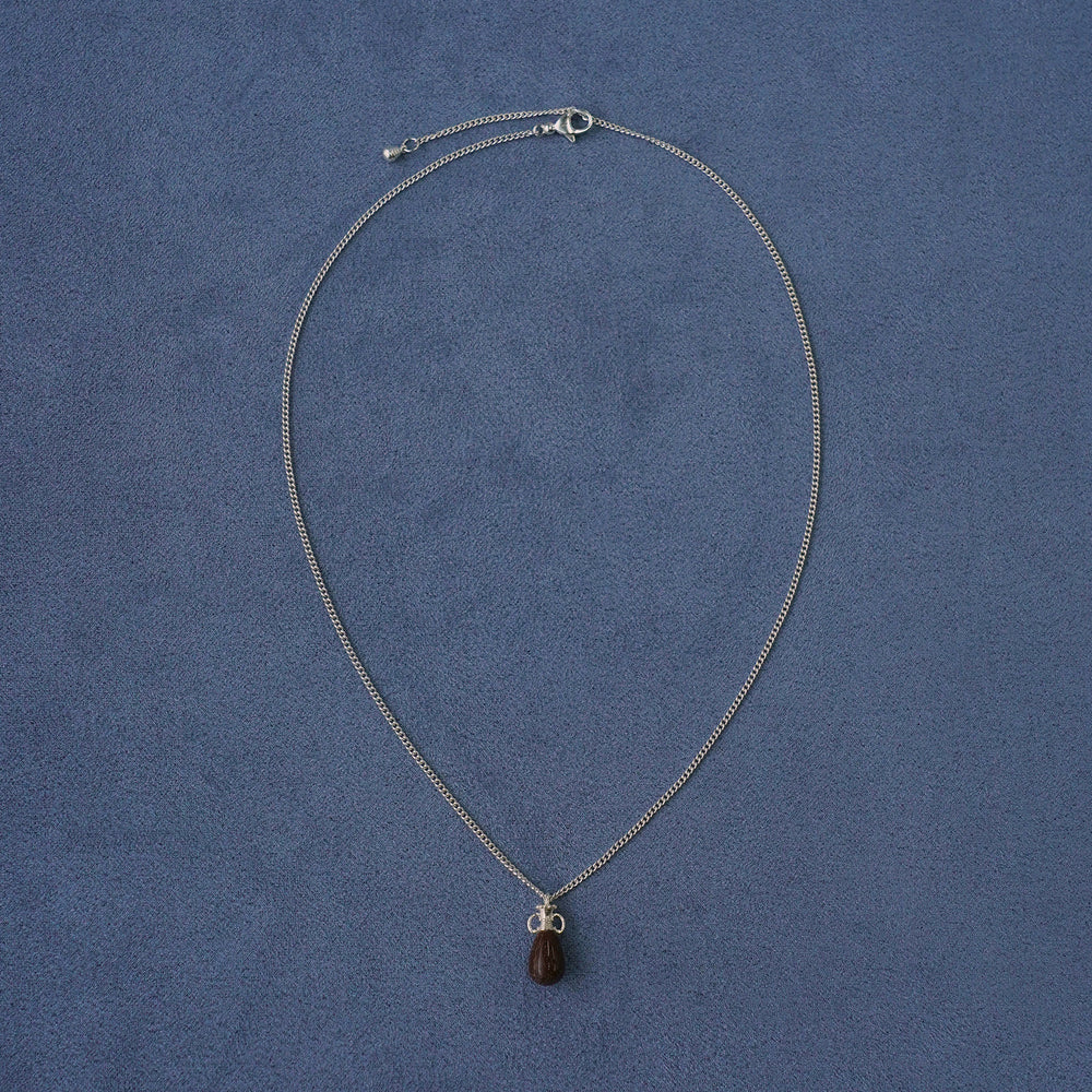 SALE E PEPE Sterling Silver Pebble Red Wine Teardrop Braided Rope Necklace SEP-SP05N23-YIN Silver