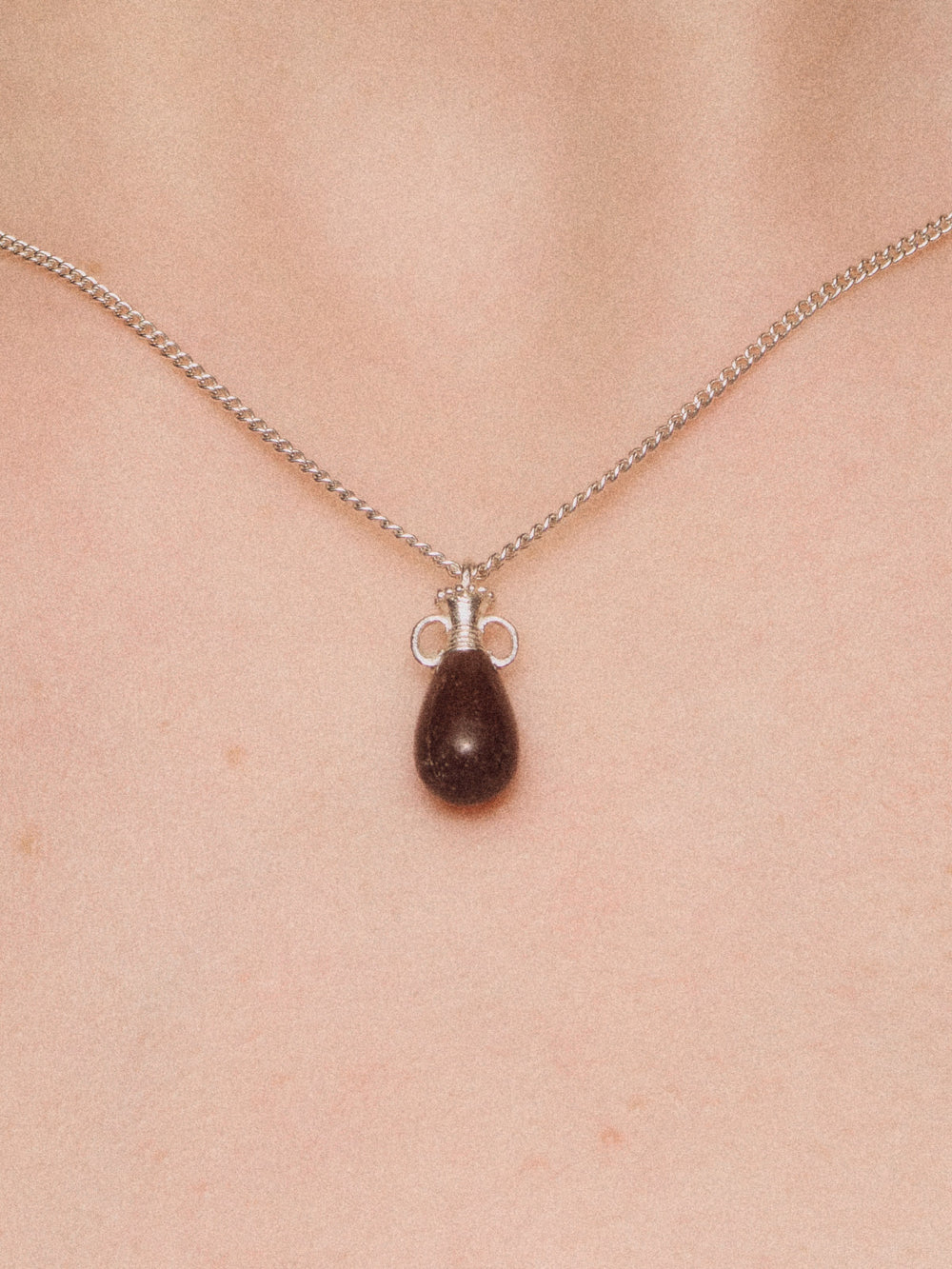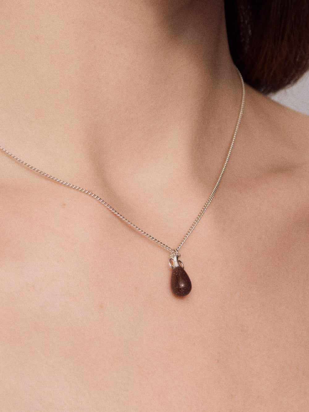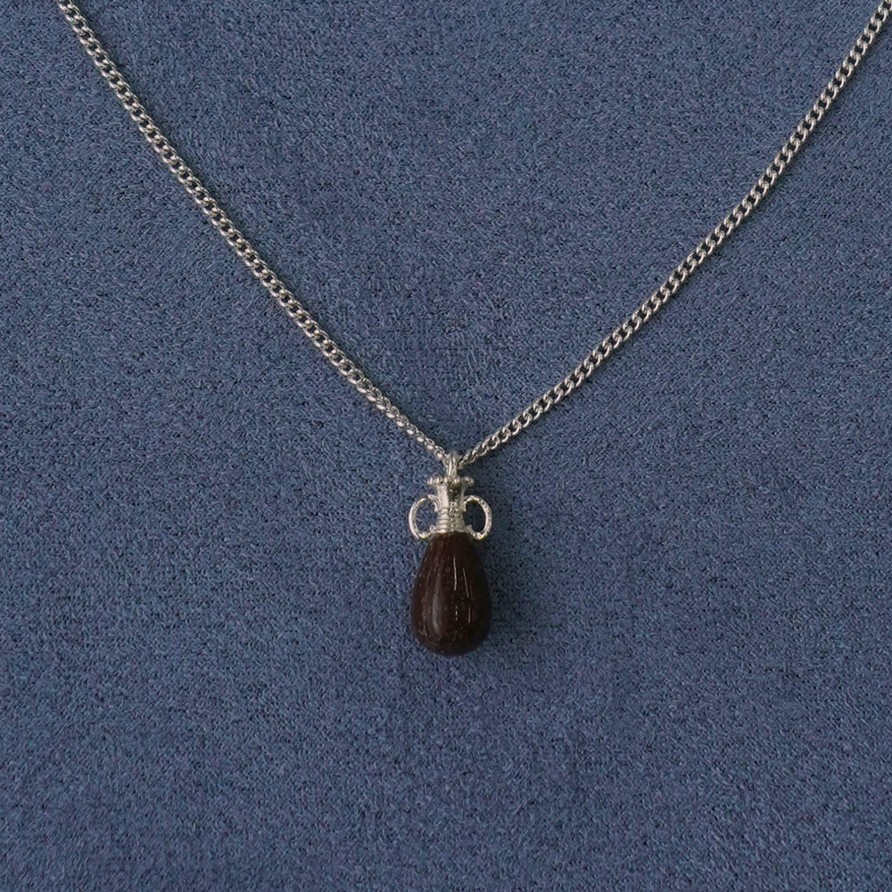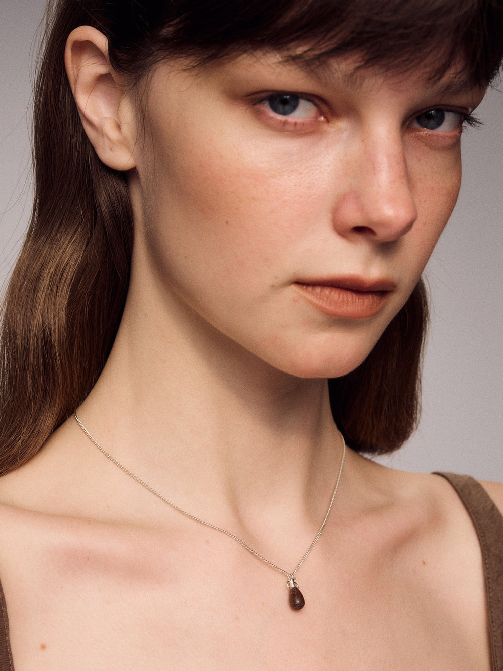 SALE E PEPE Sterling Silver Pebble Red Wine Teardrop Braided Rope Necklace SEP-SP05N23-YIN Silver