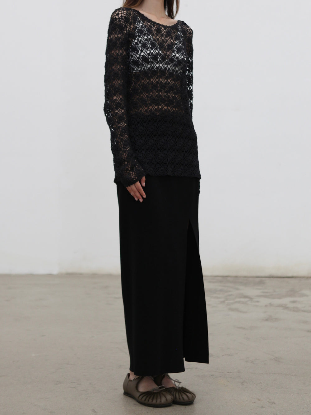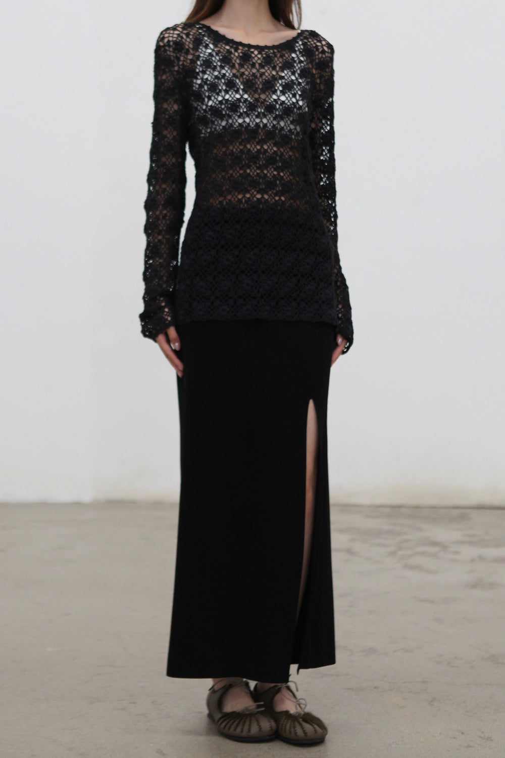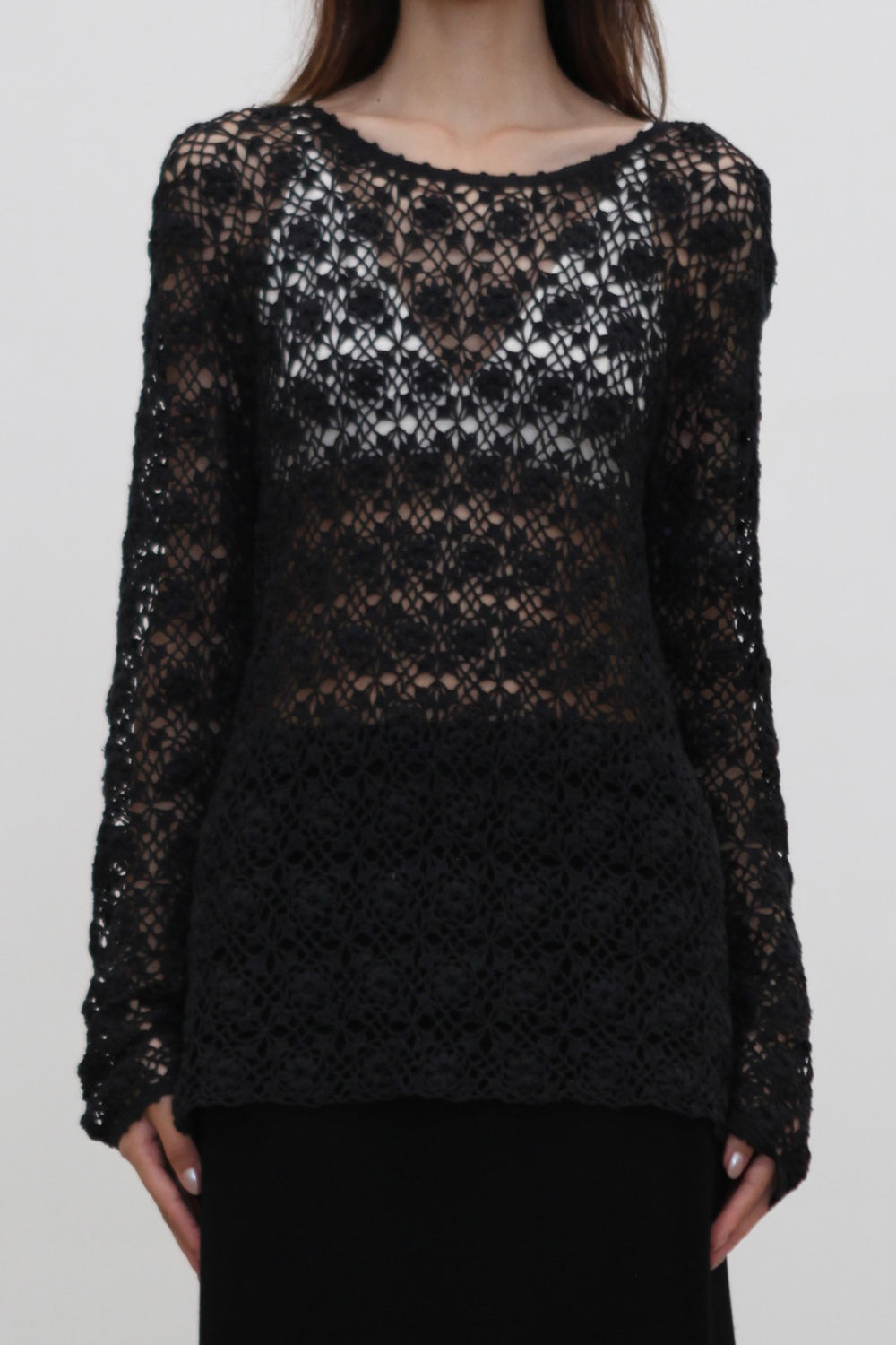 SWAYING 25 Autumn and Winter Crochet Silk Cotton Top SW-SW25AW1T16C4S2-HEILAN Black