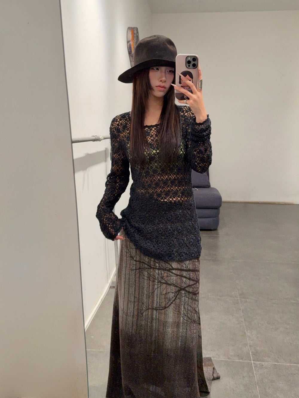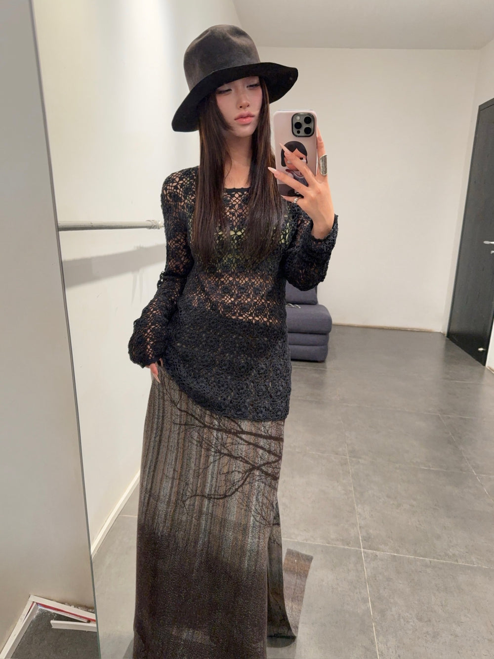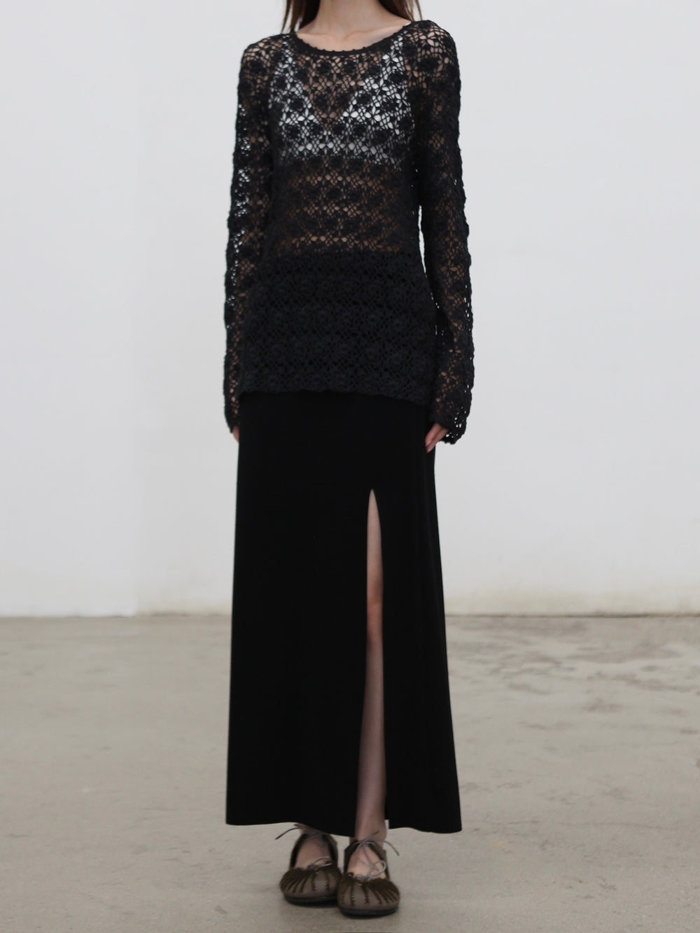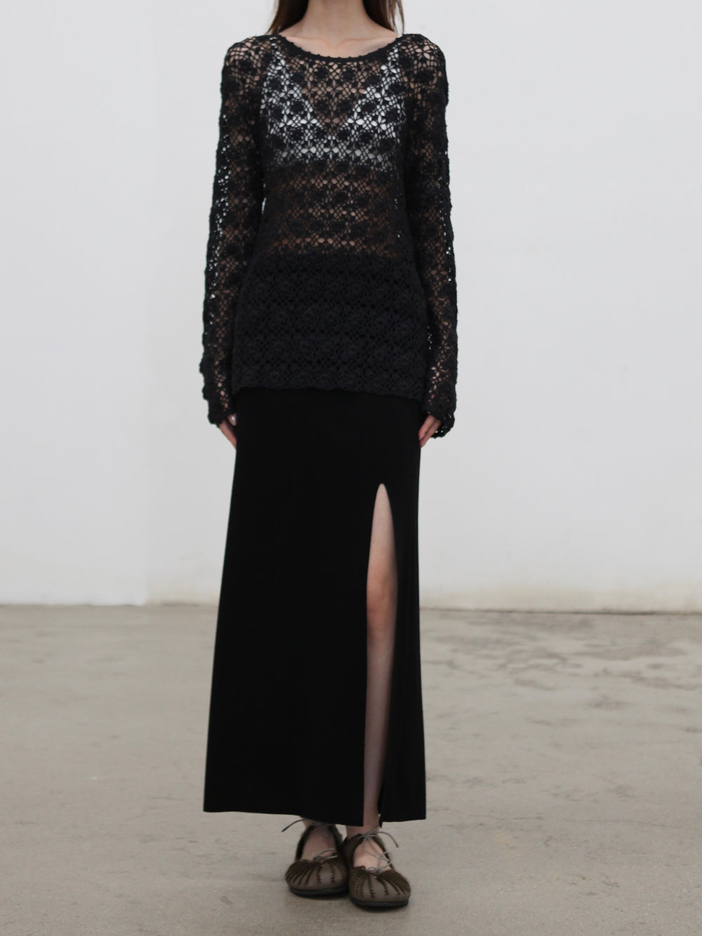 SWAYING 25 Autumn and Winter Crochet Silk Cotton Top SW-SW25AW1T16C4S2-HEILAN Black
