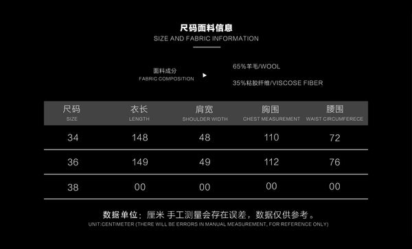 腰部冷杉 (CM) | 71 | 76 | 81 | 86 | 91.5 | 96.5 | 101.5 |