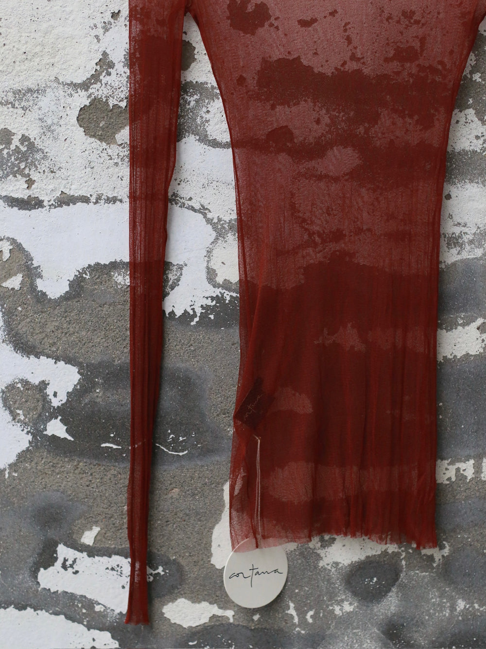 Cortana Classic Round Neck Tulle Top Collection, Spain, CTN-FW25-A0668-CRANBERRY