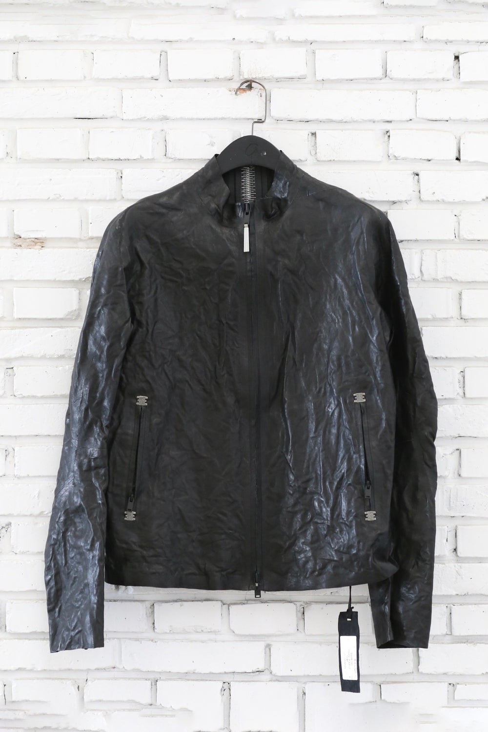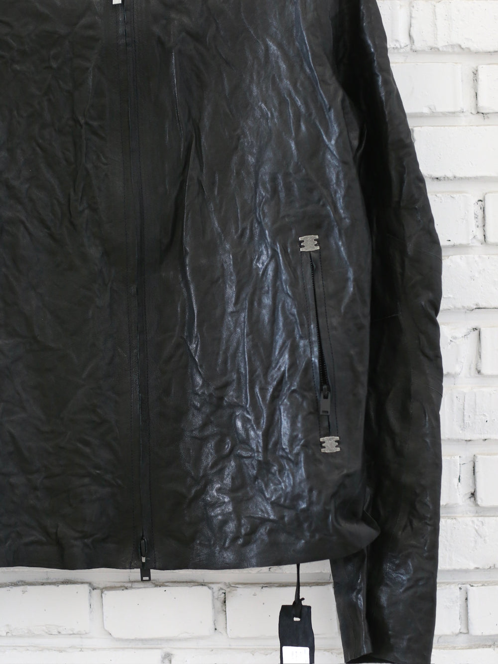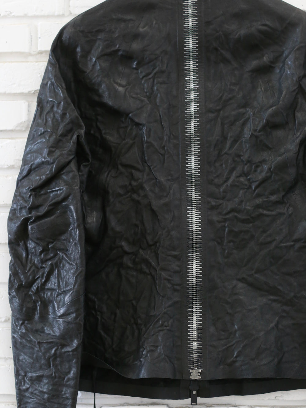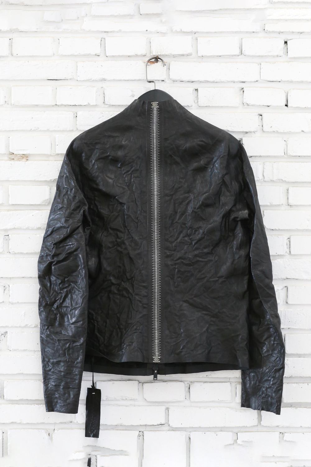 ISAAC Sellam Fall/Winter 2025 Lambskin Jacket with Back Ribbon Stand Collar, France. IS-SEAMLESS-CRASSE POUILLE H26-NOIR