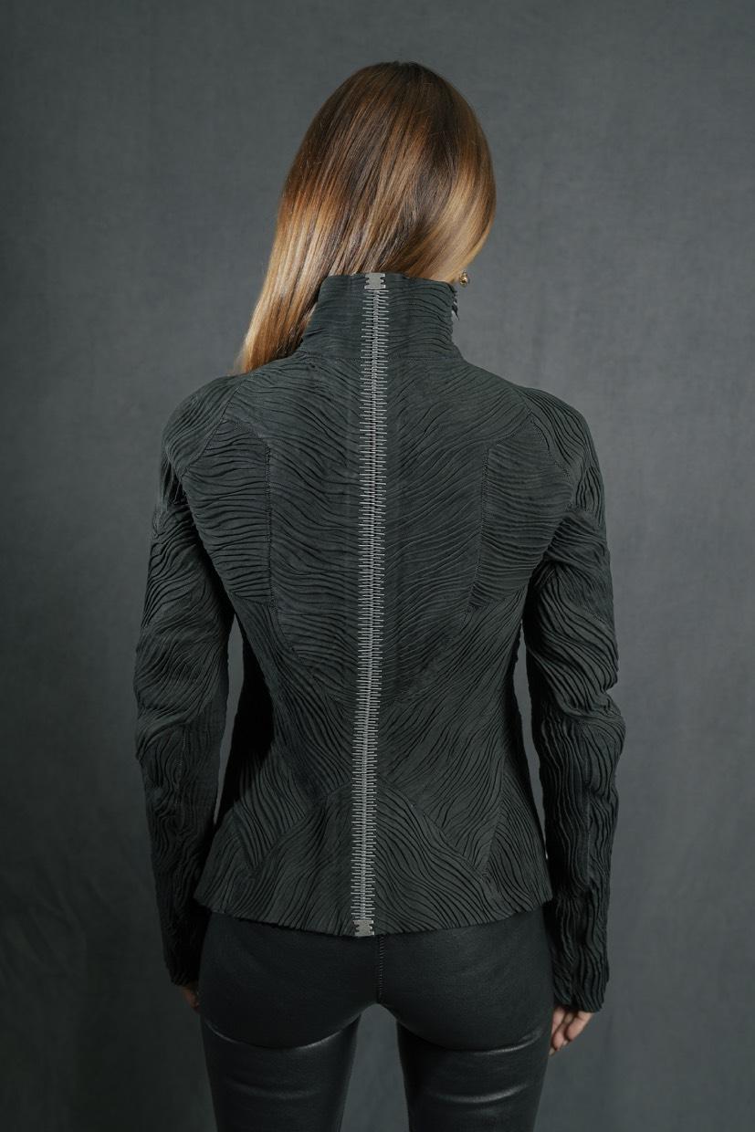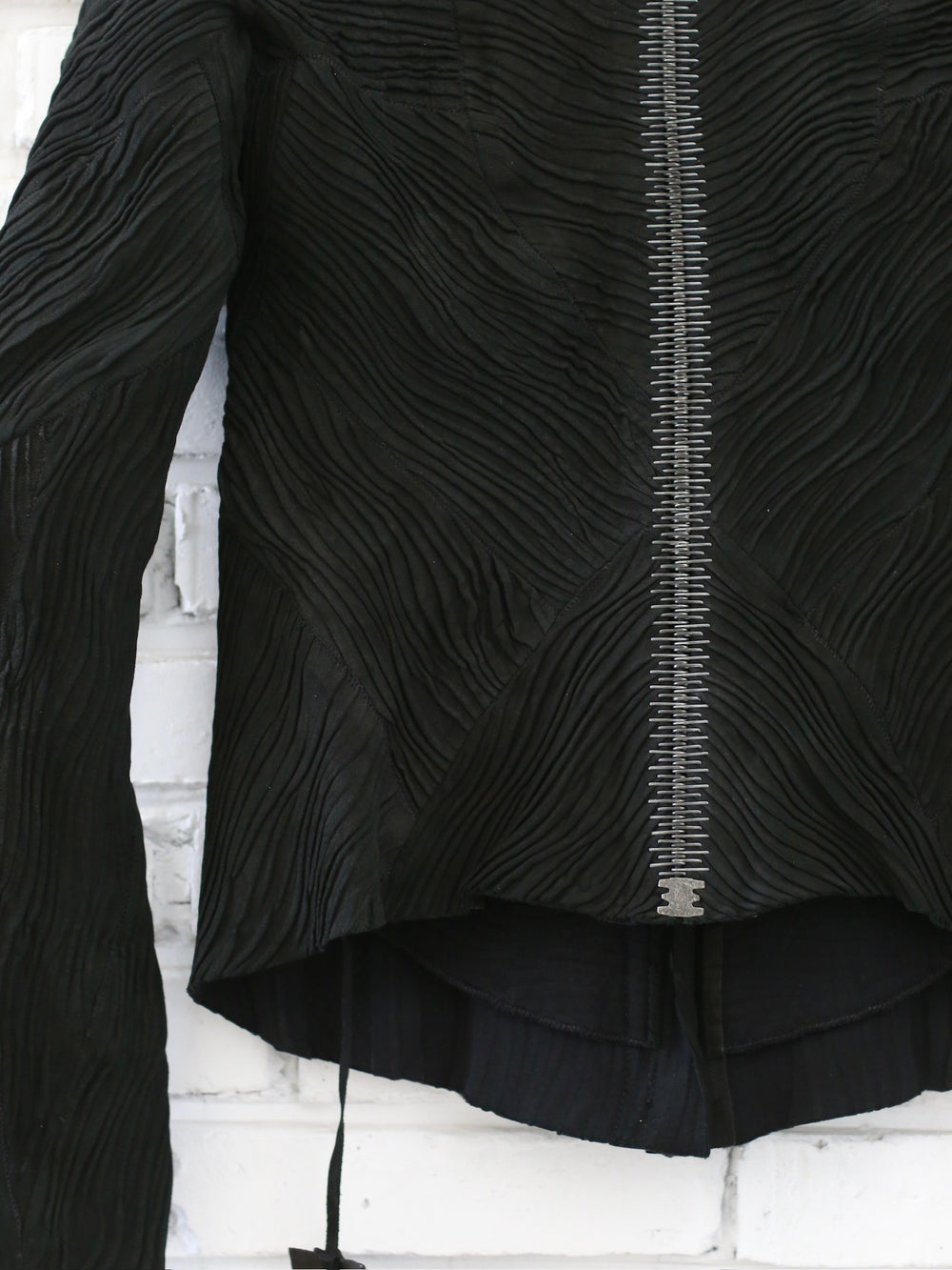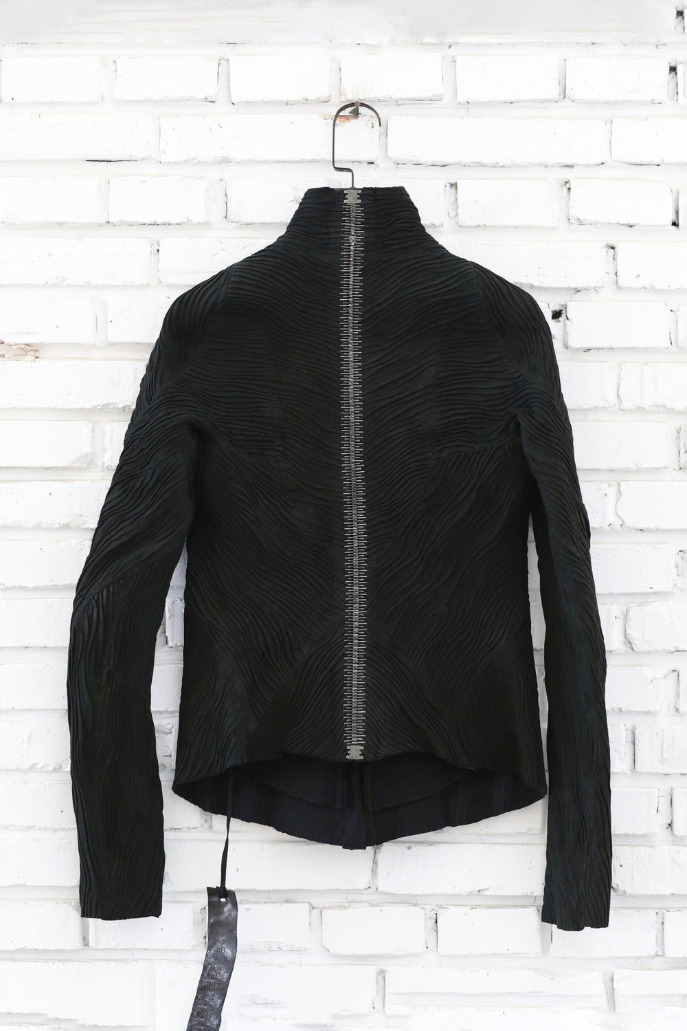 ISAAC Sellam Fall/Winter 2025 Sculptural Zipper Jacket, Lambskin, France. IS-ECORCHÉE-MAREE BASSE H26-NOIR
