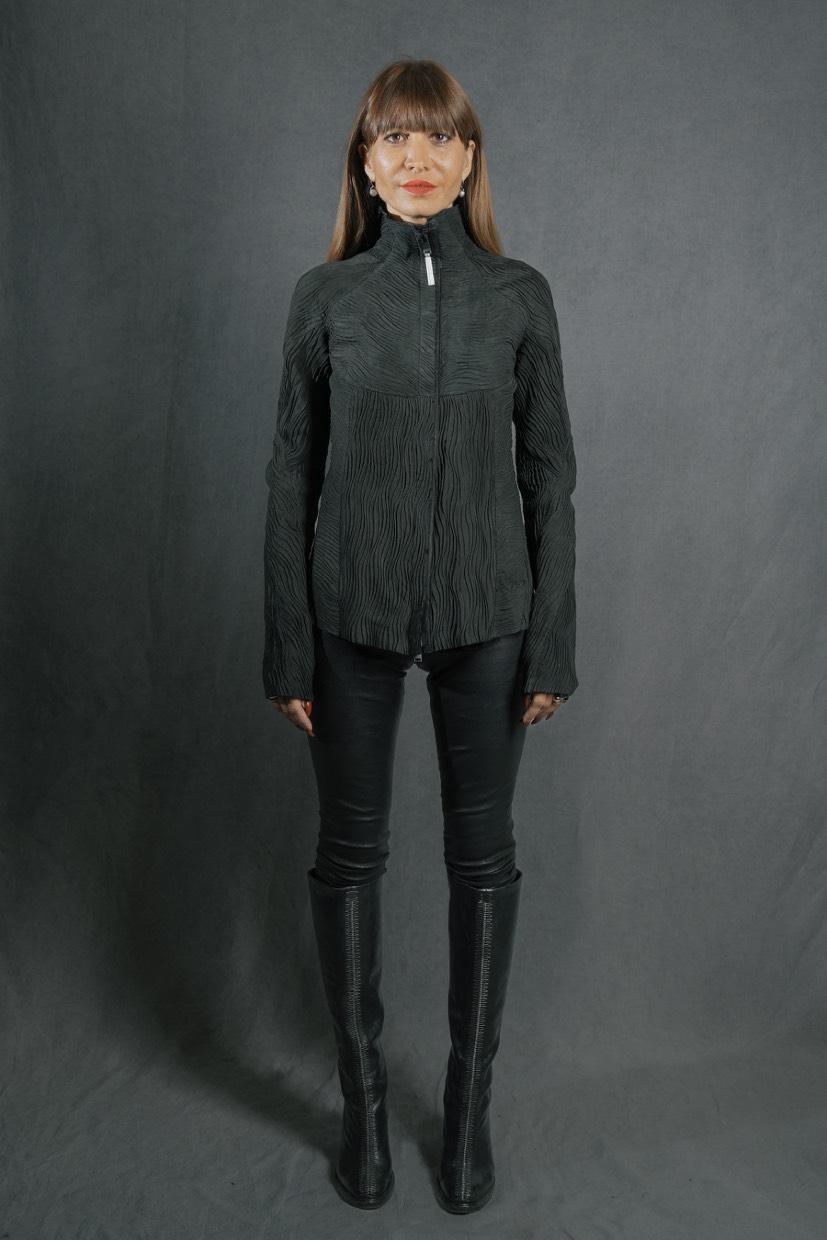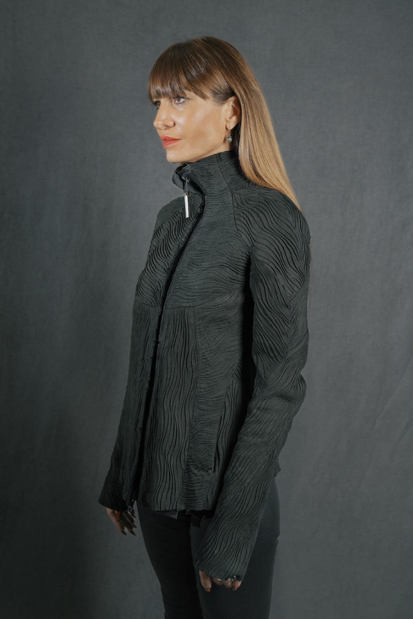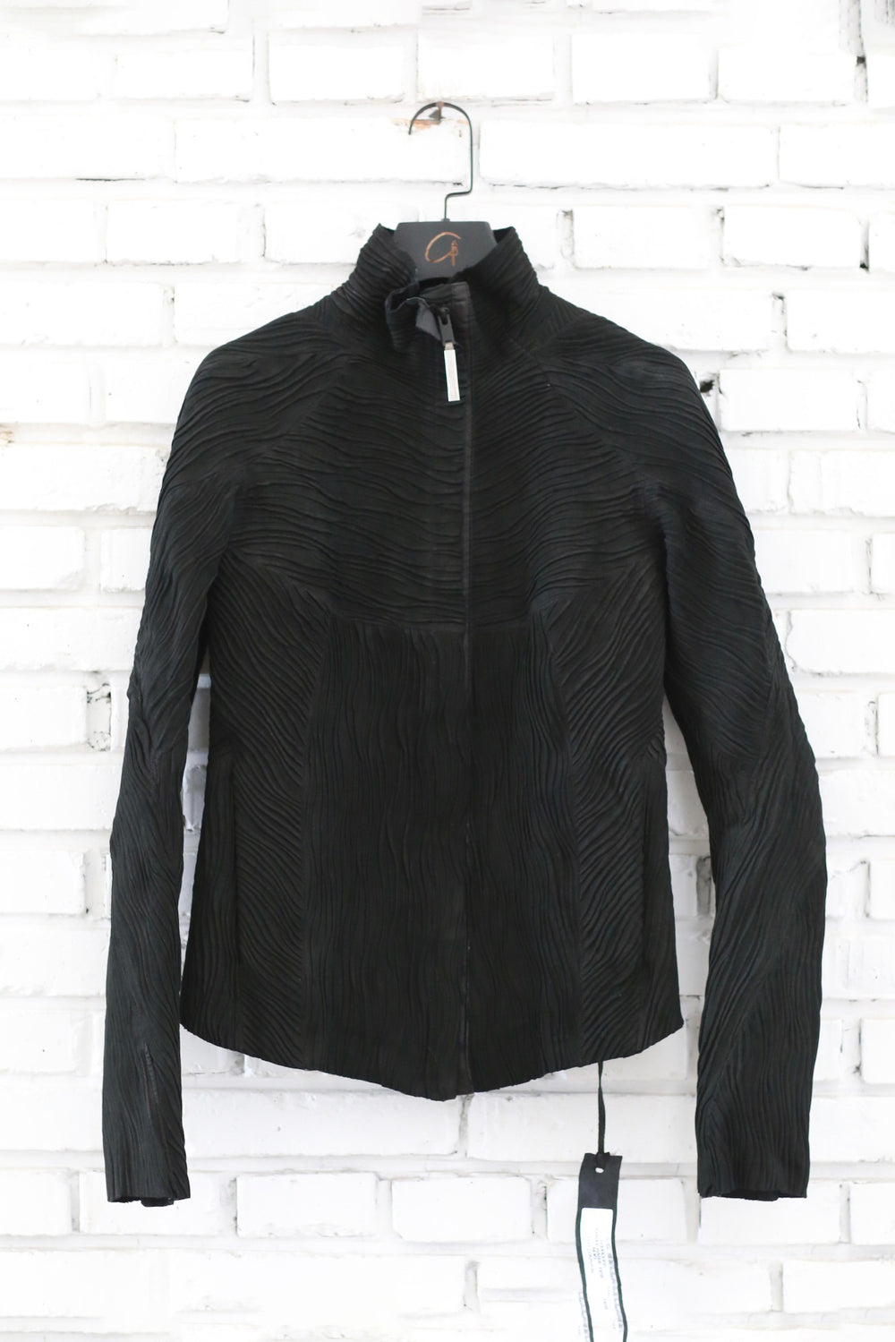 ISAAC Sellam Fall/Winter 2025 Sculptural Zipper Jacket, Lambskin, France. IS-ECORCHÉE-MAREE BASSE H26-NOIR