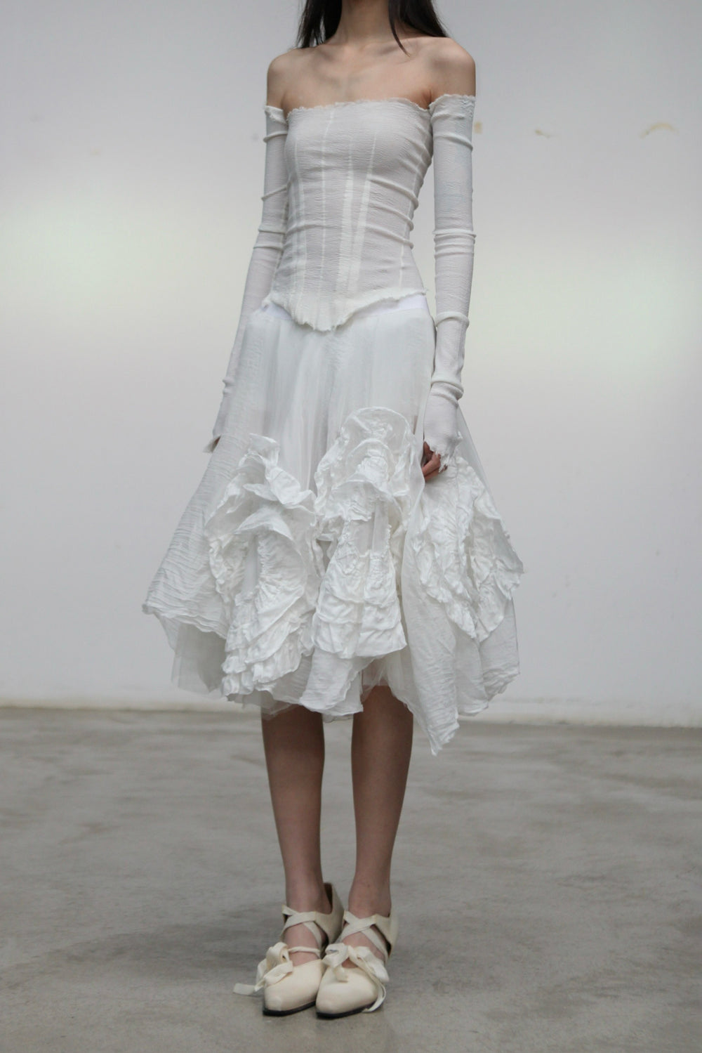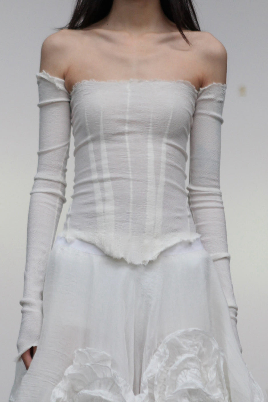 Marc Le Bihan 26916 Strapless Shoulder Stretch Base Layer Bustier T-Shirt, French Handmade, MLB-26916-25AW-ECRU