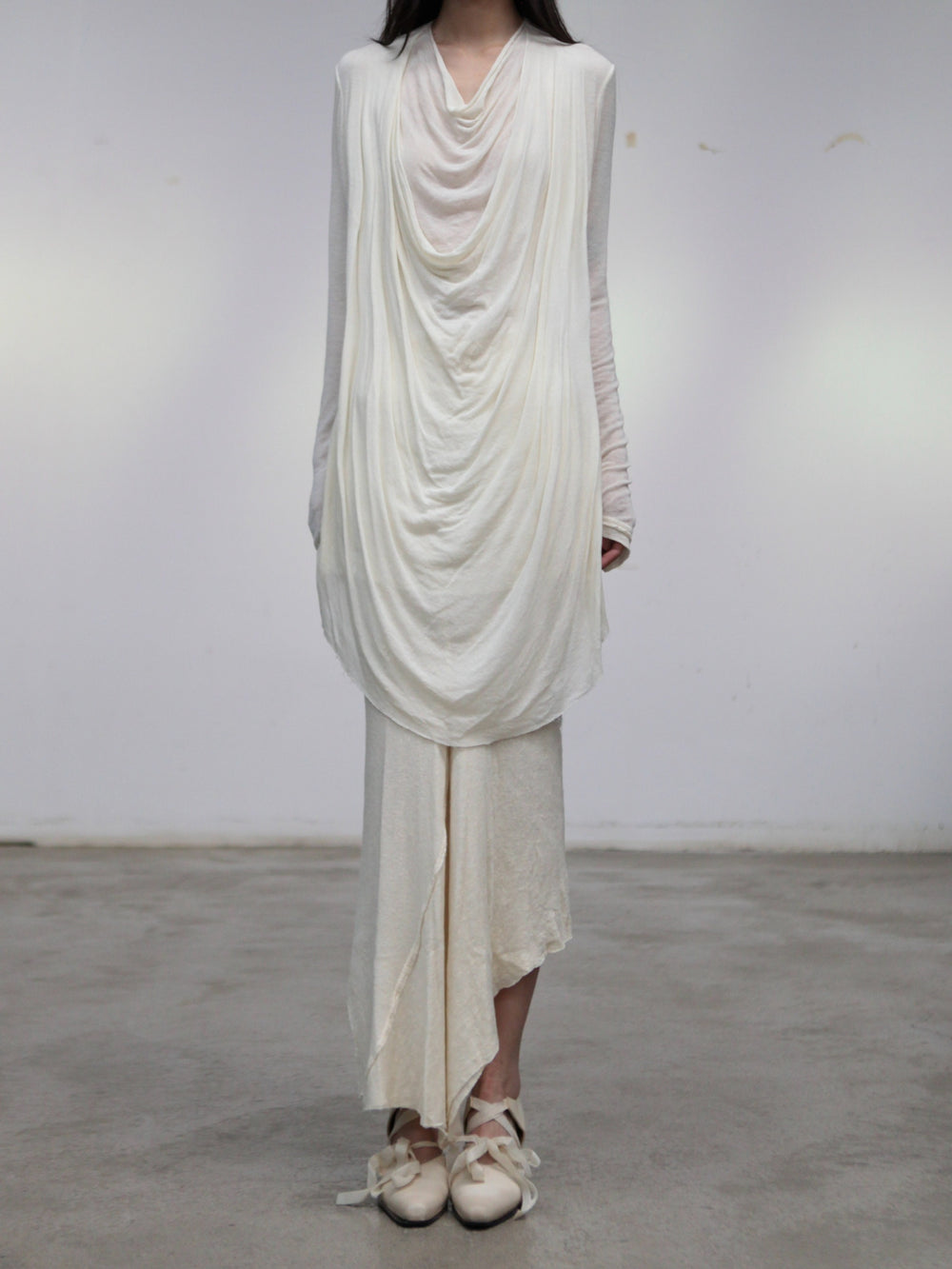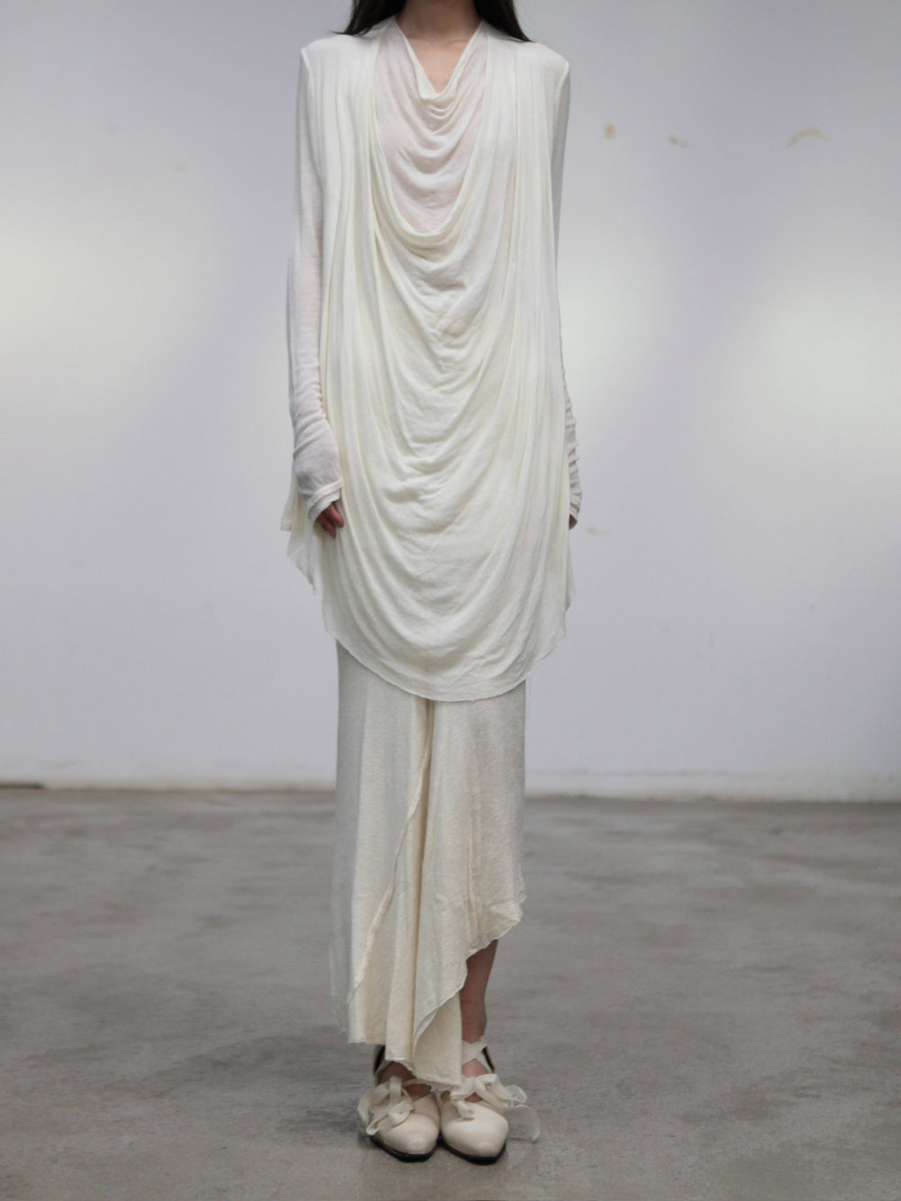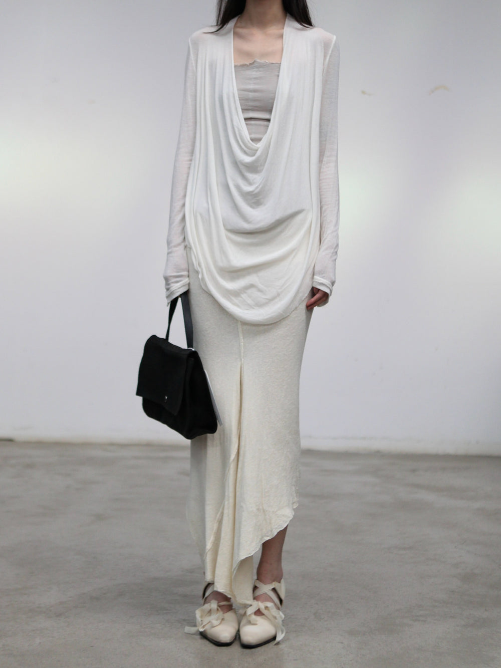 Marc Le Bihan 2802 Asymmetrical Skirt Collection, France, Handmade, MLB-2802-25AW-ECRU