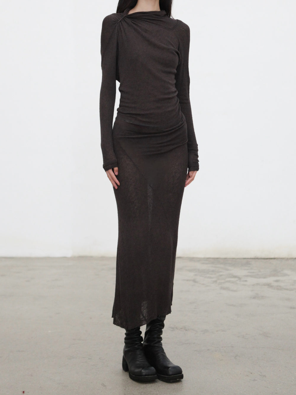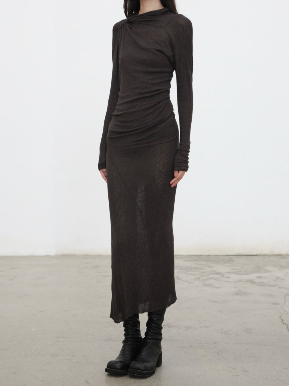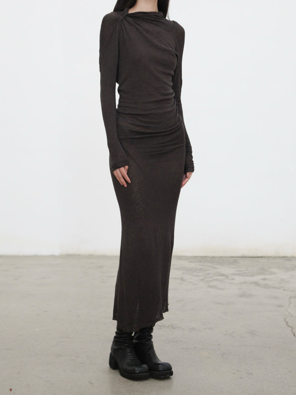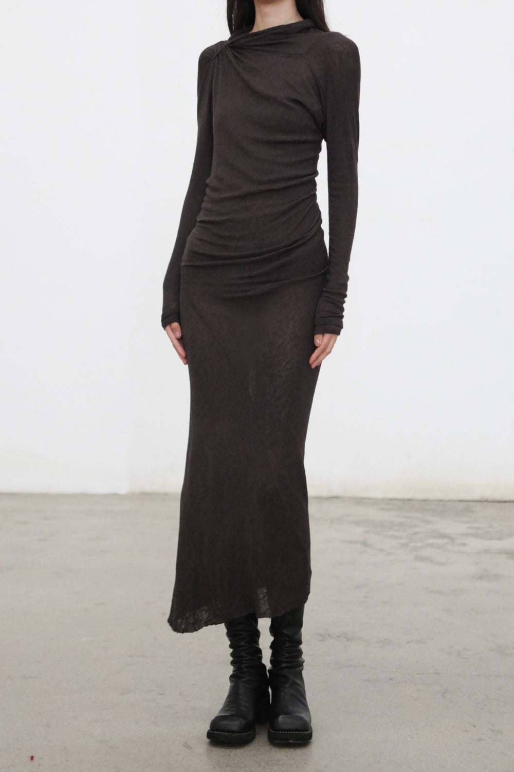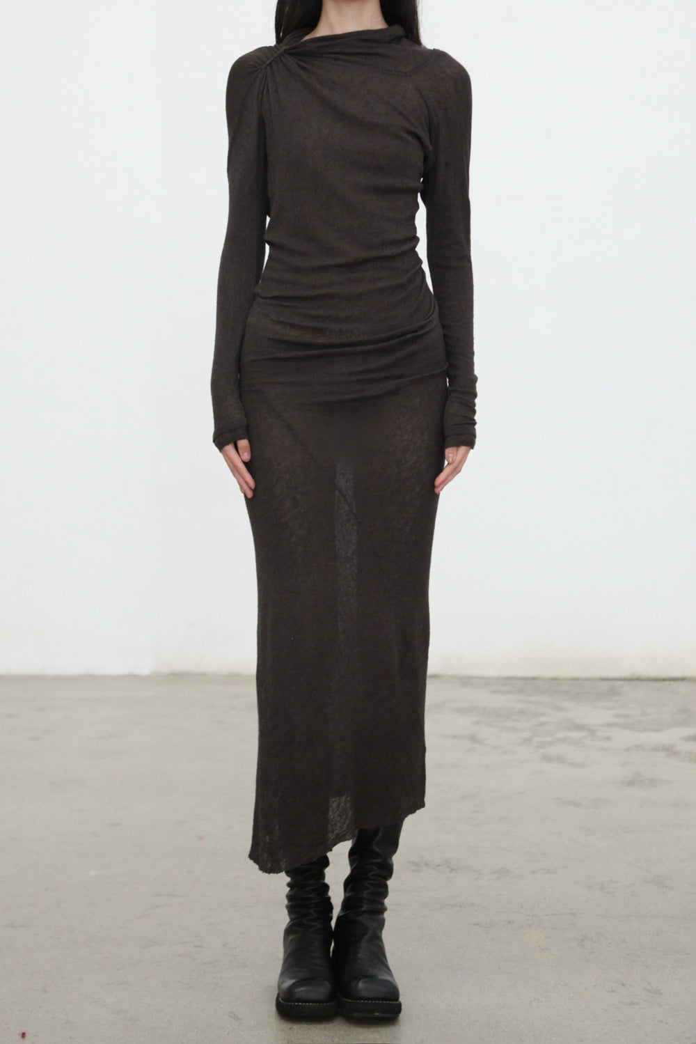Marc Le Bihan Long-Sleeved Dress with Shoulder Ties Collection 2864 MLB-2864-MORO
