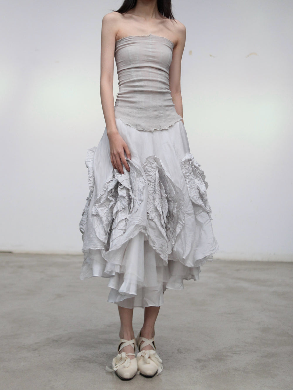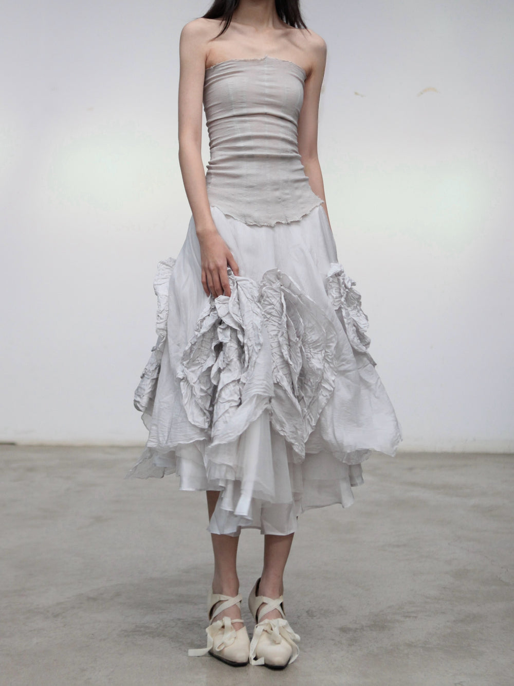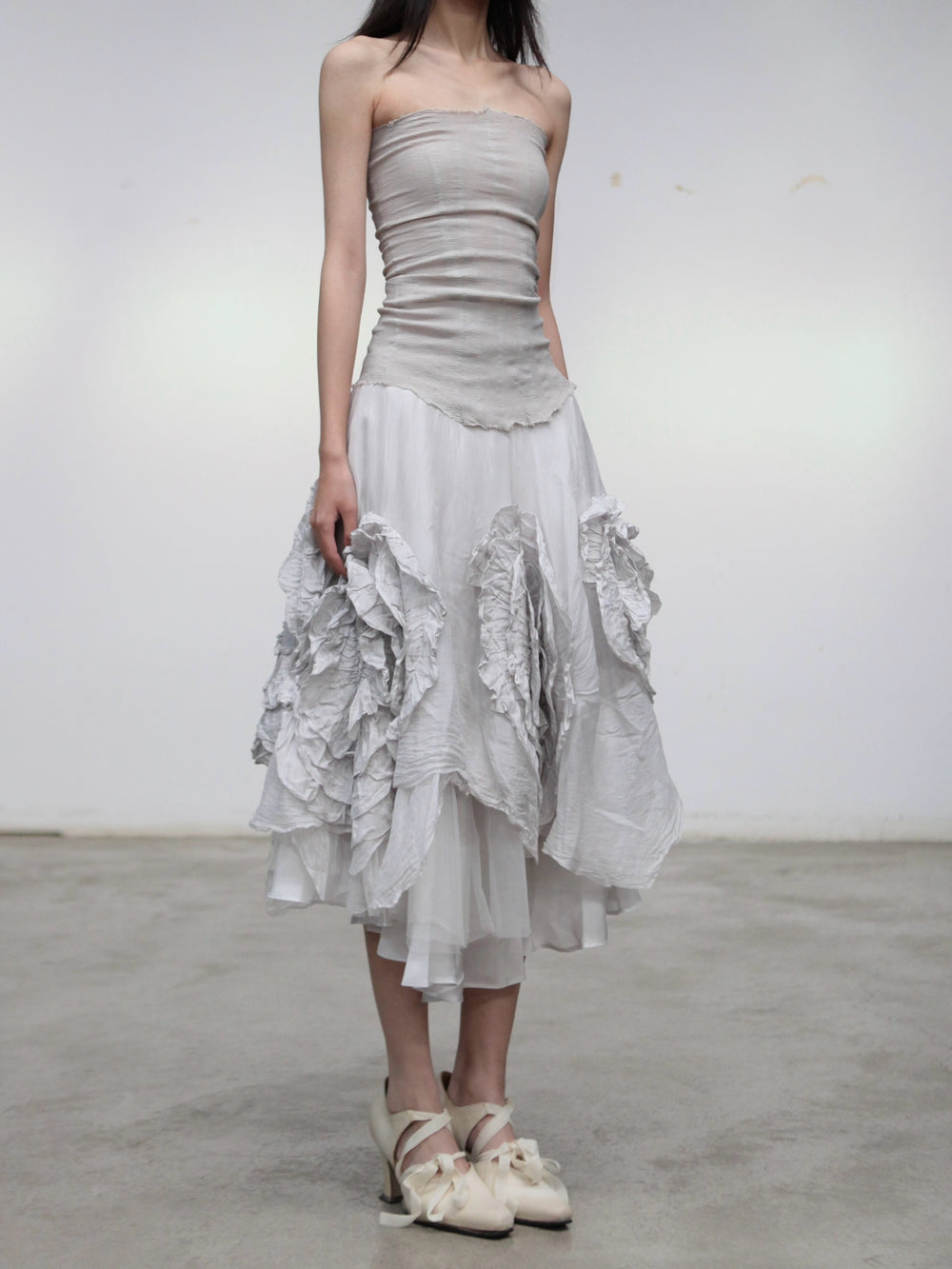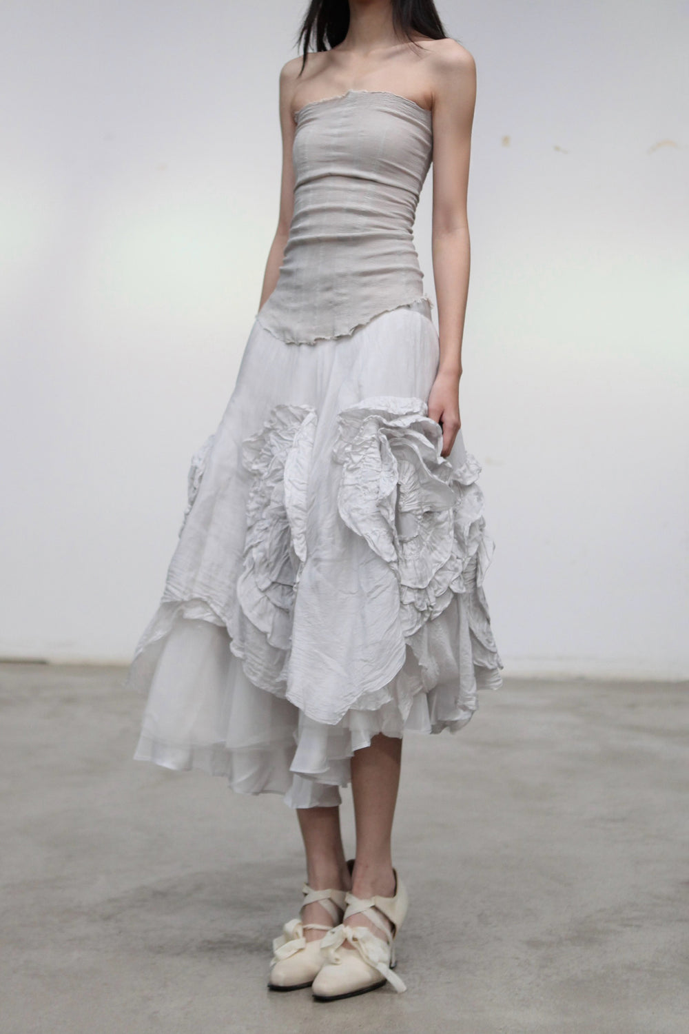 Marc Le Bihan Silk Tulle Floral Midi Skirt Series, France, MLB-2597-GLACIER