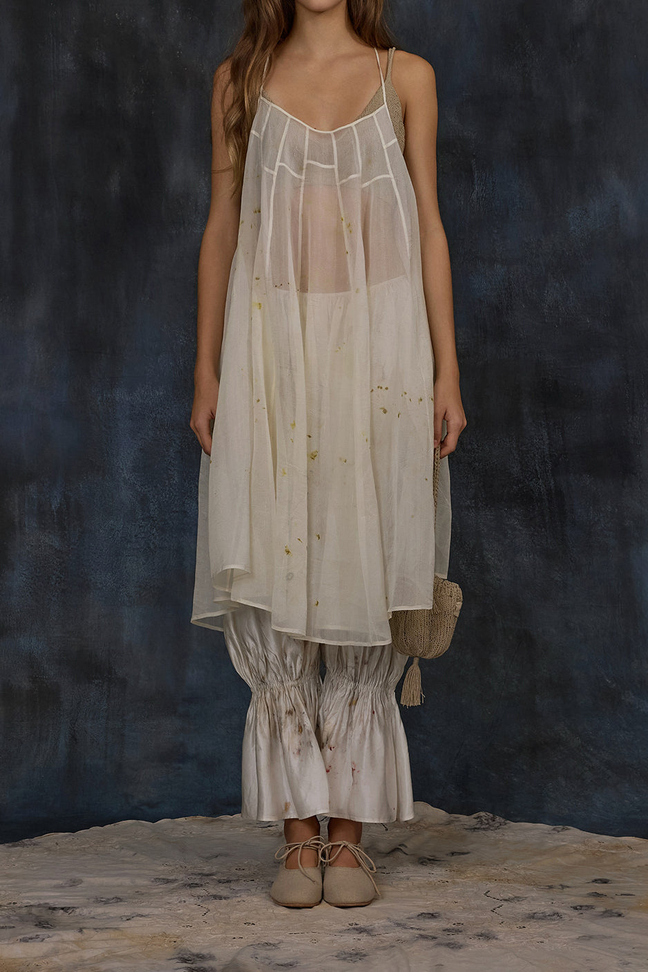 Mutedance Spring/Summer 2026 Elastic Waist Pants with Ruffled Hem, Plant Dye, MD-MD26SS121 (MD-MD26SS120)