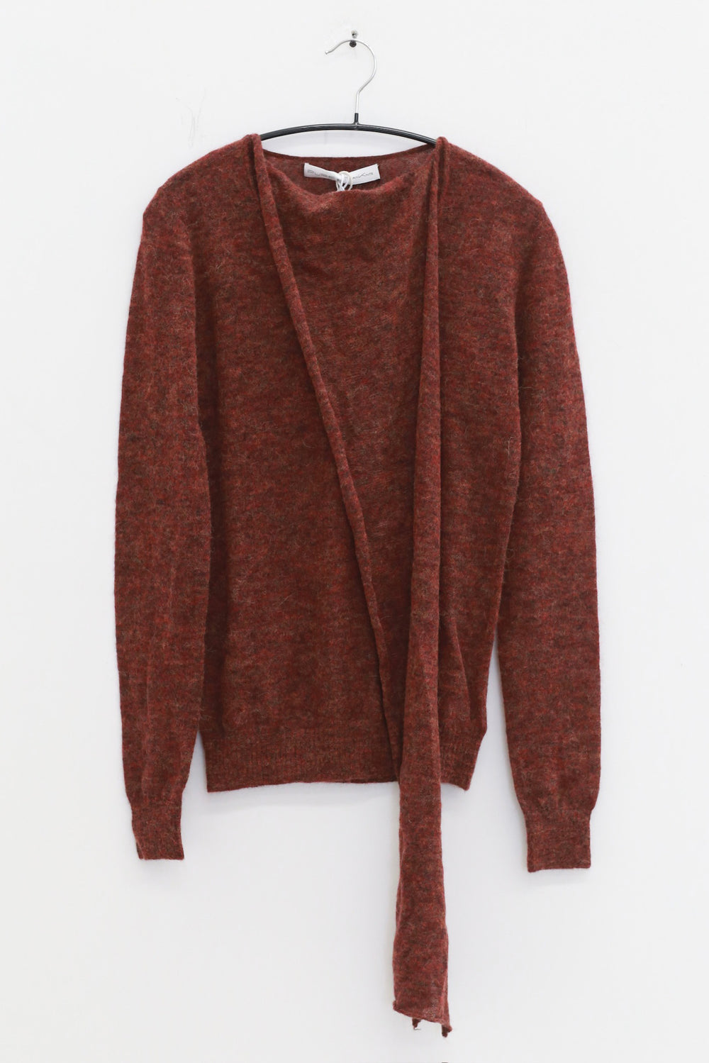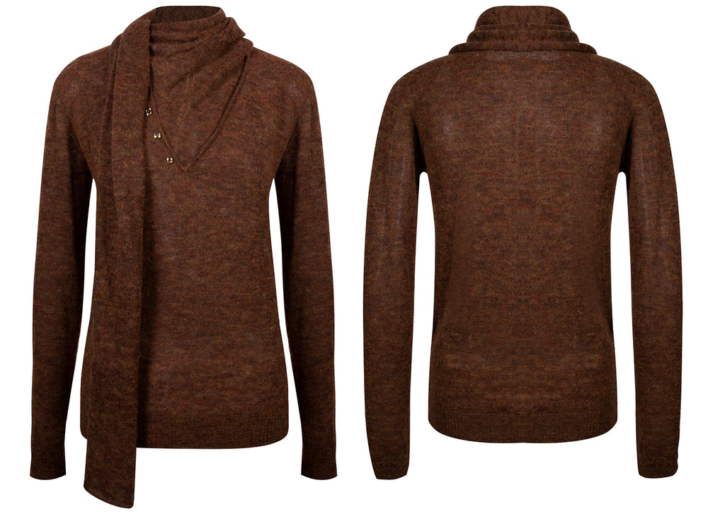 NAN KNITS 25 Autumn and Winter Ribbon Slant Collar Bottoming Shirt/Pleated Skirt NAN-N25AWBAS08BRO-ZONG Top