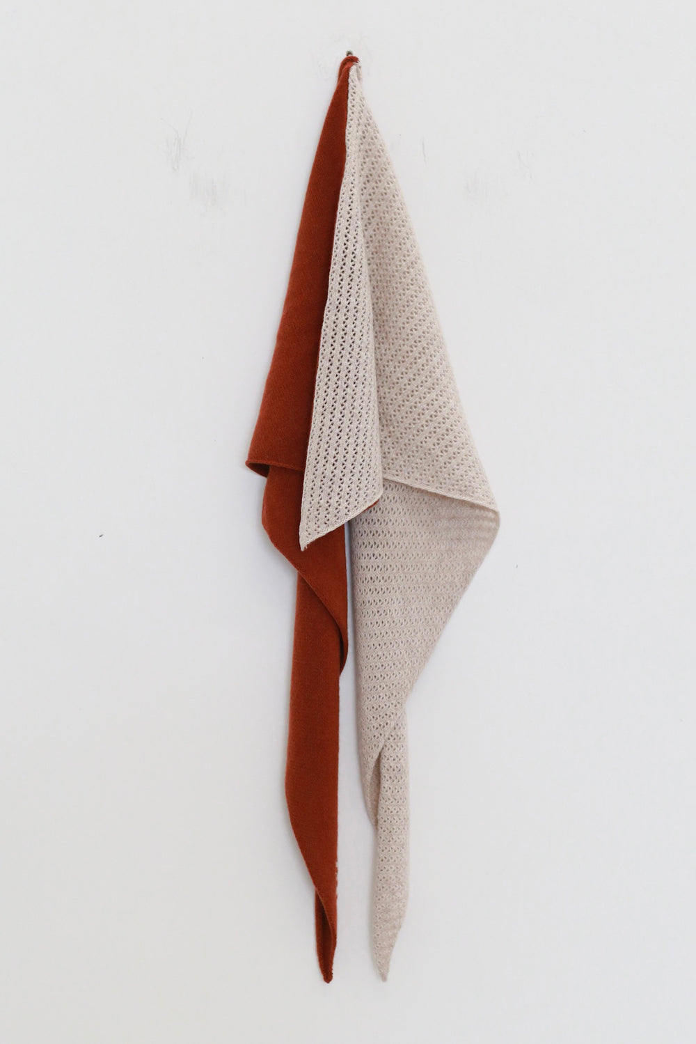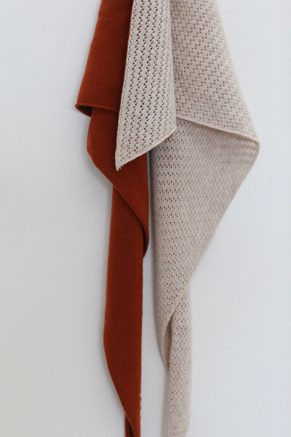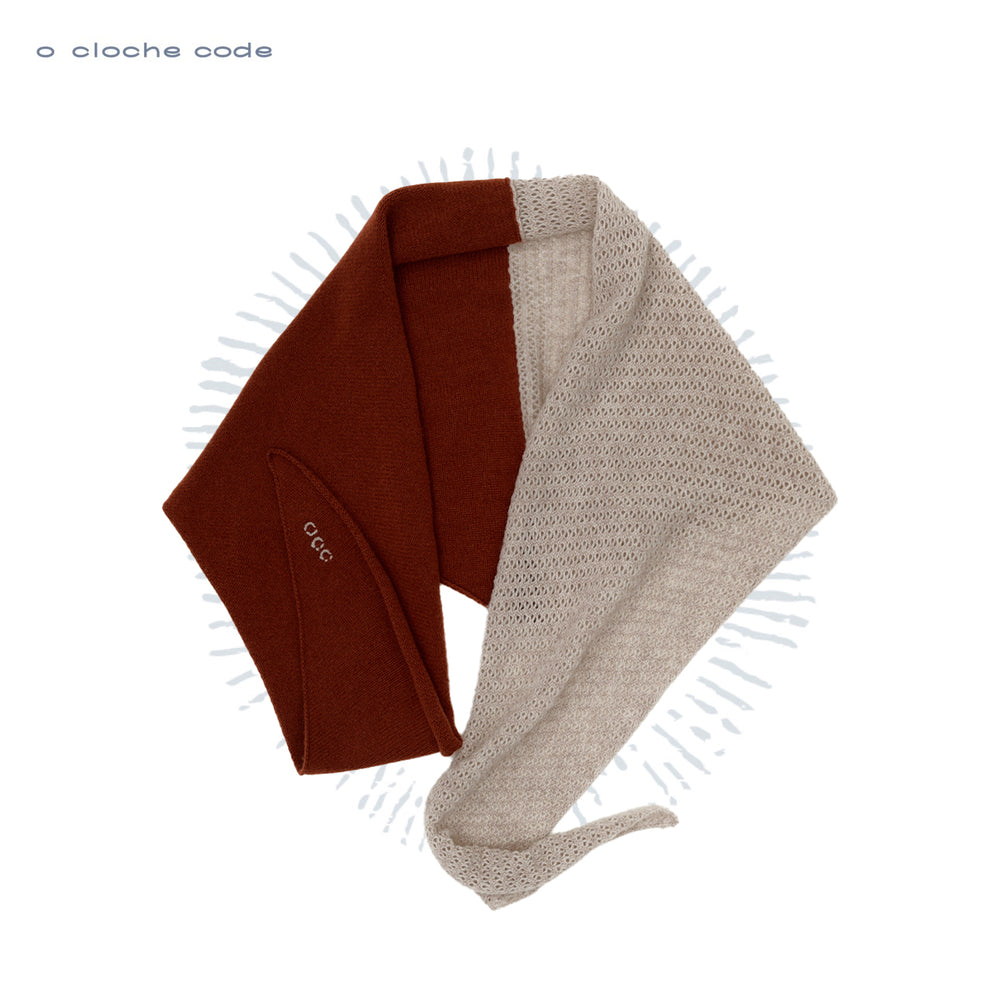 o cloche code 25 Fall/Winter Cashmere Two-tone Triangle Scarf OCC-OH01S820-ZSHLSM Vermilion Red/Lace Beige