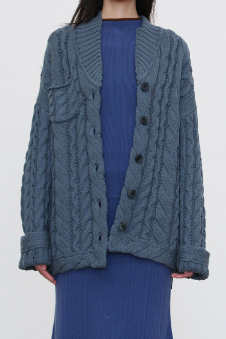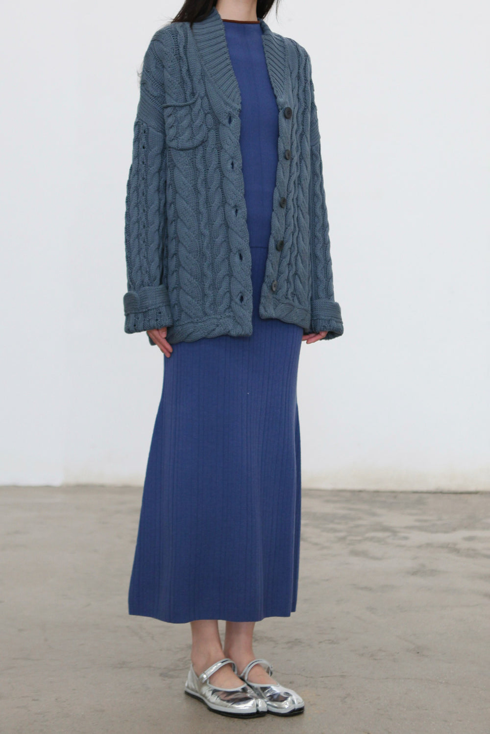 o cloche code 25 Fall/Winter Chunky Knit Cable Knit Sweater OCC-OH01T885-METL MALTESE Maltese Blue