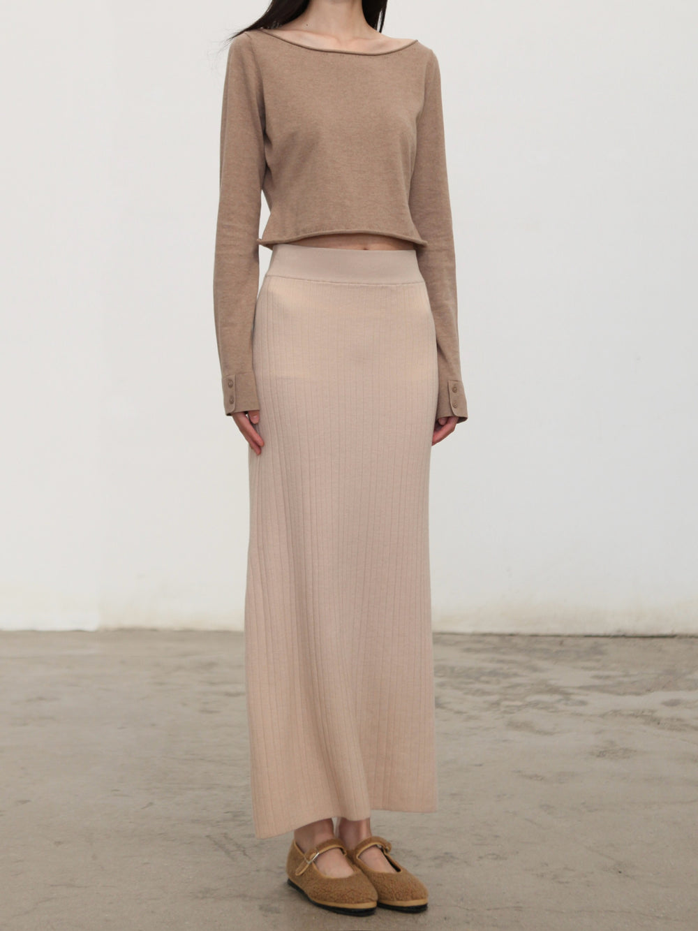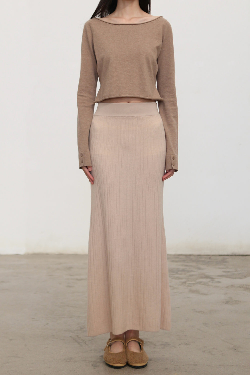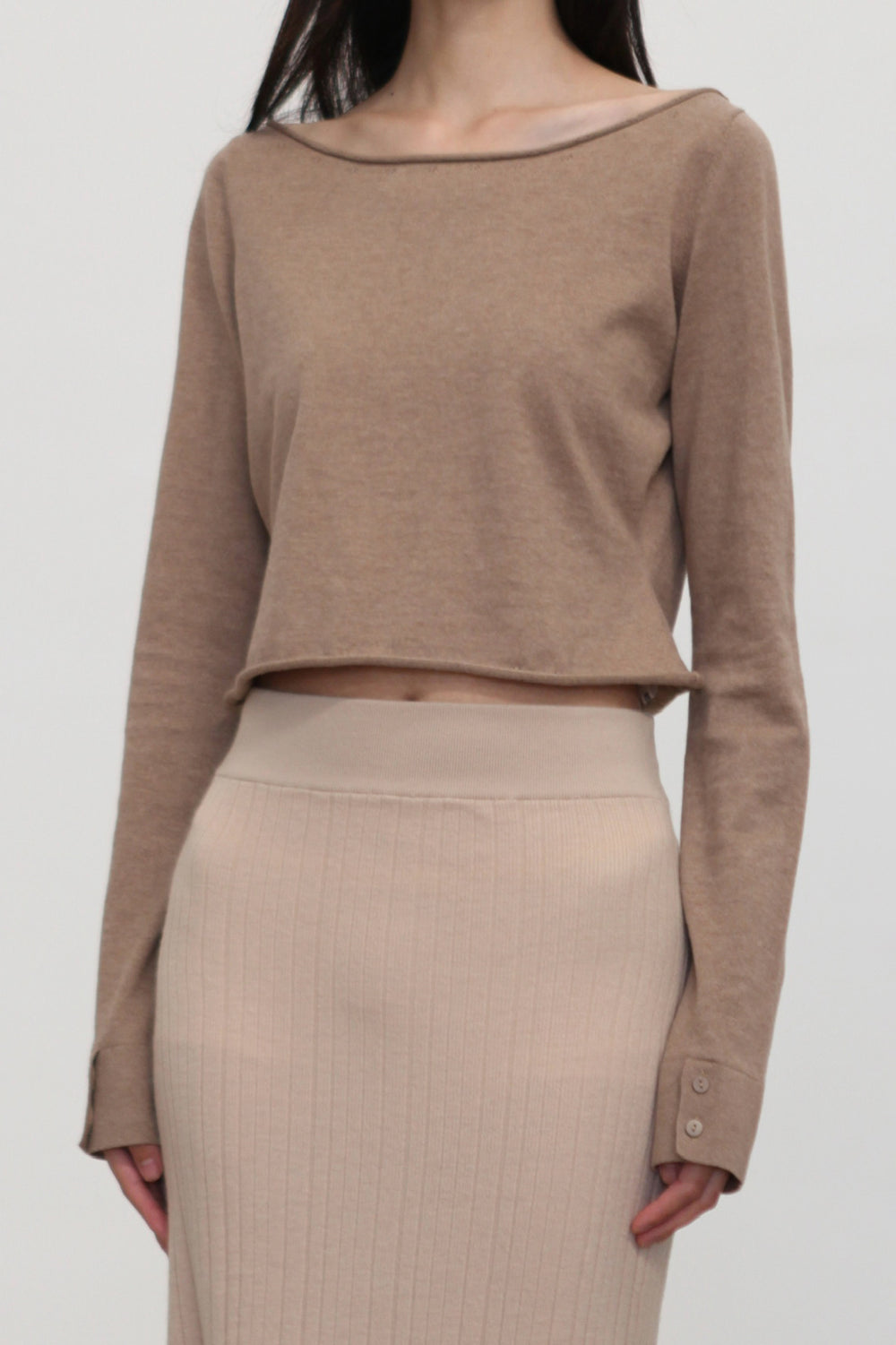 o cloche code 25 Fall/Winter Cotton Cashmere Loose Long-Sleeved Top OCC-OH01T874-MZ BELGE Beige