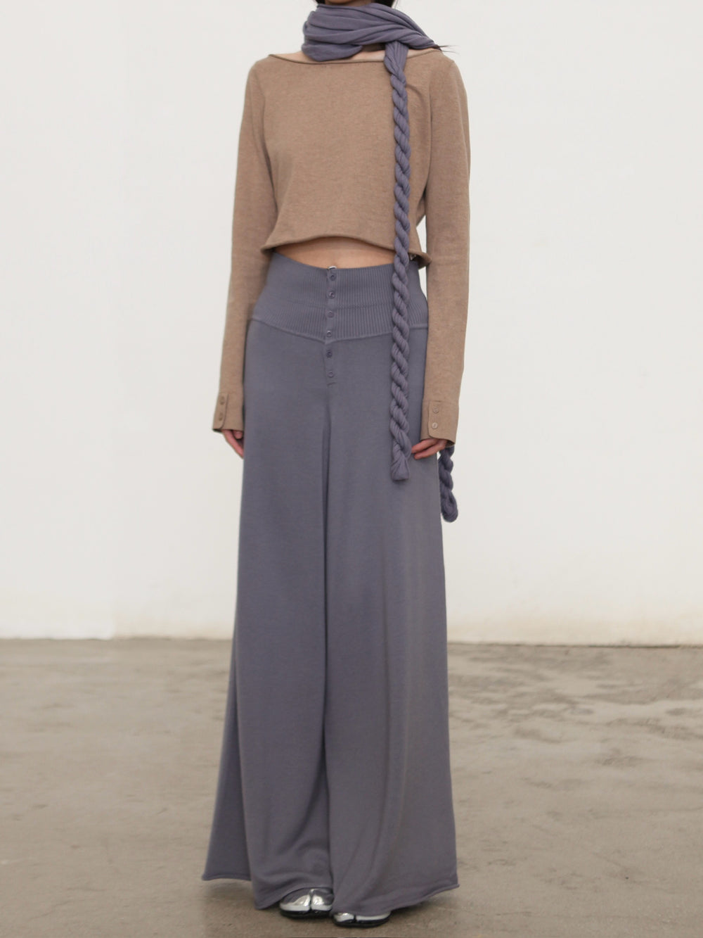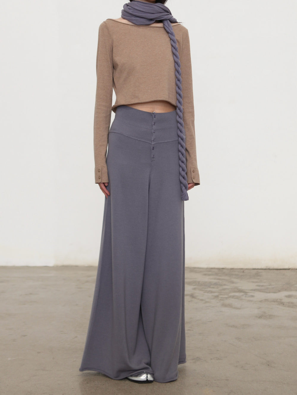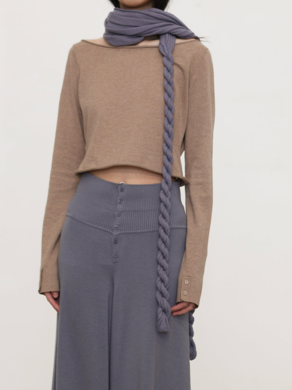 o cloche code 25 Fall/Winter Cotton Cashmere Loose Long-Sleeved Top OCC-OH01T874-MZ BELGE Beige