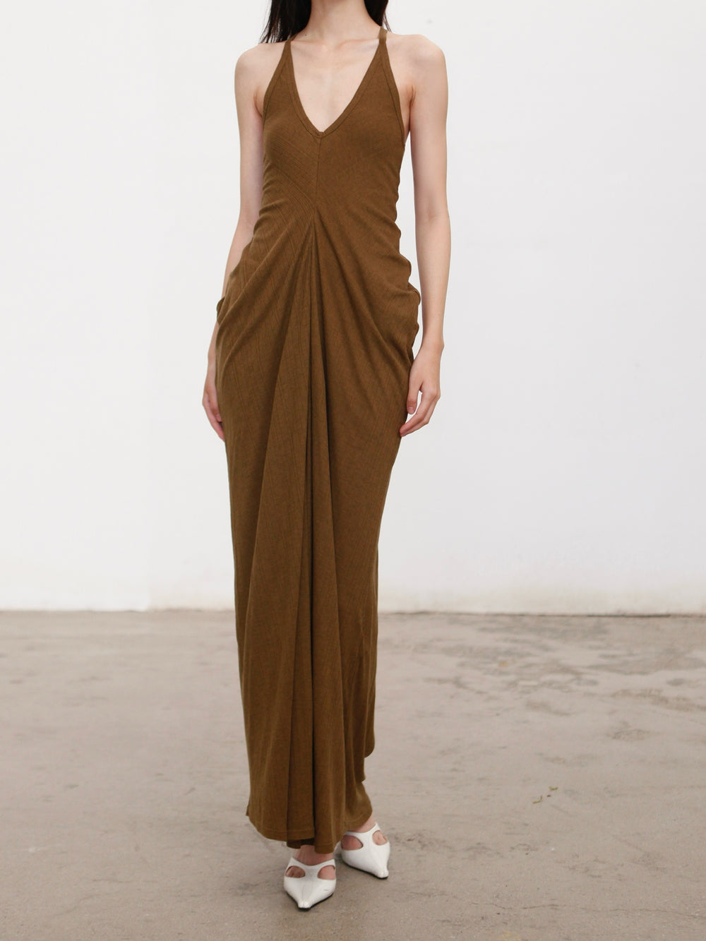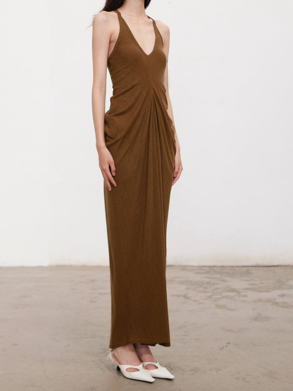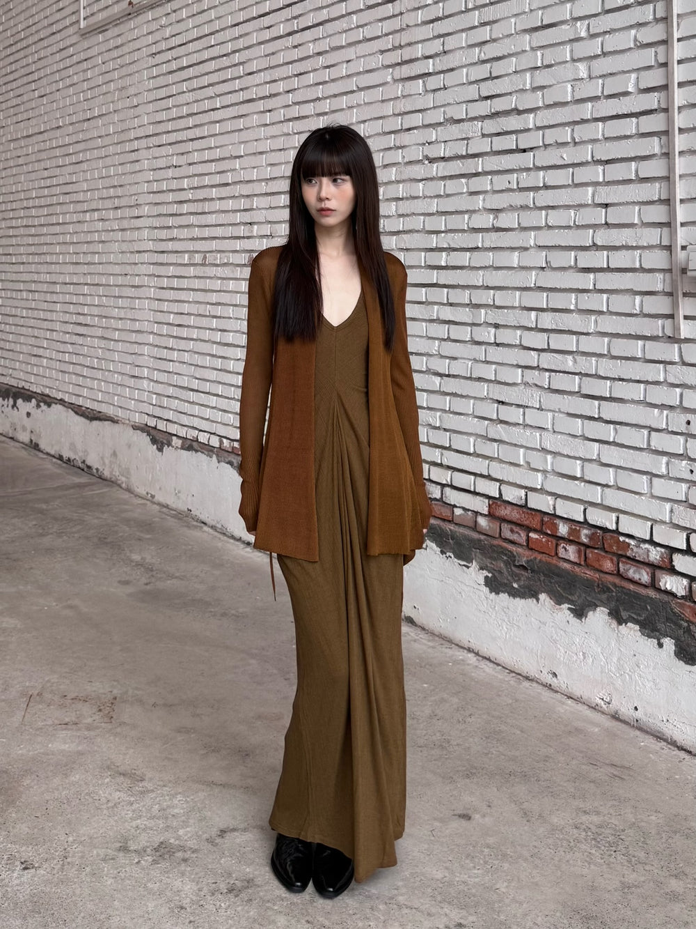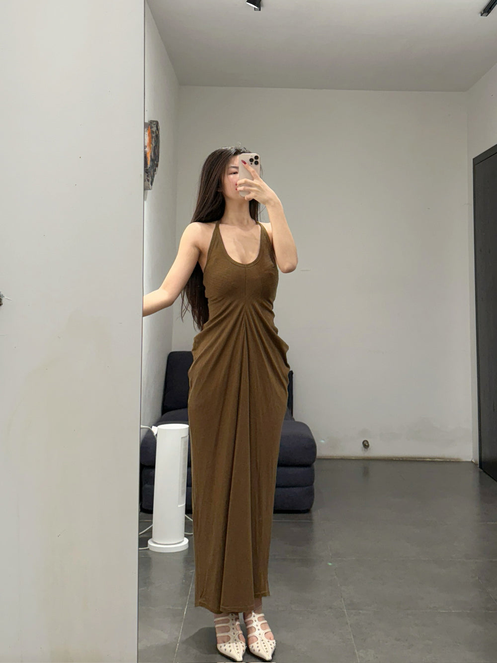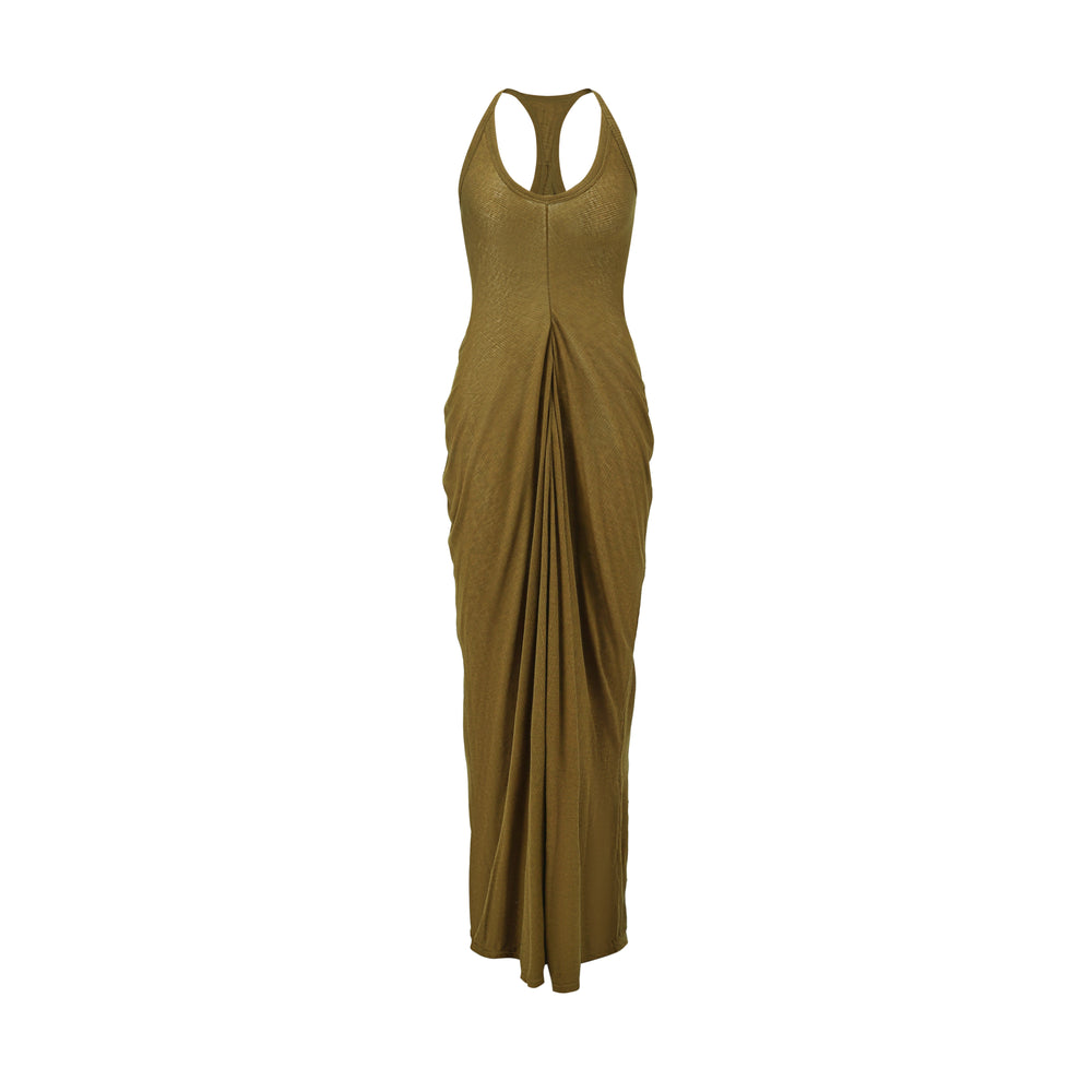 OUDE WAAG 26 Early Spring Flowing Stretch Ribbed Vest Dress OW-26RS-DS25T2-GR540 Olive Green