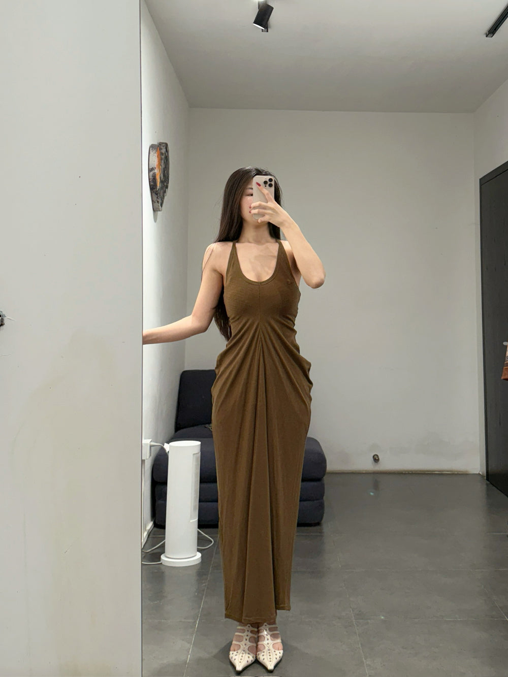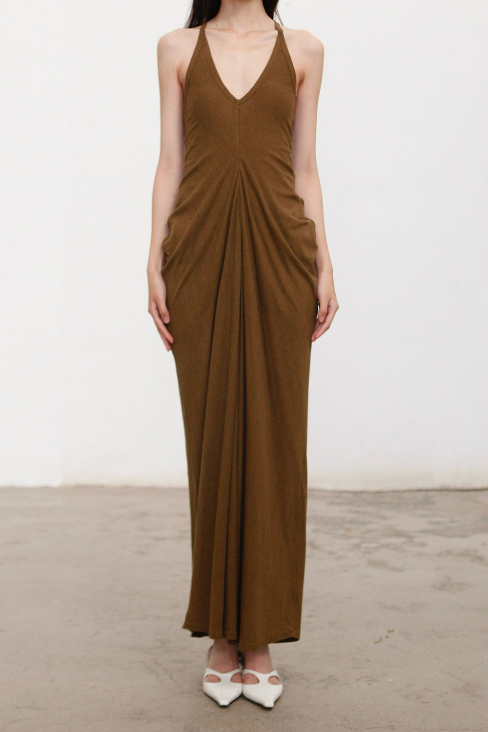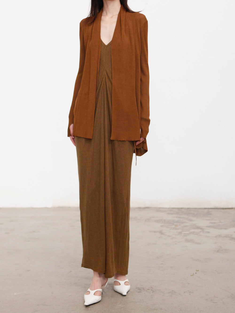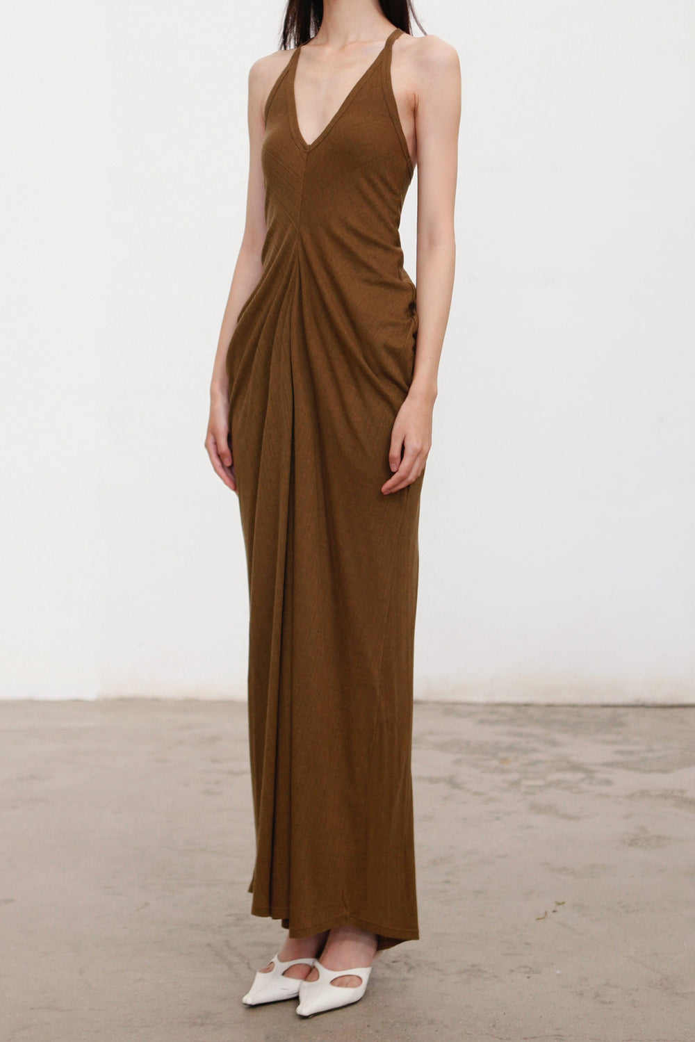 OUDE WAAG 26 Early Spring Flowing Stretch Ribbed Vest Dress OW-26RS-DS25T2-GR540 Olive Green