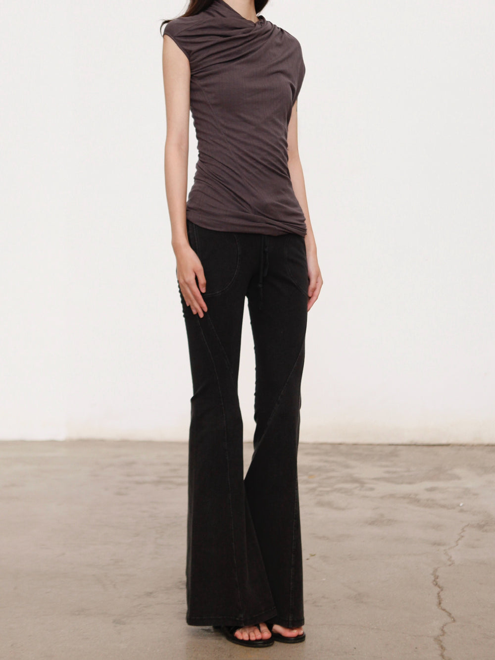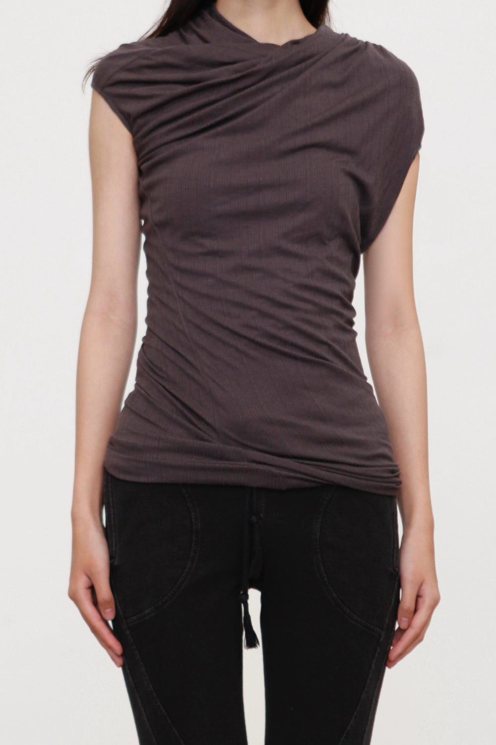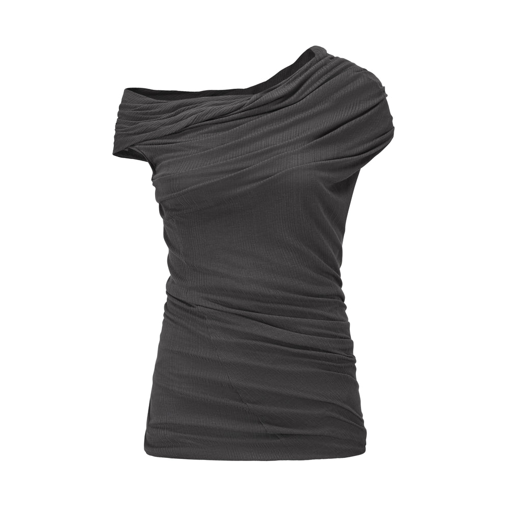 OUDE WAAG 26 Early Spring Stretch Ribbed Top with Shoulder Trim OW-26RS-TP06T2-GY860 Dark Grey