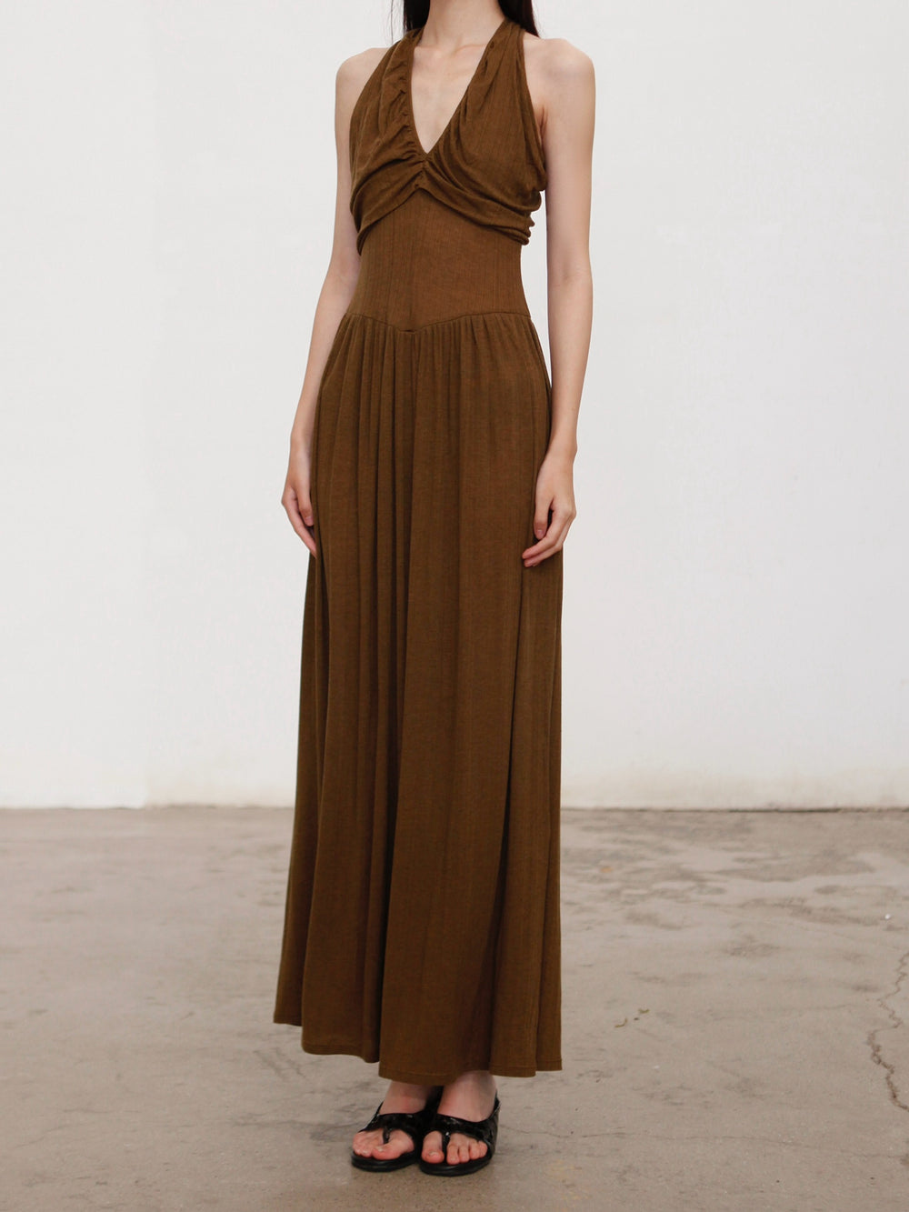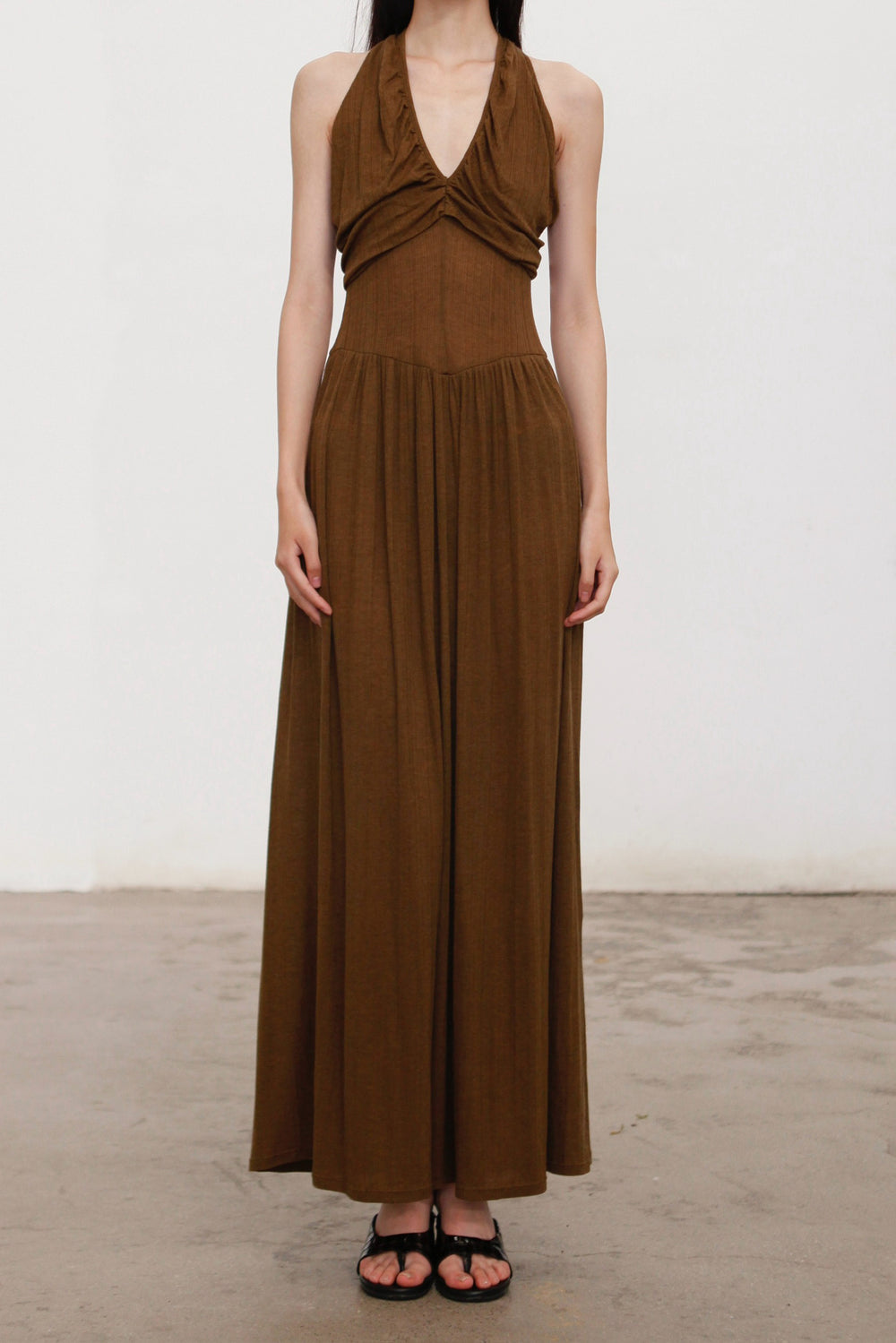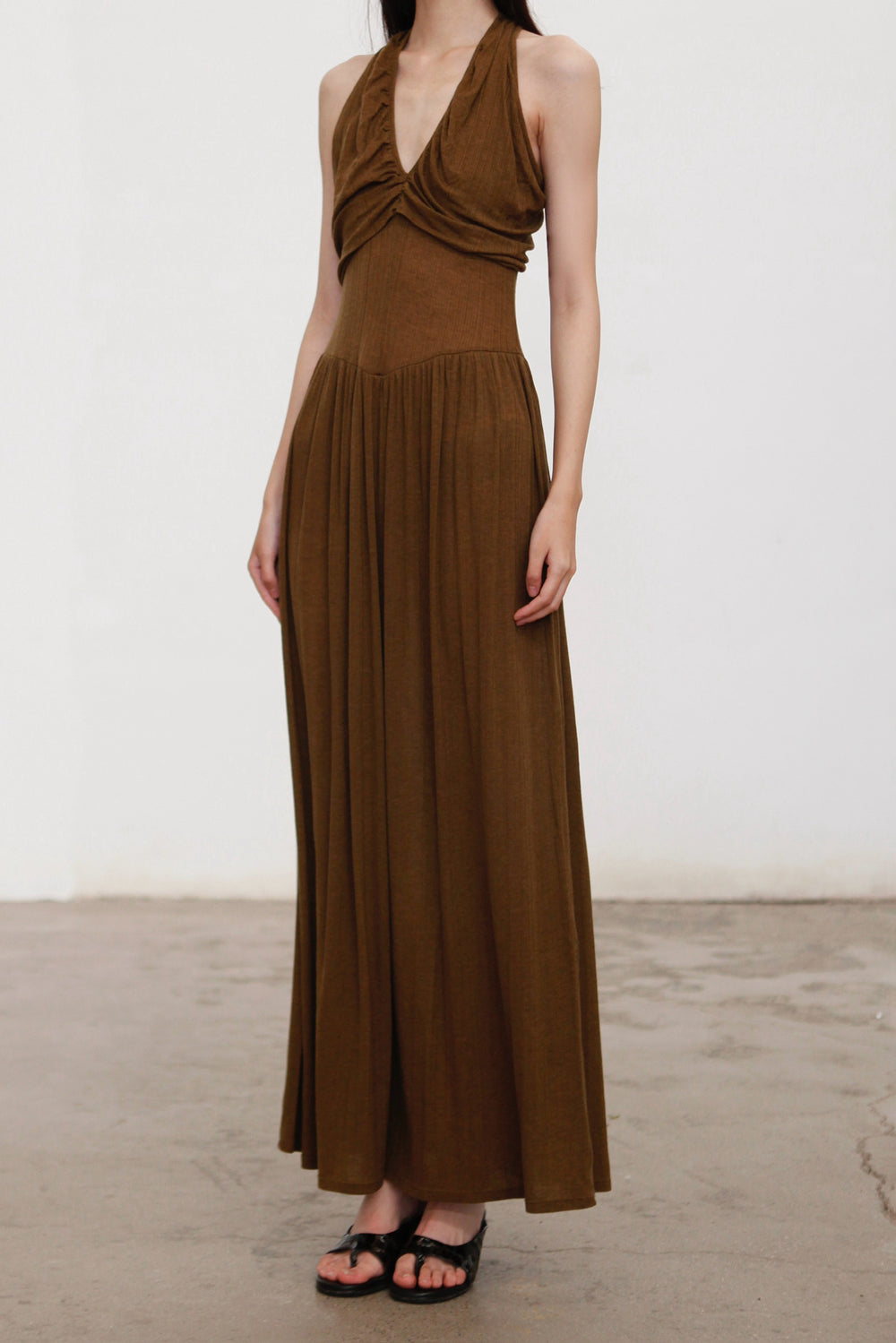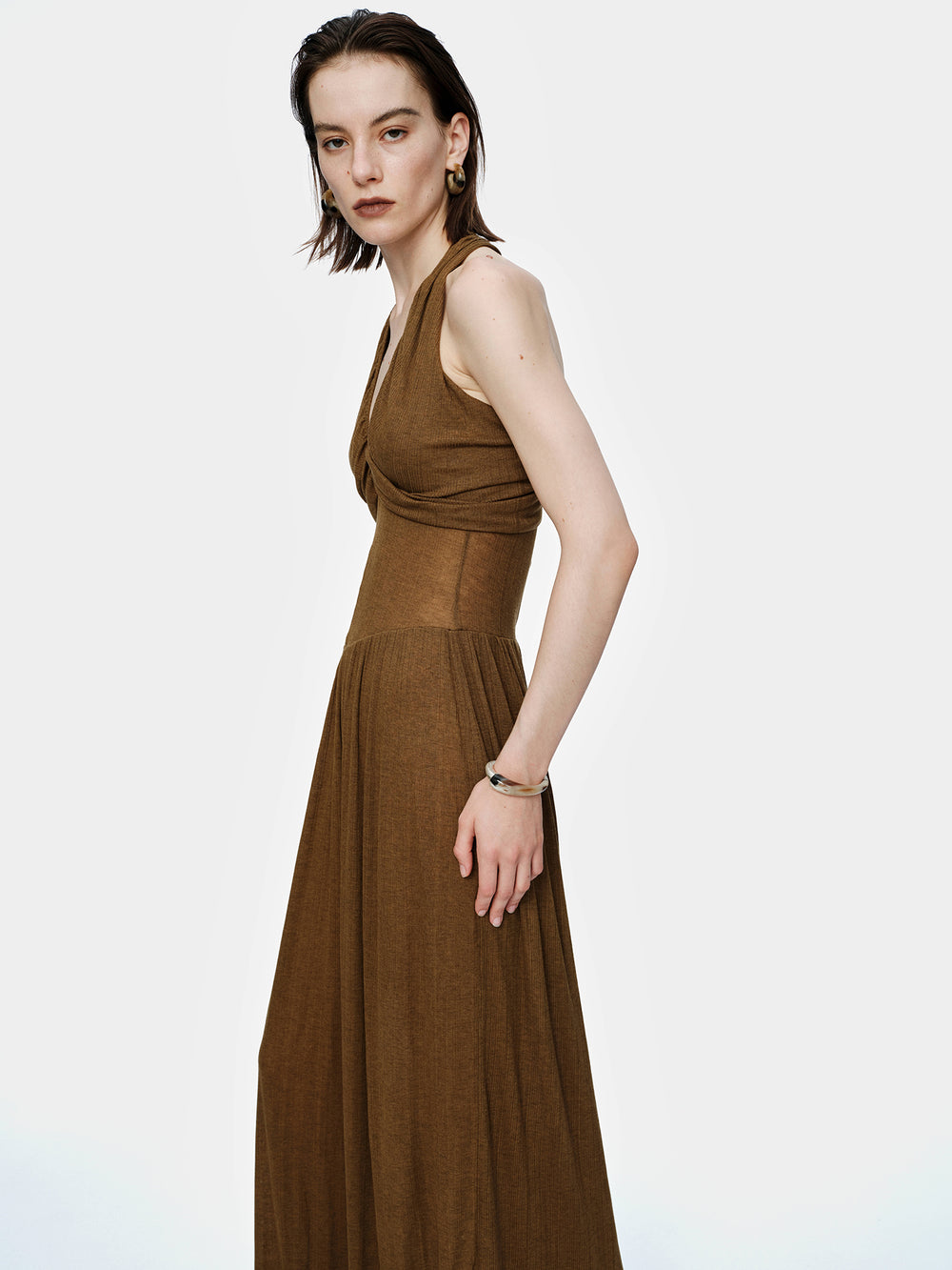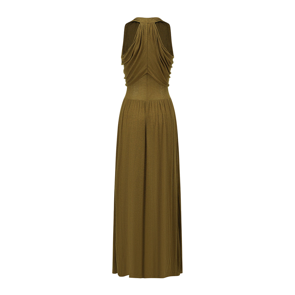 OUDE WAAG 26 Early Spring V-neck draped ribbed dress OW-26RS-DS03T2-GR540 Olive Green