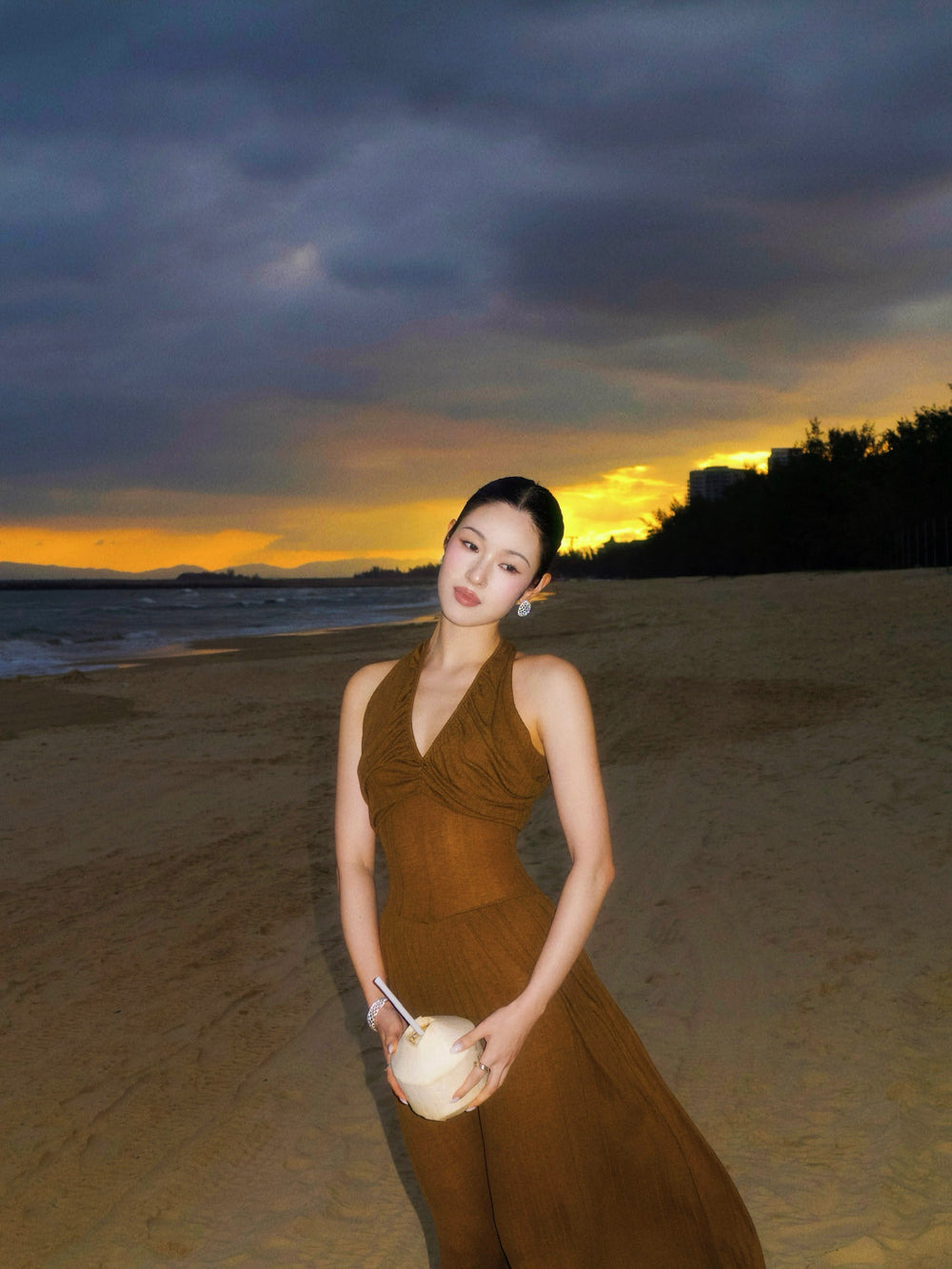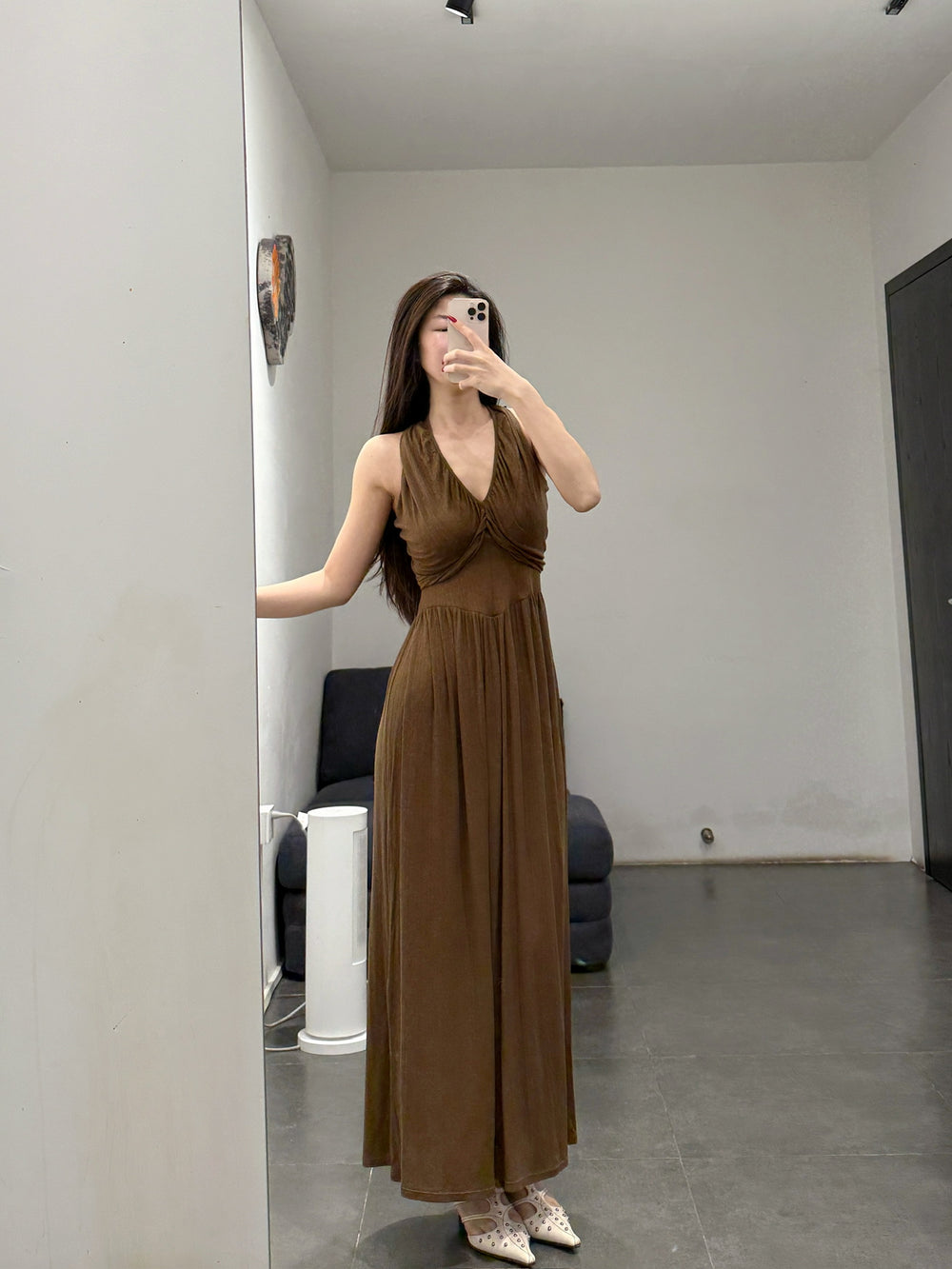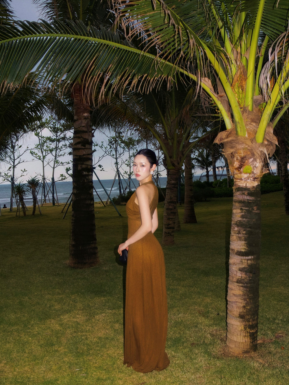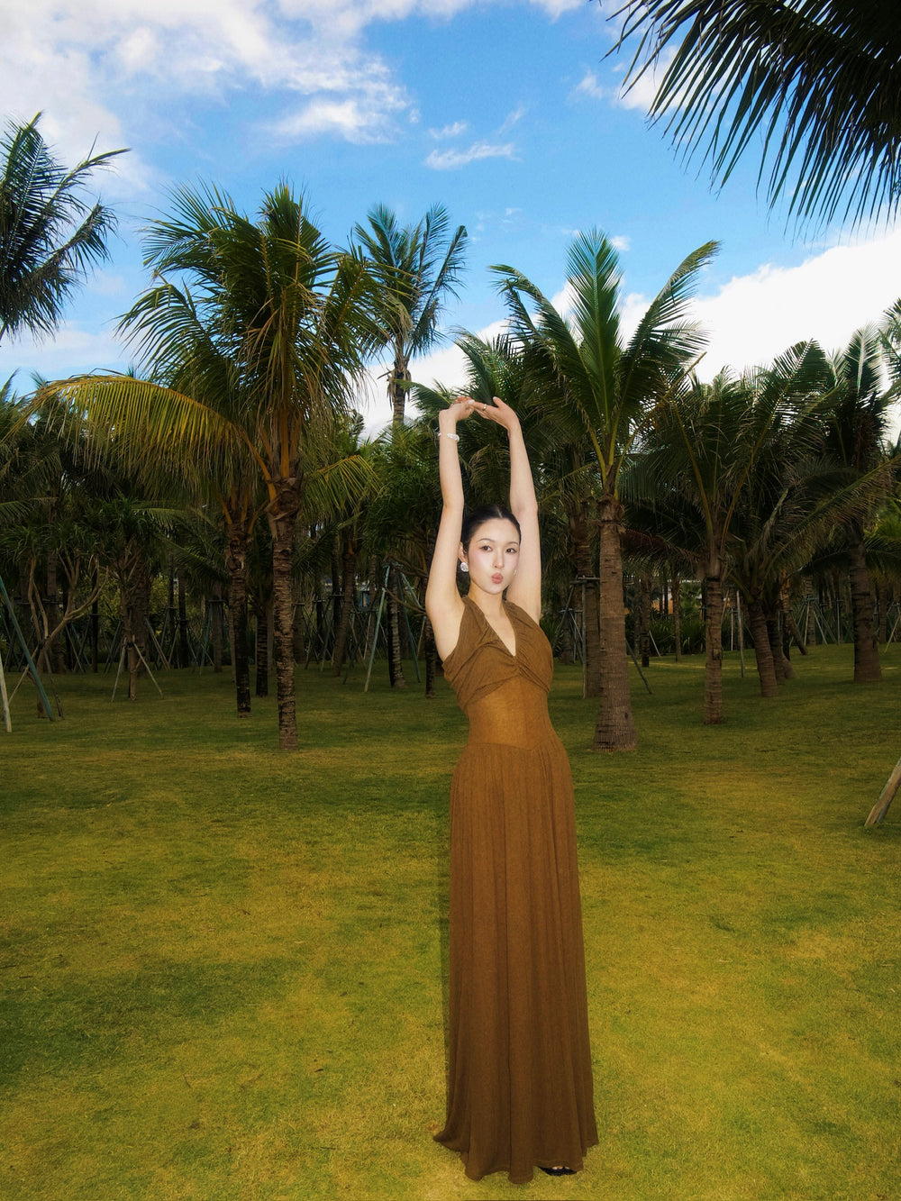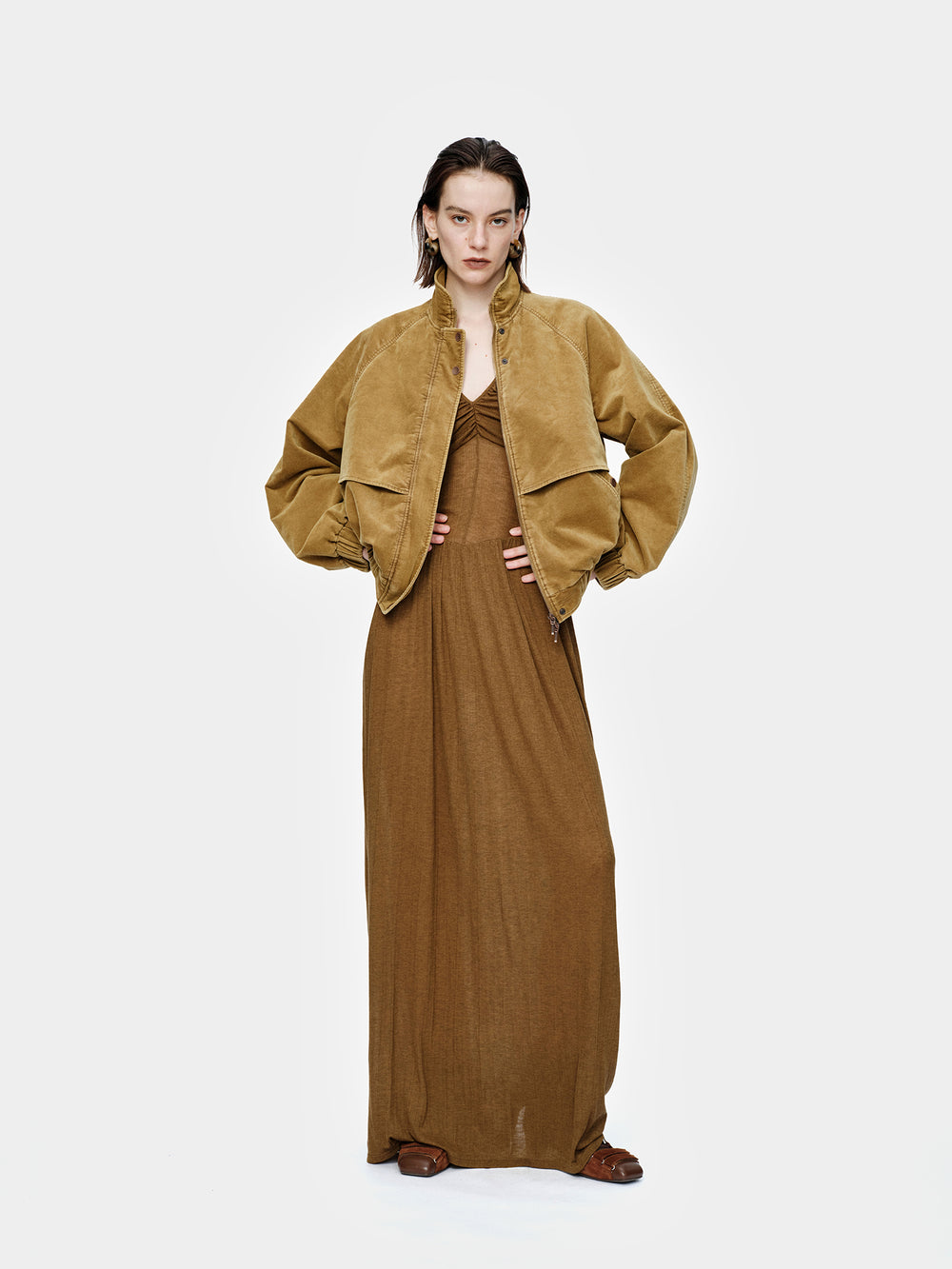OUDE WAAG 26 Early Spring V-neck draped ribbed dress OW-26RS-DS03T2-GR540 Olive Green
