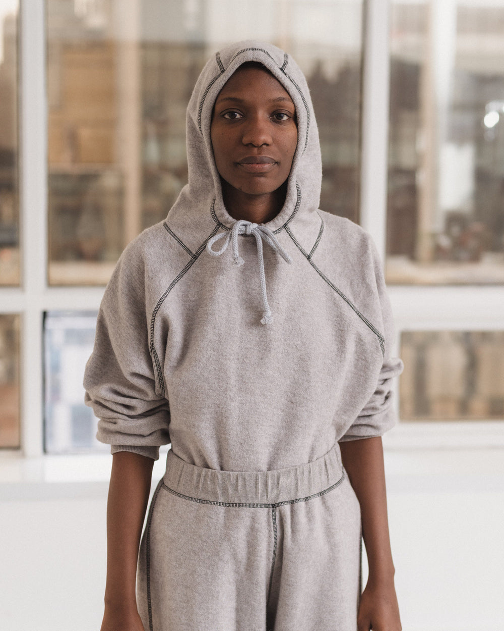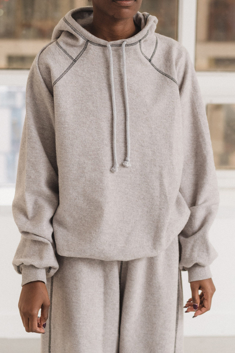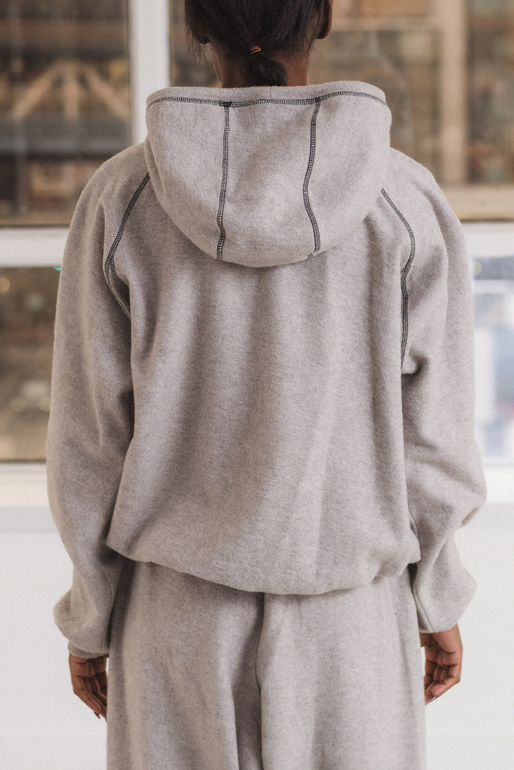 BASERANGE 25 Fall/Winter Folded Hoodie BAS-PUFOH-RCF-AU25-Grey Melange UNDYED (BLUE)